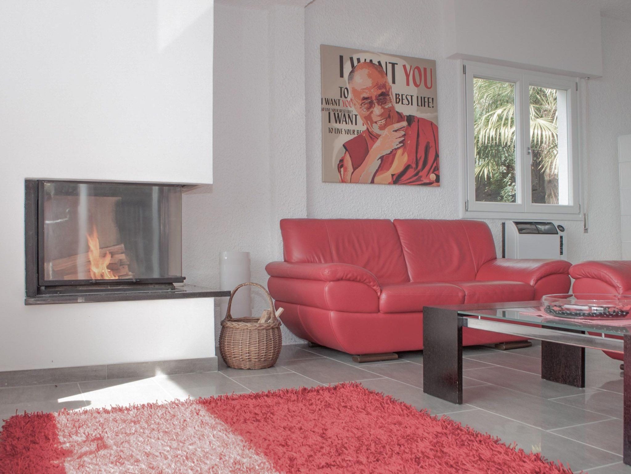 Die ebenerdige Wohnfläche von 95 Quadratmetern bietet zwei Schlafzimmer mit Doppelbett und Kleiderschrank, zwei Duschbäder (eines davon etwas kleiner), eine Küche, einen Wohn- und Essbereich sowie einen großen Balkon mit Außengrill und Sitz- und Liegeflächen für vier Personen. Das große Panoramafenster im Wohnzimmer und der Kamin mit Thermostat und Gasheizung laden zu gemütlichen Stunden mit Traum-Ausblick ein. Genießen Sie eine Tasse Kaffee aus dem Saecco Kaffeevollautomat auf den bequemen Ledersofas im großzügigen und hochwertig eingerichteten Wohnzimmer. Vom großen Balkon aus breitet sich der See vor Ihnen aus. Der schöne Außenkamin auf dem Balkon lädt zum Grillen ein. Der große Sitz- und Liegebereich um den Gemeinschaftspool lädt zum Relaxen und Verweilen ein. Rundum ist dieses schöne Domizil für Singles, Paare und Familien mit großen Kindern bestens geeignet. Der wunderschöne Ausblick auf den See und die Ruhe versprechen eine unvergesslich schöne Zeit am Lago Maggiore.