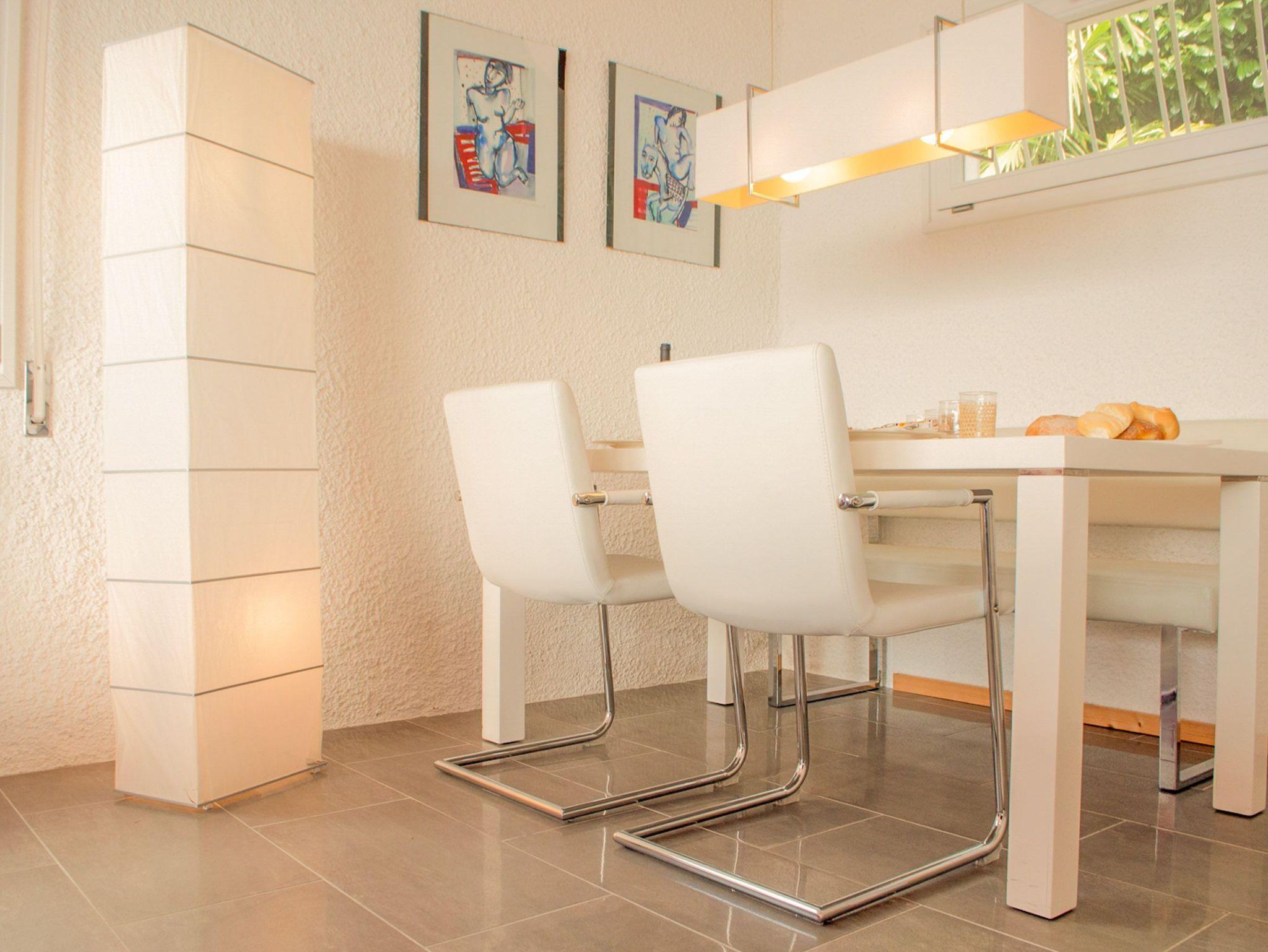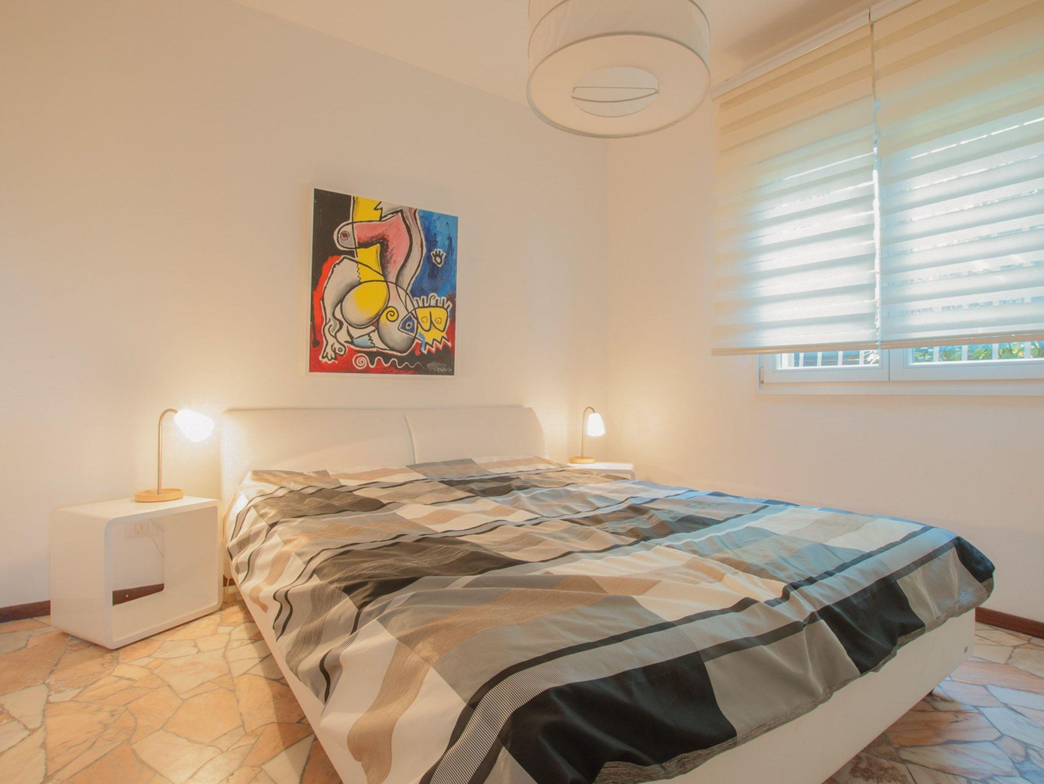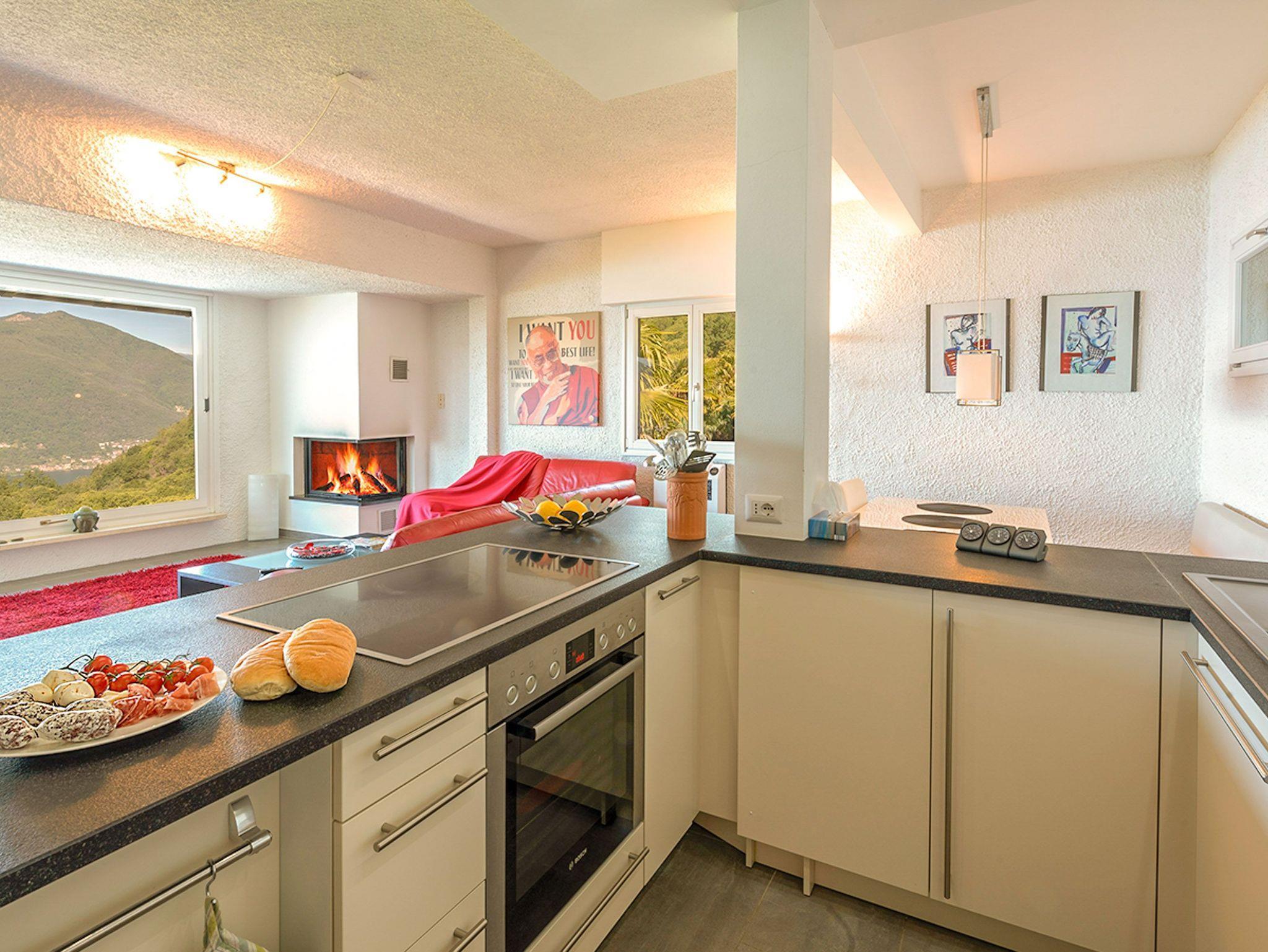 Die ebenerdige Wohnung erstreckt sich über 95 Quadratmeter und bietet zwei Schlafzimmer mit Doppelbett und Kleiderschrank, sowie zwei Duschbäder, von denen eines etwas kleiner ist. Die Küche, der Wohn- und Essbereich sind großzügig gestaltet und laden zum Verweilen ein. Das große Panoramafenster im Wohnzimmer und der Kamin mit Thermostat und Gas-Heizung, deren Kosten in der Heizperiode im Mietpreis inbegriffen sind, sorgen für gemütliche Stunden mit traumhaftem Ausblick. Genießen Sie eine Tasse Kaffee aus dem Saeco Kaffee-Vollautomat auf den bequemen Ledersofas des hochwertig eingerichteten Wohnzimmers. Vom großen Balkon aus liegt der See ausgebreitet vor Ihnen, und der schöne Außen-Kamin lädt zum Grillen ein. Der große Sitz- und Liegebereich um den Gemeinschaftspool lädt zum Relaxen und Verweilen ein. Diese Wohnung ist ideal für Singles, Paare und Familien mit großen Kindern geeignet und verspricht eine unvergesslich schöne Zeit am Lago Maggiore.