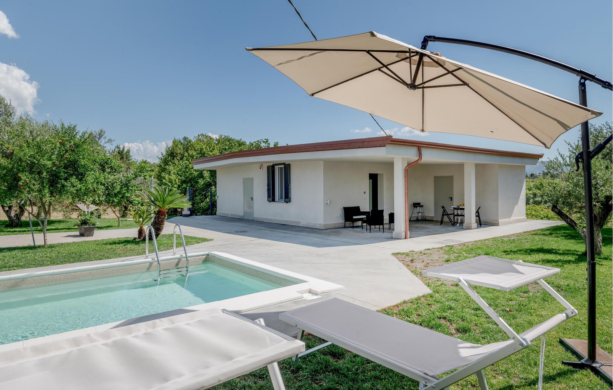 Erleben Sie eine sonnige Auszeit in diesem modernen Ferienhaus mit Pool und lassen Sie den Alltag hinter sich.
