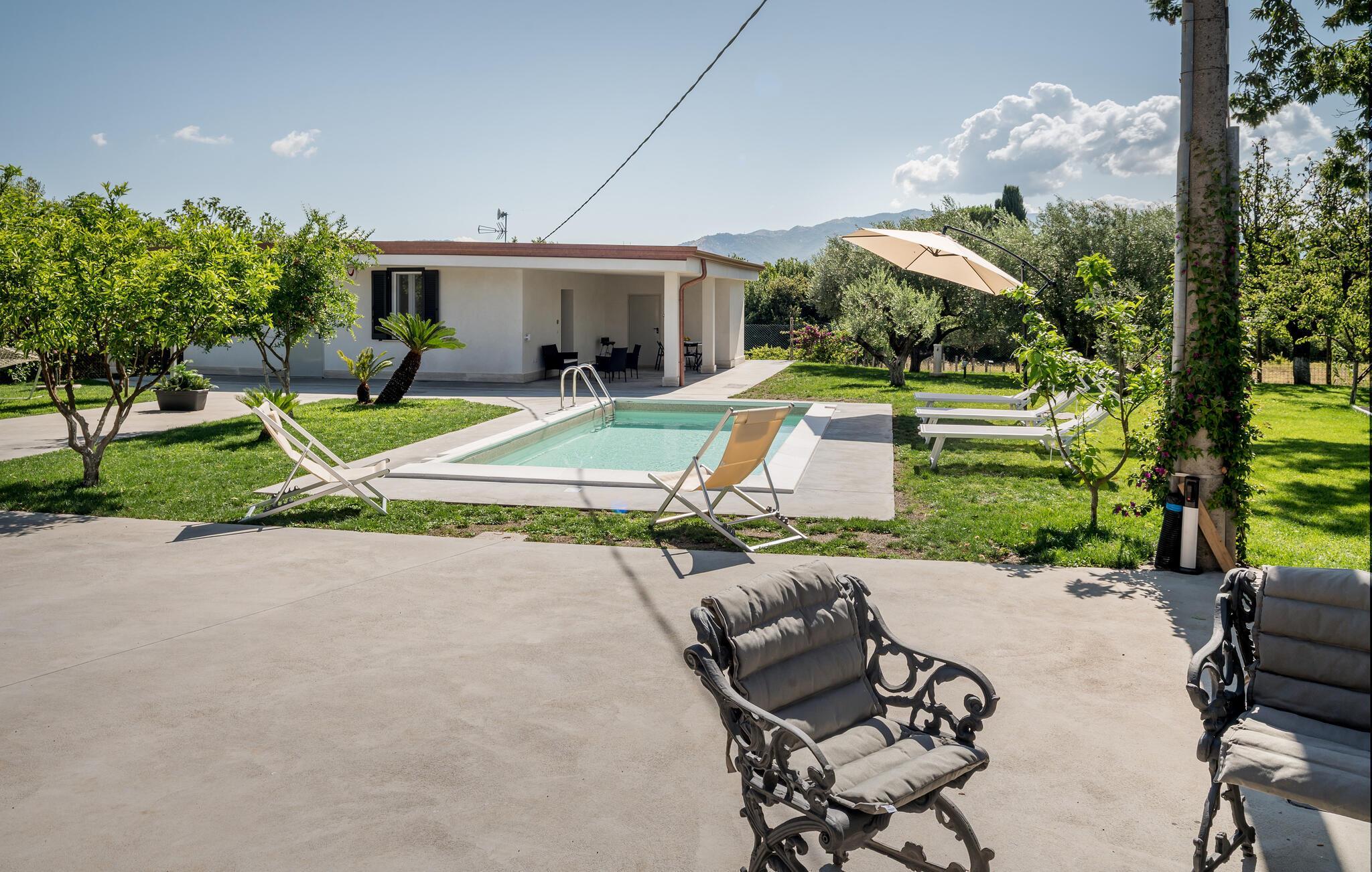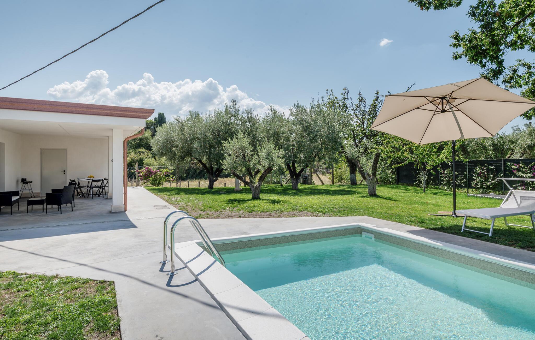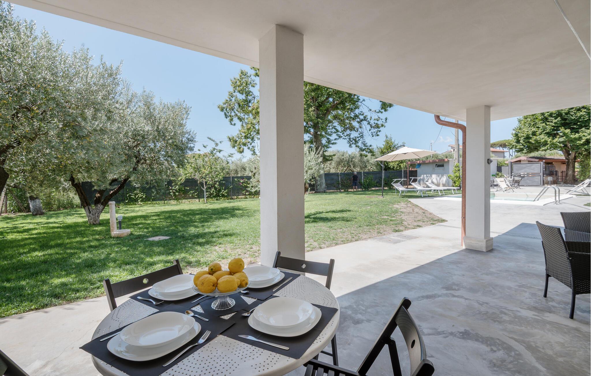 Auf der großzügigen, überdachten Terrasse können Sie mit einem herrlichen Frühstück in den Tag starten. Ziehen Sie Ihre Bahnen im erfrischenden Pool, entspannen Sie bei einem guten Buch im Schatten und lassen Sie die warmen Sommerabende mit einem Glas Wein ausklingen.