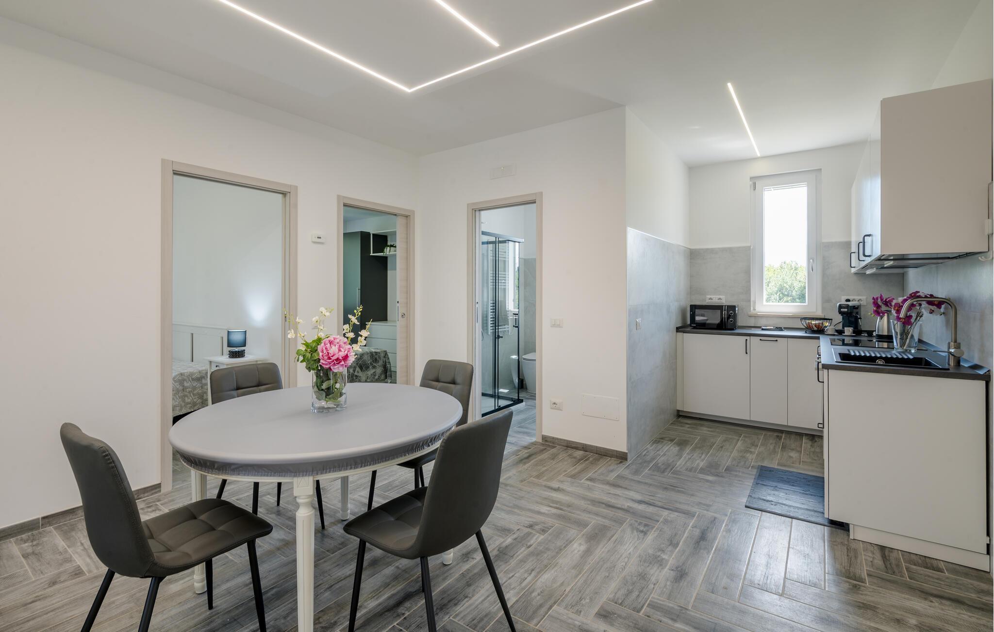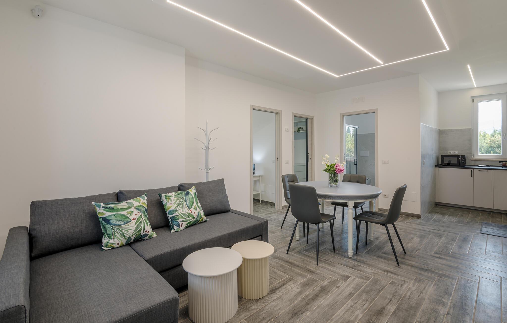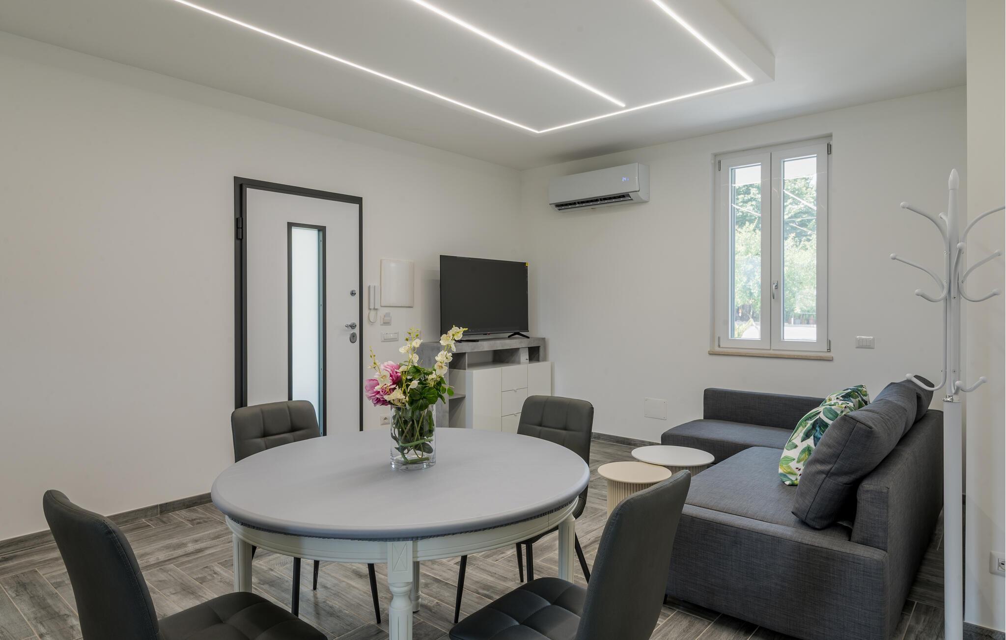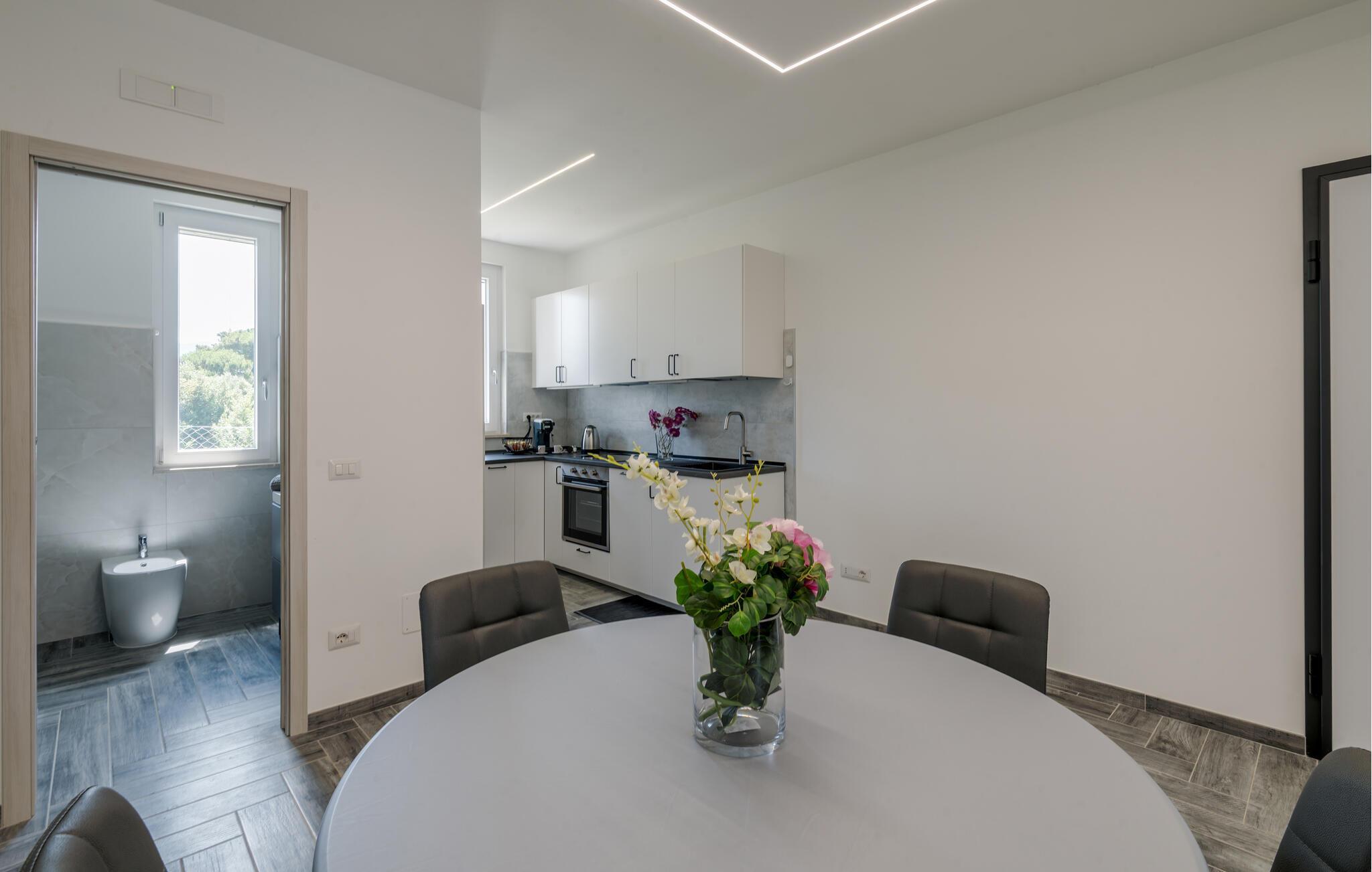 Eingebettet in ein ruhiges, ländliches Grundstück im Südosten von Velletri begrüßt Sie dieses komfortable Urlaubsdomizil, in dem Sie sich mit Ihren Liebsten wie zu Hause fühlen werden. Bereiten Sie in der charmanten und modernen Küche Ihre Lieblingsgerichte zu und speisen Sie am einladenden Esstisch im offenen Wohnraum. Machen Sie es sich abends auf der gemütlichen Sofalandschaft bequem, streamen Sie einen Film oder widmen Sie sich einem Gesellschaftsspiel.