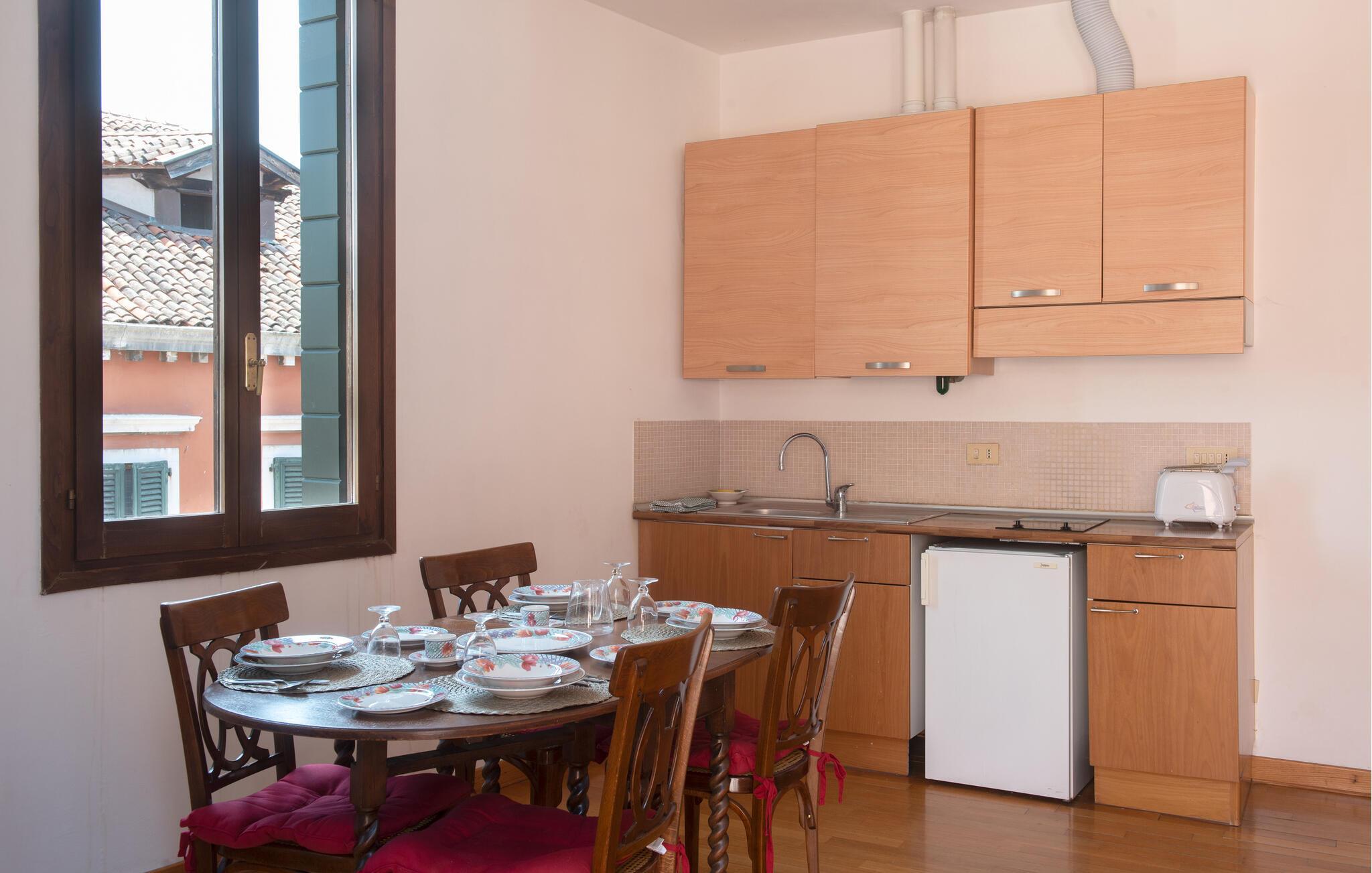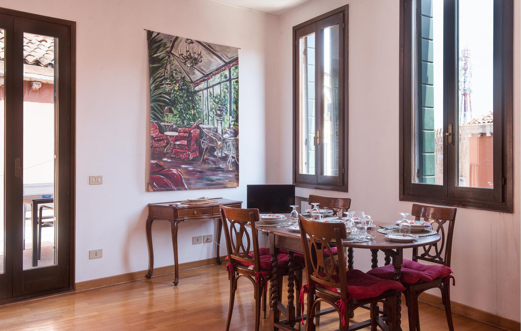 Elegante Ferienwohnung in einem venezianischen Palast im charakteristischen und interessanten Viertel Arsenale, wenige Schritte von der Riva degli Schiavoni entfernt, der Kanalpromenade, die in wenigen Minuten zur Piazza San Marco führt, von wo aus Sie den schönen Blick auf das Wasser und die Insel San Giorgio genießen können, und unweit der Biennale di Venezia, wo Ausstellungen von internationaler Bedeutung stattfinden. Nur 3 Minuten entfernt ist die Haltestelle der Wasserbusse, die es ermöglichen, bequem Venedig zu erkunden und die nahen Inseln Lido di Venezia mit Strandbädern, die für die Glasbläserei berühmte Insel Murano und die Insel Burano mit ihren charakteristischen Nadelspitzen und bunten Häusern zu erreichen. Ihre Ferienwohnung befindet sich im zweiten Stock und bietet eine große Terrasse (18 m²) mit Gartenmöbeln und Liegestühlen, von hier aus können Sie diese charmante Stadt und ihre Kanäle bewundern. Zur Wohnung gehören auch ein geräumiges Wohnzimmer mit Küche und Schlafsofa, ein Doppelbettzimmer und ein Badezimmer. Baby-Bett auf Anfrage. Anreise nach 21 Uhr und am Sonntag auf Anfrage und gegen Bezahlung.