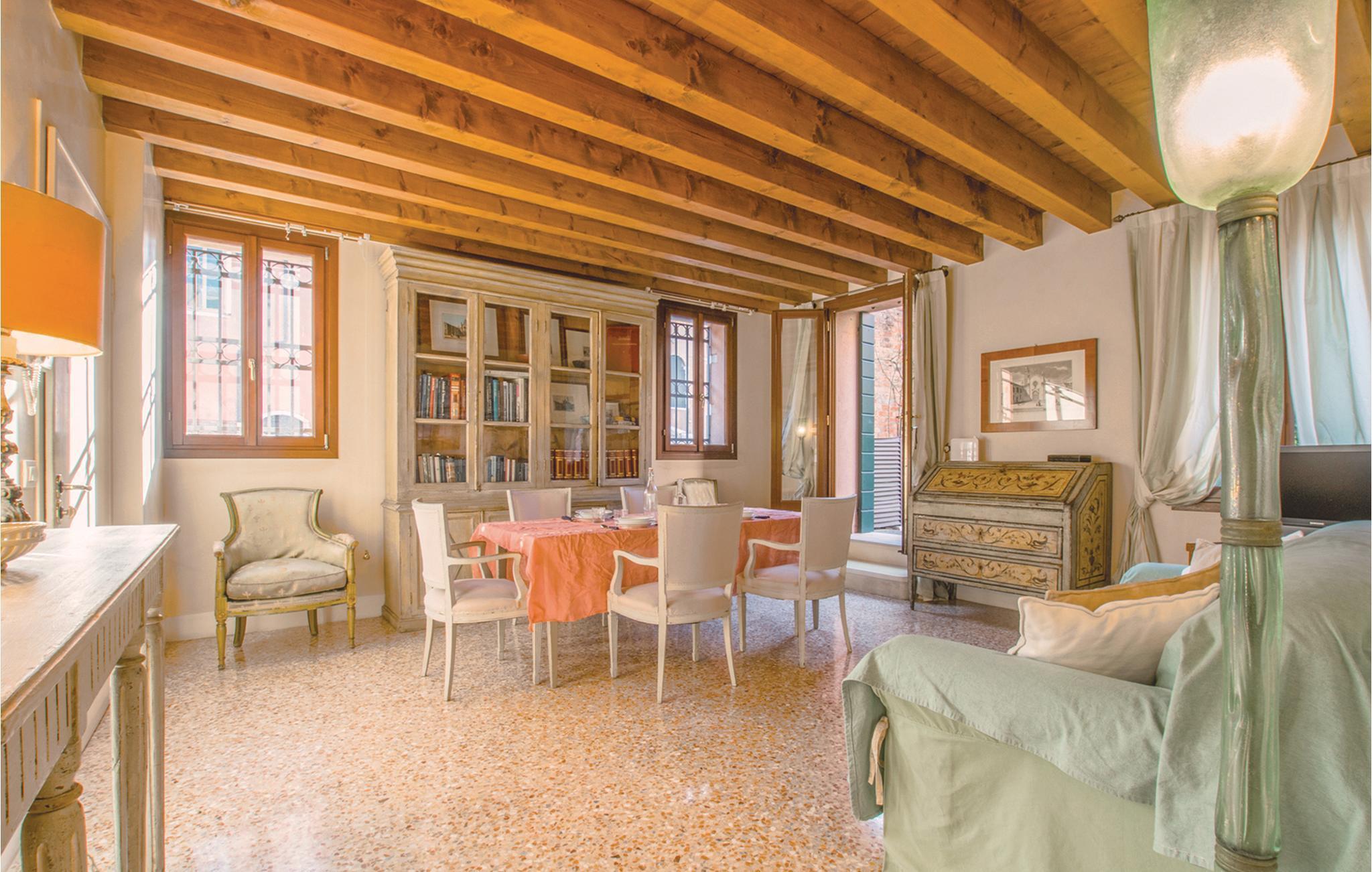 Diese elegante, geschmackvolle Ferienwohnung befindet sich in der Nähe der Kirche Chiesa della Madonna dell'Orto, im Viertel Cannaregio, einer der ruhigsten Gegenden von Venedig. Die Wohnung befindet sich im Erdgeschoss und verfügt über einen schönen, geräumigen und gut ausgestatteten Garten, von dem aus Sie einen Teilblick auf die schöne Kirche genießen können. Das Interieur ist elegant eingerichtet und unterteilt sich in ein geräumiges Wohnzimmer, eine Wohnküche, ein Schlafzimmer mit Doppelbett, ein Zweibettzimmer, zwei Badezimmer. Die Unterkunft befindet sich in einem sehr originellen Gebiet von Venedig. Genießen Sie die Gerichte der Restaurants der Fondamenta della Misericordia oder besuchen Sie die nahe gelegene Insel Murano, die für Glasbläserei bekannt ist, und die Insel Burano, berühmt für Spitzenproduktion und ihre farbenfrohen Häuser. Nur wenige Schritte entfernt befindet sich das bekannte Ghetto Viertel. Eine Vaporetto-Haltestelle (Wasserbus) ist nur fünf Minuten entfernt. Innerhalb von wenigen Minuten erreichen Sie mit dem Wasserbus oder zu Fuß entlang der engen Gassen von Venedig die wichtigsten Orte dieser einmaligen Stadt, wie die charmante Piazza San Marco und die Rialto-Brücke.