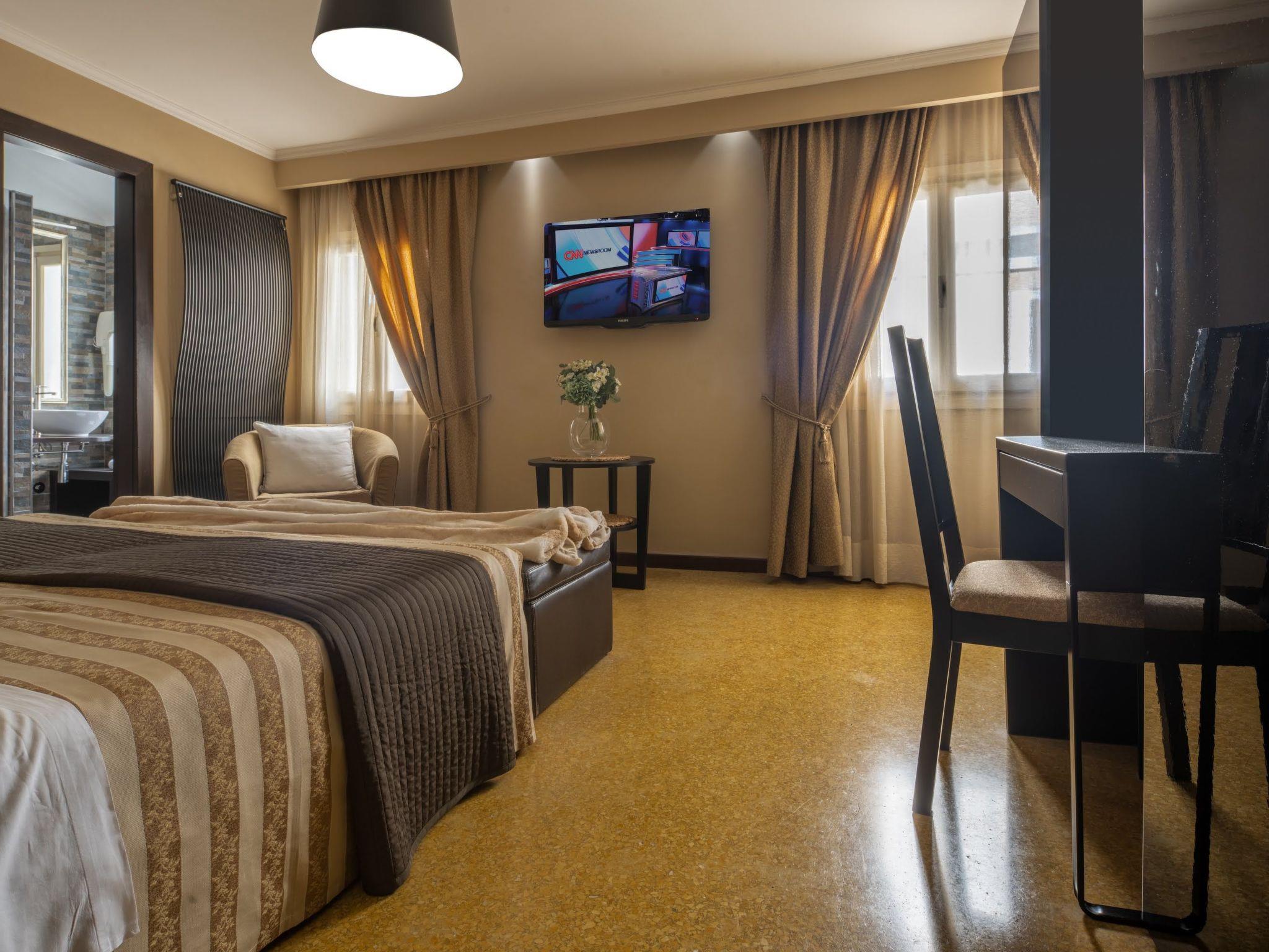 Das Innere der Wohnung zeichnet sich durch Qualität, Raum und Komfort aus. Sie liegt auf 120 Quadratmetern im 3. Stock, hat keinen Aufzug und verfügt über eine kleine Terrasse. Die Wohnung ist voll klimatisiert und beheizt, verfügt über kostenloses Wi-Fi und besteht aus 3 Schlafzimmern mit Doppelbett und einem kleinen Zimmer mit Einzelschlafsofa, 2 Bädern und einem voll ausgestatteten Wohnzimmer mit Doppelschlafsofa. Die moderne, voll ausgestattete Küche trägt zur Autonomie eines jeden Aufenthalts bei.