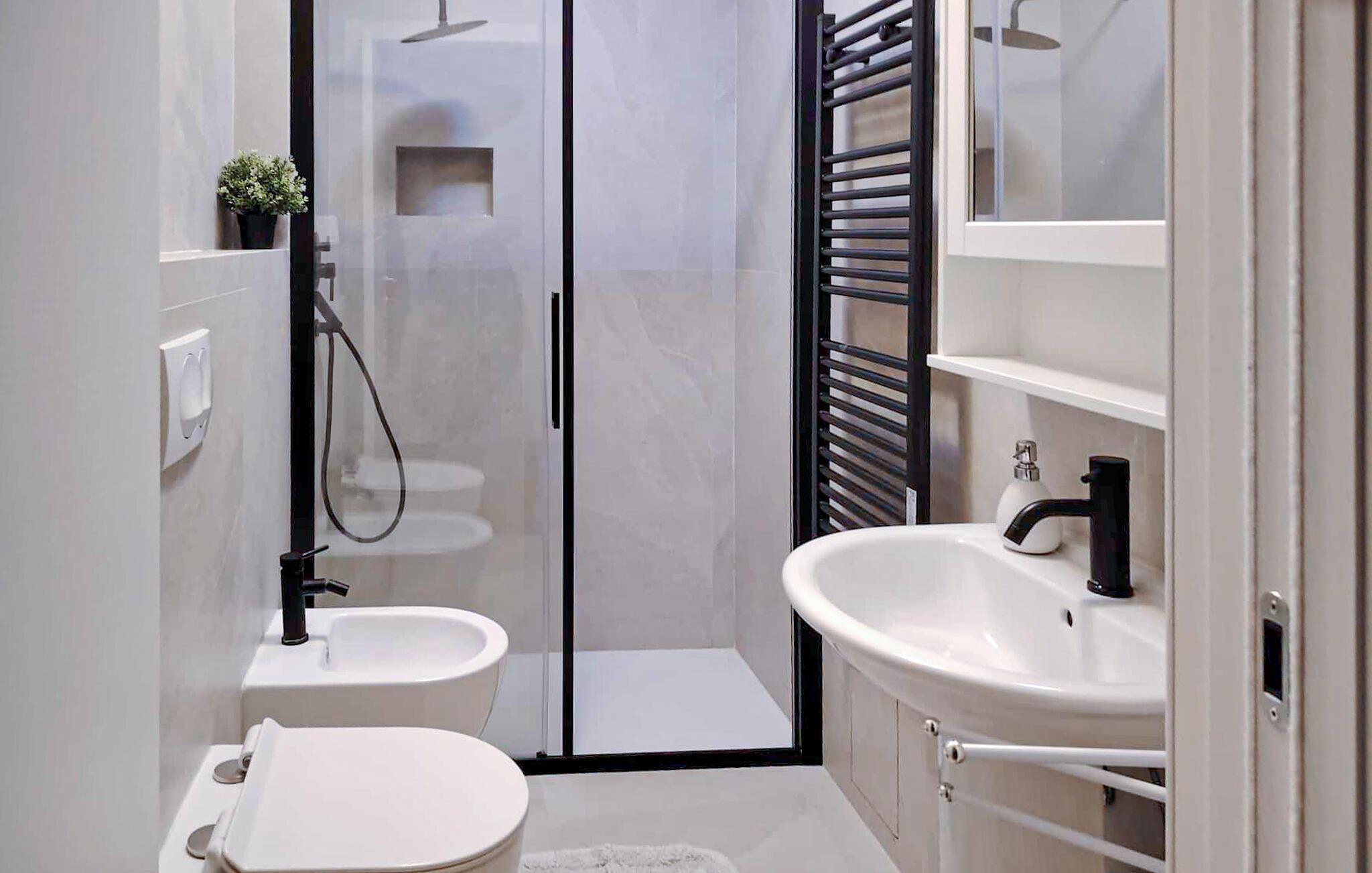 Badezimmer (nr. 1) - WC. Warmes und kaltes Wasser. Dusche