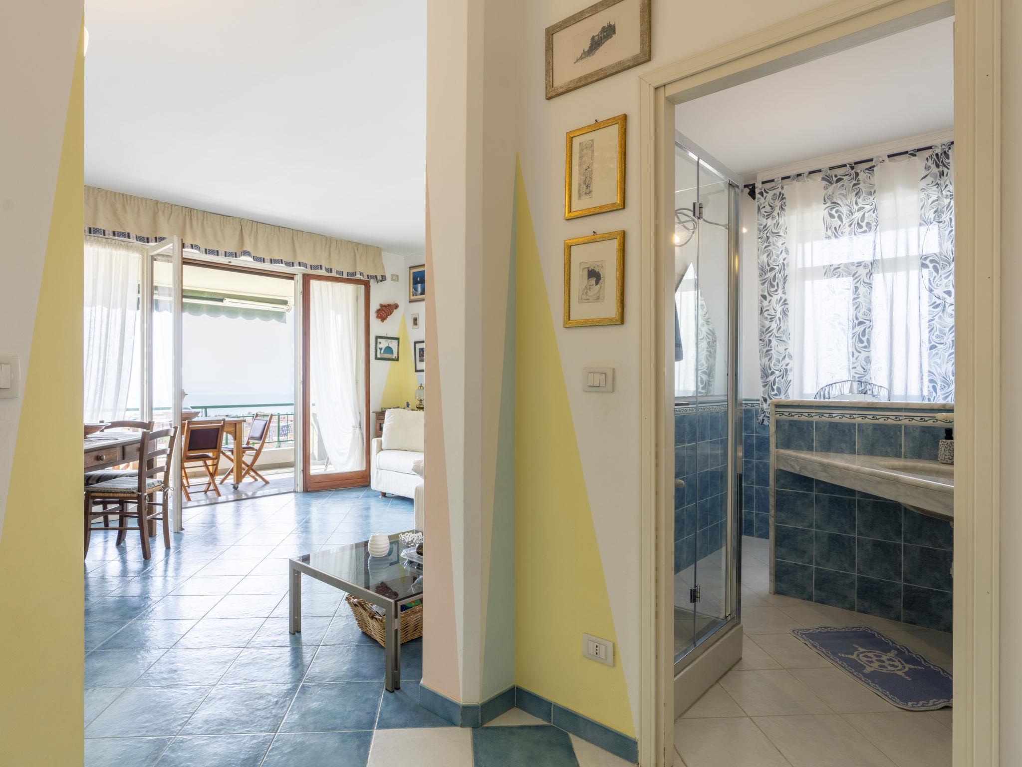 "Degli Ulivi", 2-Zimmer-Wohnung 80 m2 im 2. Stock. Hell, geschmackvoll und gemütlich eingerichtet: Wohn-/Esszimmer mit 1 Doppeldiwanbett (160 cm, Länge 200 cm). Ausgang zum Balkon. 1 Zimmer mit 3 Betten (90 cm, Länge 200 cm), 1 Klappbett (80 cm, Länge 200 cm). Ausgang zum Balkon. Offene Küche (Backofen, 4 Flammen, Toaster, Wasserkocher, Mikrowelle). Ausgang zum Balkon. Dusche/Bidet/WC. G-Heizung. Heizung nur verfügbar von 01.11. bis 08.04. Grosser Balkon 20 m2. Balkonmöbel. Sehr schöne Sicht auf das Meer und die Ortschaft. Zur Verfügung: Waschmaschine, Haartrockner. Internet (WLAN, gratis). Garage beim Haus. Maximal 1 Haustier/Hund erlaubt. IT008065C2CHA8G63P