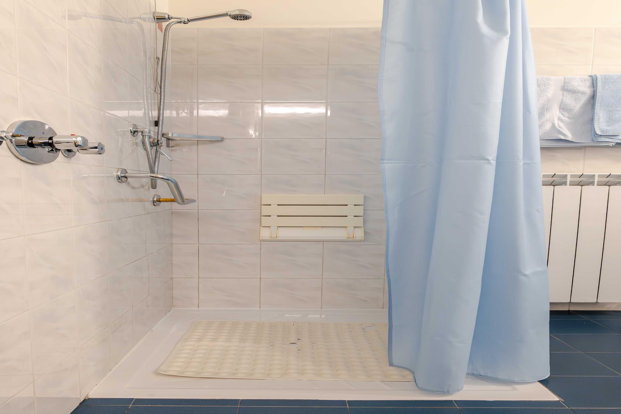 Rollstuhlgerechte Dusche mit Duschbank oder Duschstuhl
