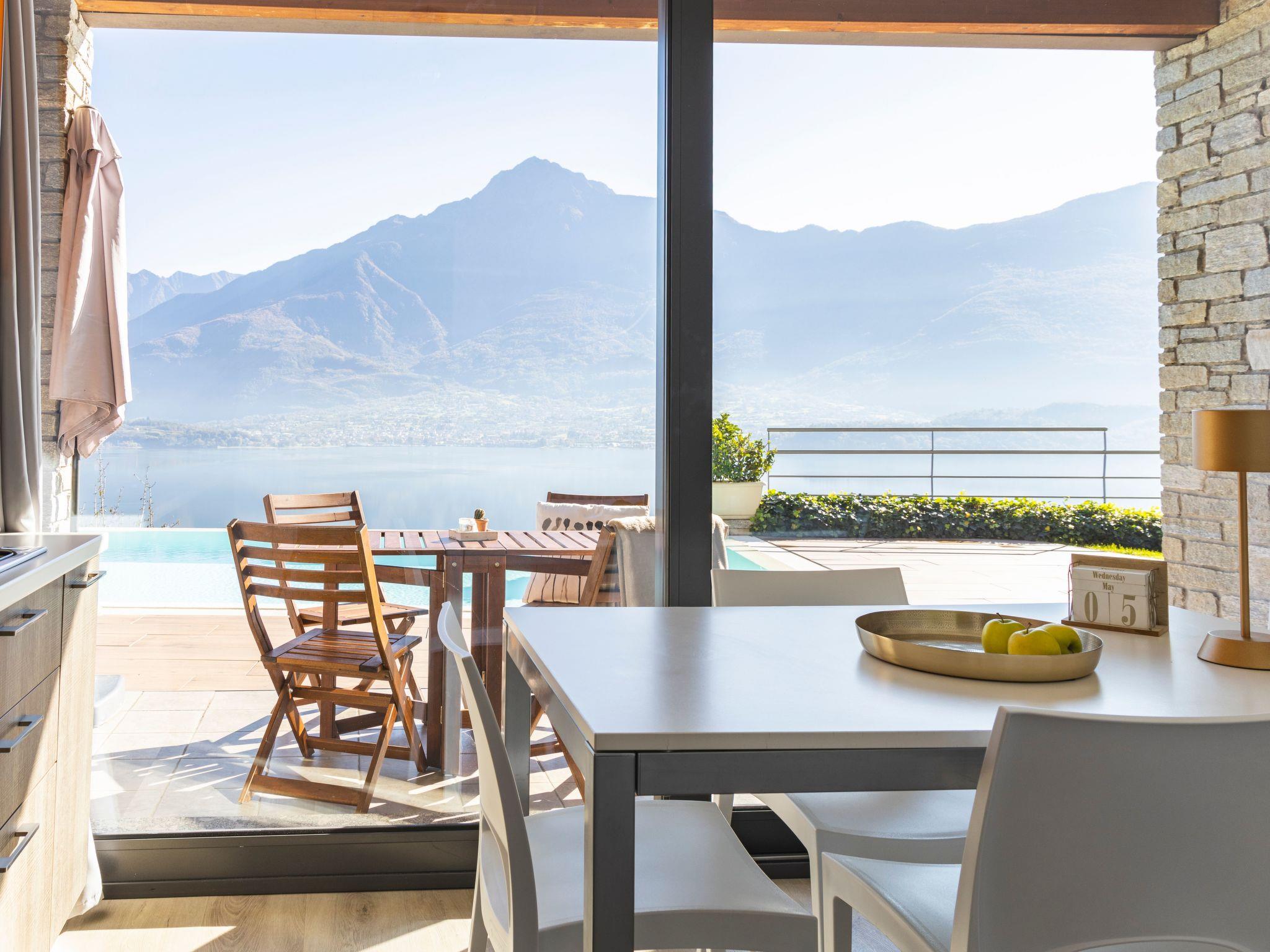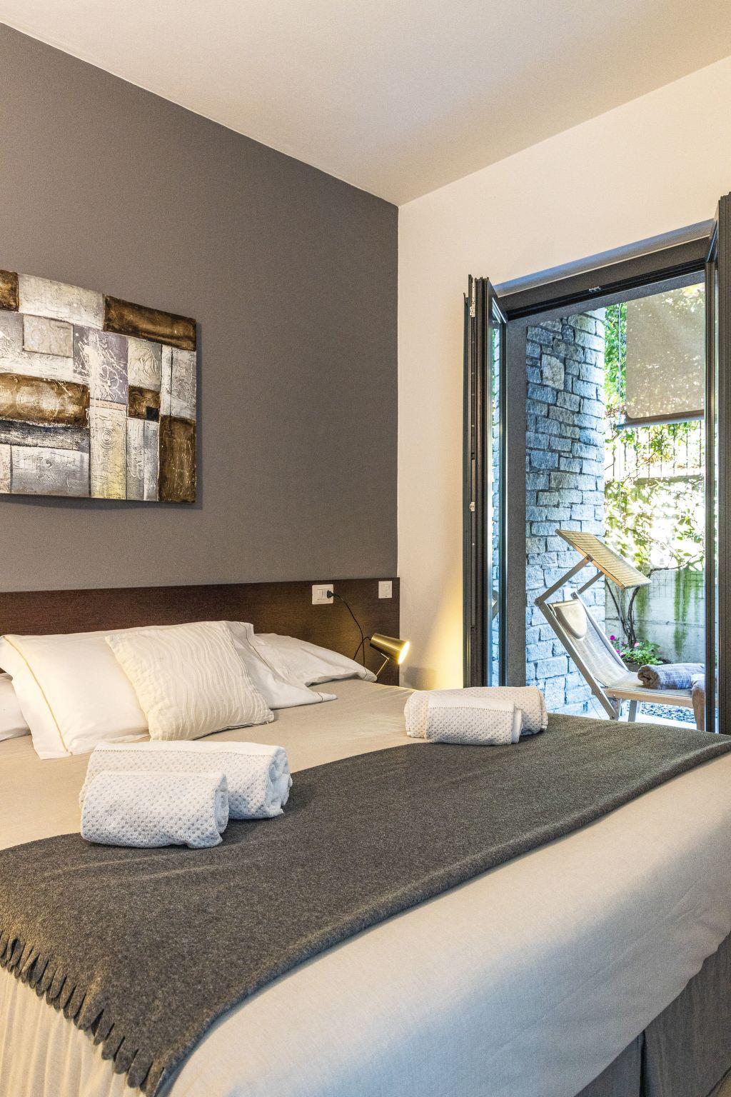Die Wohnung befindet sich im Erdgeschoss, mit direktem Zugang zum Garten und Schwimmbad. Das große Wohnzimmer mit Küchenzeile öffnet sich auf die Veranda mit Tisch und Stühlen; dahinter befindet sich der Schlafbereich, bestehend aus einem Schlafzimmer mit Doppelbett, Kleiderschrank und Bad mit Dusche. Es ist möglich, bis zu drei Erwachsene zu beherbergen, indem man das bequeme Schlafsofa im Wohnzimmer nutzt.