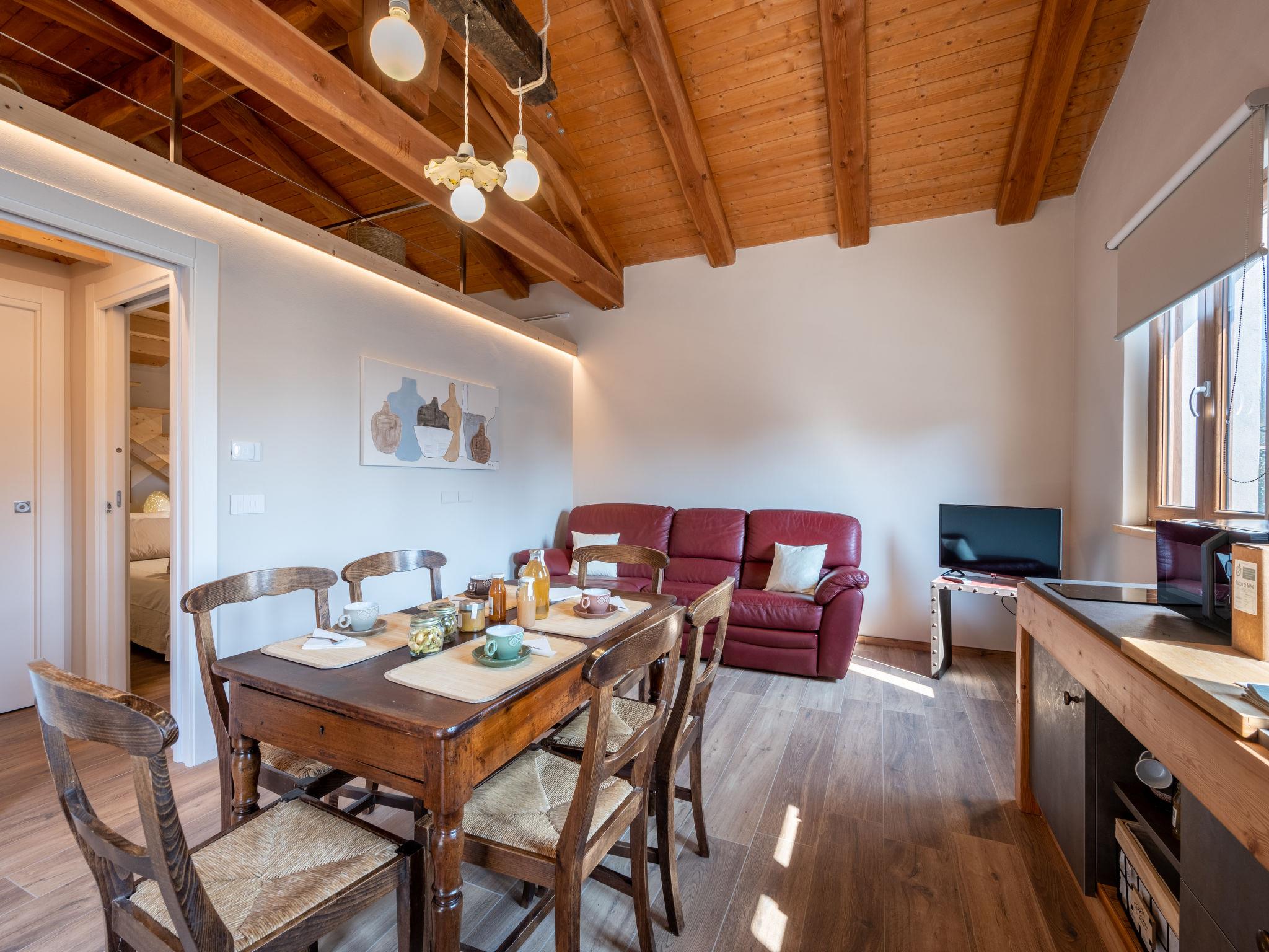 "Da Marita", 2-Zimmer-Haus 70 m2 auf 2 Stockwerken im 1. Stock. Wohn-/Esszimmer mit Esstisch und TV. 1 Doppelzimmer. Kochnische (2 Induktionskochplatten, Mikrowelle, elektrische Kaffeemaschine). Dusche/Bidet/WC. G-Heizung. Heizung nur verfügbar von 15.10. bis 15.04. Obergeschoss: (geländerlose Treppe) abgeschrägtes, offenes, verbundenes Zimmer, Deckenhöhe 40 - 100 cm, Fenster zum Wohnzimmer mit 1 Doppelbett. Zur Verfügung: Haartrockner. Internet (Wireless LAN, gratis). Anstelle eines abgeschlossenen Schlafzimmers befinden sich manche Schlafplätze in einem offenen Bereich (Galerie, Nische etc.). IT004240C2GNDME8J9
