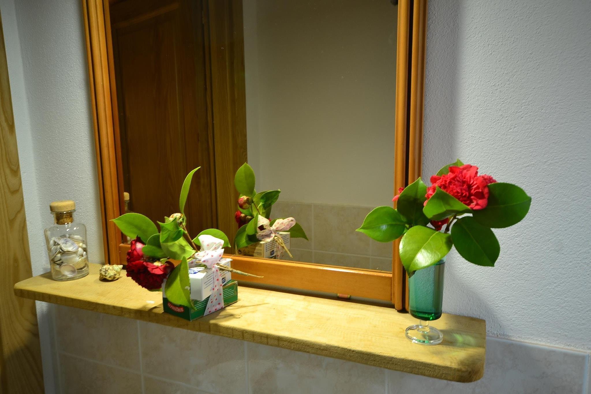 In der 1. Etage: (Wohnzimmer(Einzelbett, Esstisch), offene Küche(Herd, Kochherd(4 Kochplatten), Kaffeemaschine), Schlafzimmer(Doppelbett), Badezimmer(Dusche, Waschbecken, Toilette)) Terrasse, Garten(alleinige Nutzung), Garten(Gemeinschaftliche Nutzung mit anderen Gästen), Gartenmöbel, Parkplatz