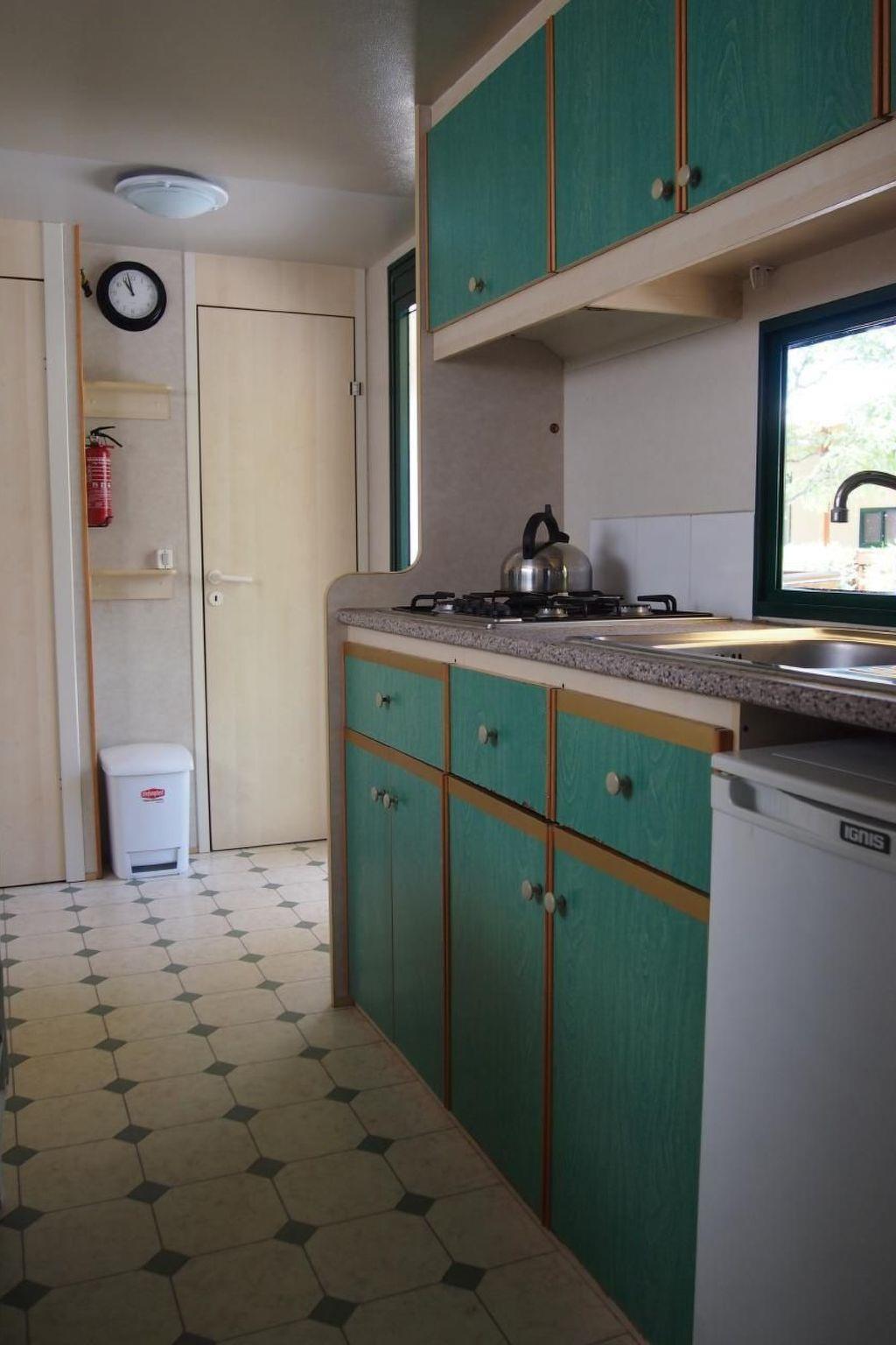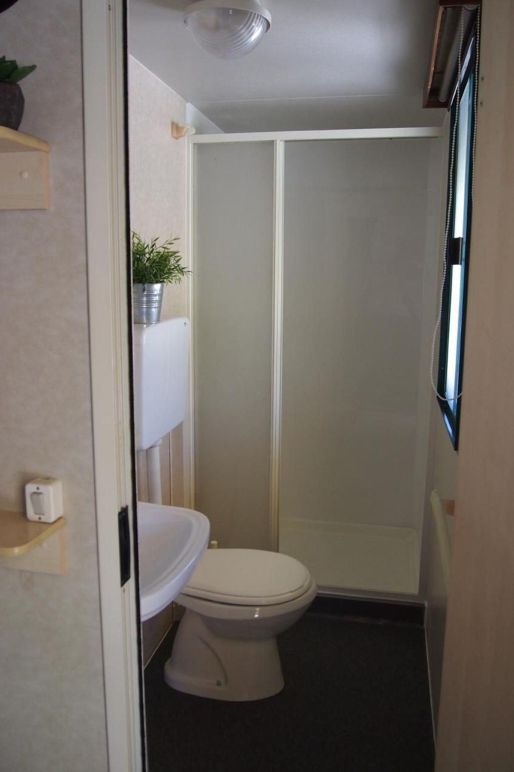 Der Eigentümer bietet vier solcher Mobilheime an, von denen dieses eine repräsentative Beschreibung ist. Dieses Mobilheim bietet Ihnen eine luxuriöse Einrichtung. Der Wohnbereich verfügt über eine Sitzgelegenheit, Klimaanlage (gegen Gebühr), Satellitenfernsehen (nur auf Anfrage) und einen DVD-Player.Die offene Küche ist mit einem Kühlschrank, einer Senseo-Kaffeemaschine, einer Mikrowelle, einem Gasherd, einem Toaster und einem Wasserkocher ausgestattet.Es gibt ein Schlafzimmer mit einem Doppelbett und ein zweites Schlafzimmer mit einem Einzelbett und einem Etagenbett für zwei Personen.Das Badezimmer hat eine Dusche, ein Waschbecken und eine Toilette.