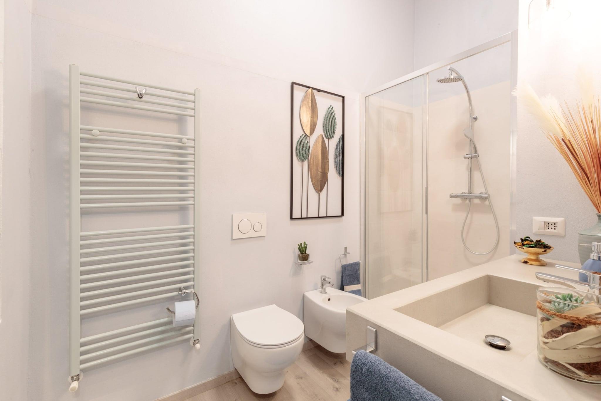 Dieses moderne Apartment strahlt eine ruhige Atmosphäre aus, die durch strahlendes Weiß und sanfte Töne eine entspannte Atmosphäre schafft. Direkt an der berühmten Promenade gelegen, bietet es einfachen Zugang zum pulsierenden Leben Viareggios, wo Sie ein lebendiges Nachtleben und köstliche lokale Küche genießen können. Die Unterkunft befindet sich in einem Gebäude aus dem frühen 20. Jahrhundert und besticht durch ihre Ruhe und ihr minimalistisches Dekor mit einem Schwerpunkt auf entspannter Eleganz. Die Versilia-Küste, ein malerisches Juwel an der toskanischen Riviera, strotzt nur so vor Glamour und Energie. Verbringen Sie Ihre Tage an den berühmten Stränden mit exzellenten Restaurants und Clubs im feinen Sand sowie fantastischen Badeanstalten, die Ihnen einen Eindruck vom authentischen Küstenleben vermitteln. Nur 20 Autominuten entfernt können Sie charmante historische Städte wie Lucca und Pisa erkunden oder atemberaubende Naturwunder wie die Cinque Terre, San Gimignano und das berühmte Weinanbaugebiet erkunden – ideal für Tagesausflüge. Wenn Sie es lieber gemütlich angehen lassen möchten, schnappen Sie sich ein Fahrrad und radeln Sie durch malerische Straßen, die nahegelegenen Pinienwälder und die malerischen Piers. Diese einladende Wohnung im zweiten Stock ohne Aufzug verspricht eine einzigartige Mischung aus Komfort und Stil und ist damit der ideale Rückzugsort für alle, die das Küstenleben in Viareggio von seiner besten Seite erleben möchten. Hinweis: Die Kurtaxe ist vor Ort zu entrichten.