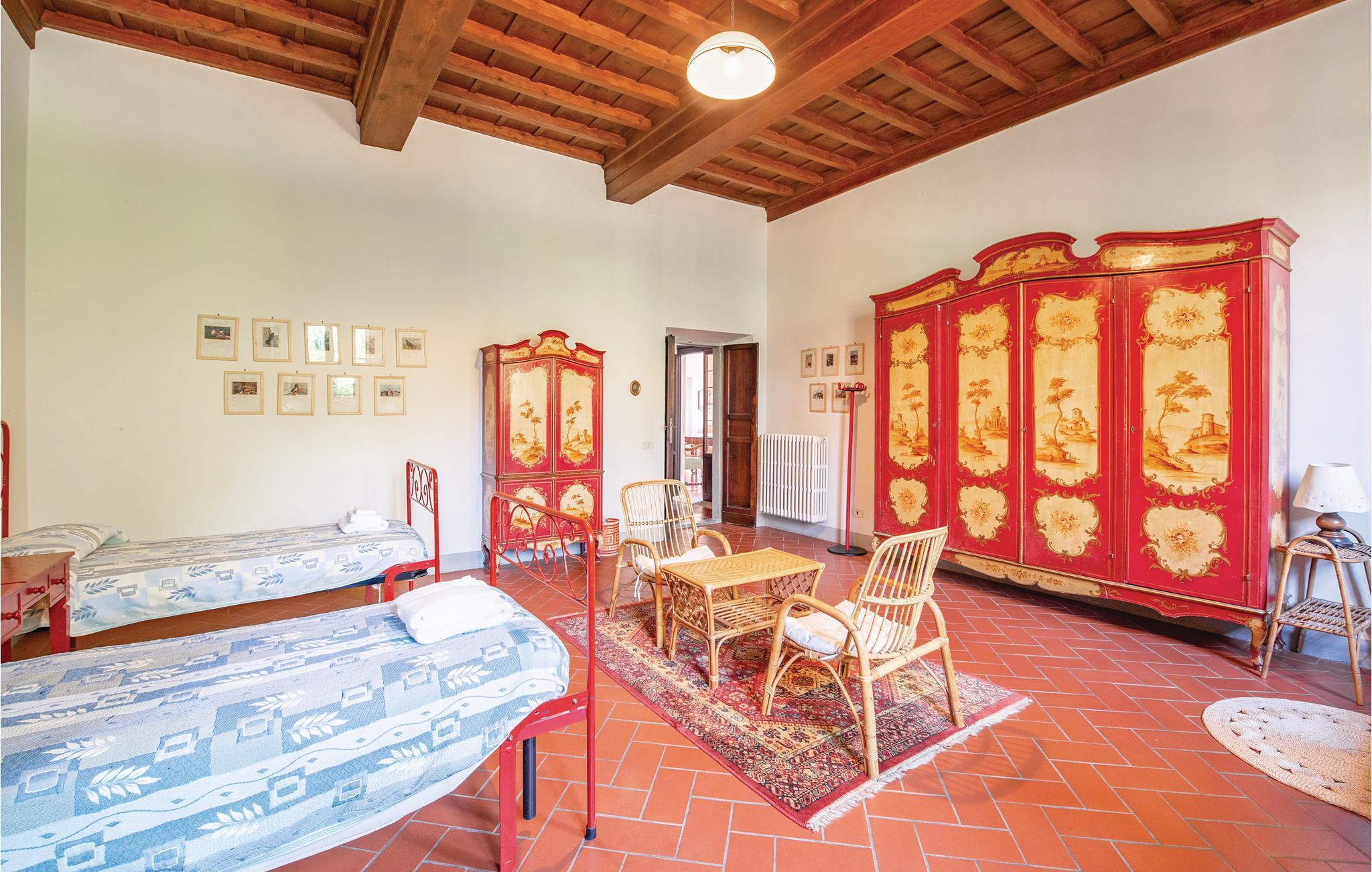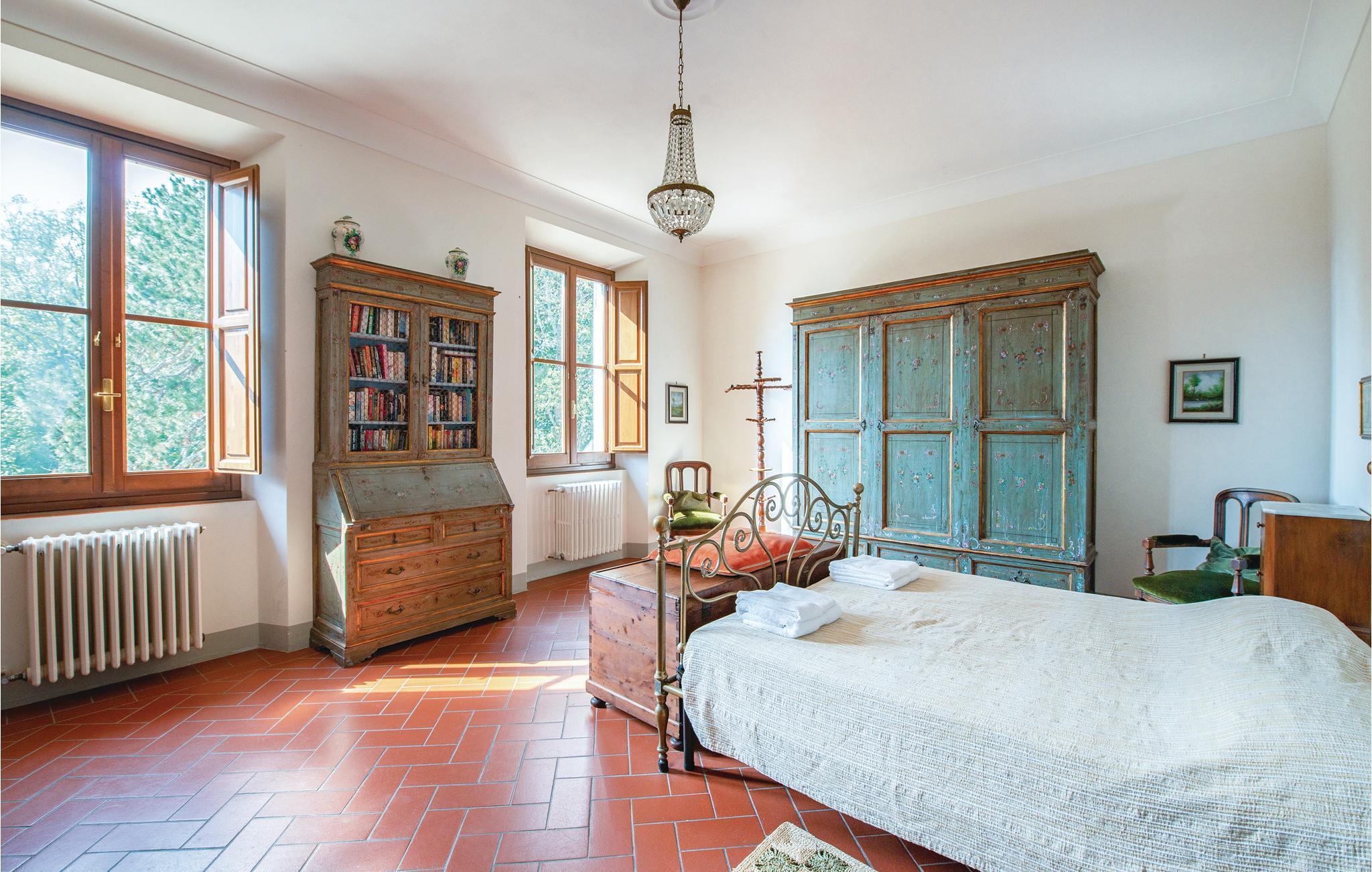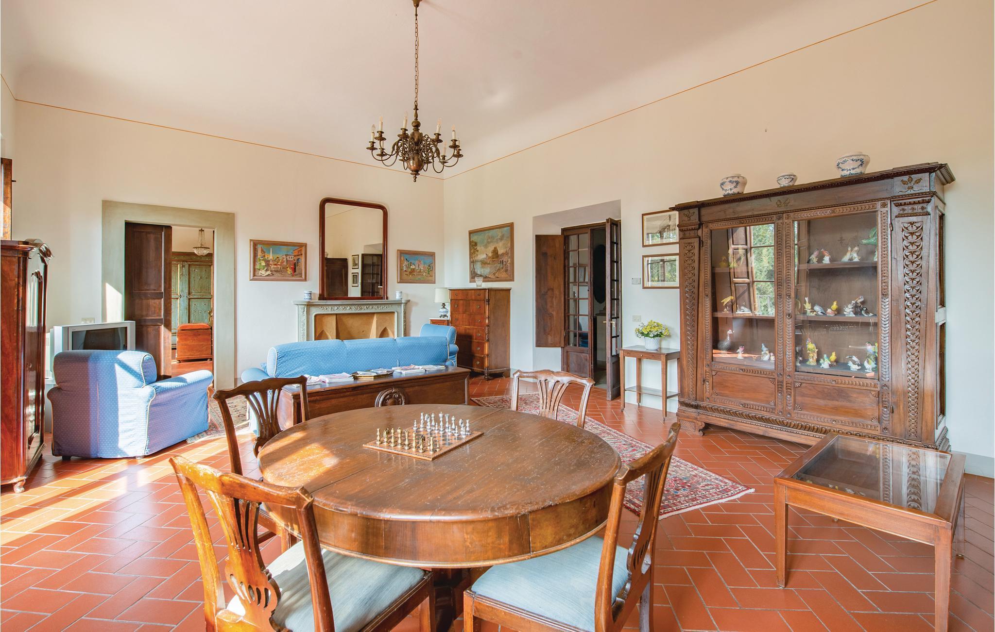 Dieses Herrenhaus aus dem 18. Jahrhundert, das in eine wunderschöne Ferienvilla umgewandelt wurde, mit einem großen umzäunten Park (ca. 10.000 m²) und einem privaten Pool (5x12; h 1,20-2,20), befindet sich in einer dominanten Panoramalage 3 km vom Dorf Vicchio entfernt. Die Villa erstreckt sich über zwei Etagen, ist sehr groß und hat ihren ursprünglichen Charme mit Kassettendecken und antiken Möbeln bewahrt, garantiert jedoch modernen Komfort. Hier gibt es genug Platz für zwei oder mehr Familien mit Kindern oder Gruppen von Freunden, die ihren Urlaub zusammen verbringen, und die jüngeren Gäste werden sich sicherlich auf den großen Außenspielraum freuen, während sich die Erwachsenen auf vollkommene Entspannung „konzentrieren“ können, am Pool oder unter dem schattigen Laub der Jahrhunderte alten Bäume! Die mit einem großen Tisch und Stühlen möblierte Pergola ist ideal für Mahlzeiten im Freien und um das herrliche Panorama der Mugello-Hügel, reich an Wäldern, Feldern und Olivenhainen zu bewundern. Natur- und Trekkingliebhaber haben in dieser Region die Qual der Wahl, denn es gibt viele Wege, die zu stillen und unberührten Naturlandschaften führen. Wir empfehlen auch einen Ausflug zum Bilancino-See (ca. 25 km), der nicht nur zum Schwimmen geeignet ist, sondern auch Wassersportler anzieht. Hier kann man nämlich: Sportfischen, Kanufahren, Segeln und Windsurfen. Die Villa ist ein idealer Ausgangspunkt für einen Ausflug nach von Florenz (ca. 40 km), aber auch nach Siena, Lucca und Pisa, die auch mit dem Zug vom Bahnhof Vicchio (3 km - Geschäfte aller Art) erreichbar sind. Zwei Babybetten stehen zur Verfügung. Parken auf dem Grundstück. Haustiere nach Absprache zum Zeitpunkt der Buchung erlaubt. Der Hausmeister wohnt auf der Farm, die mit der Rückseite der Villa verbunden ist. Achtung: Die Anreise muss zwischen 15.00 und 17.00 Uhr erfolgen.