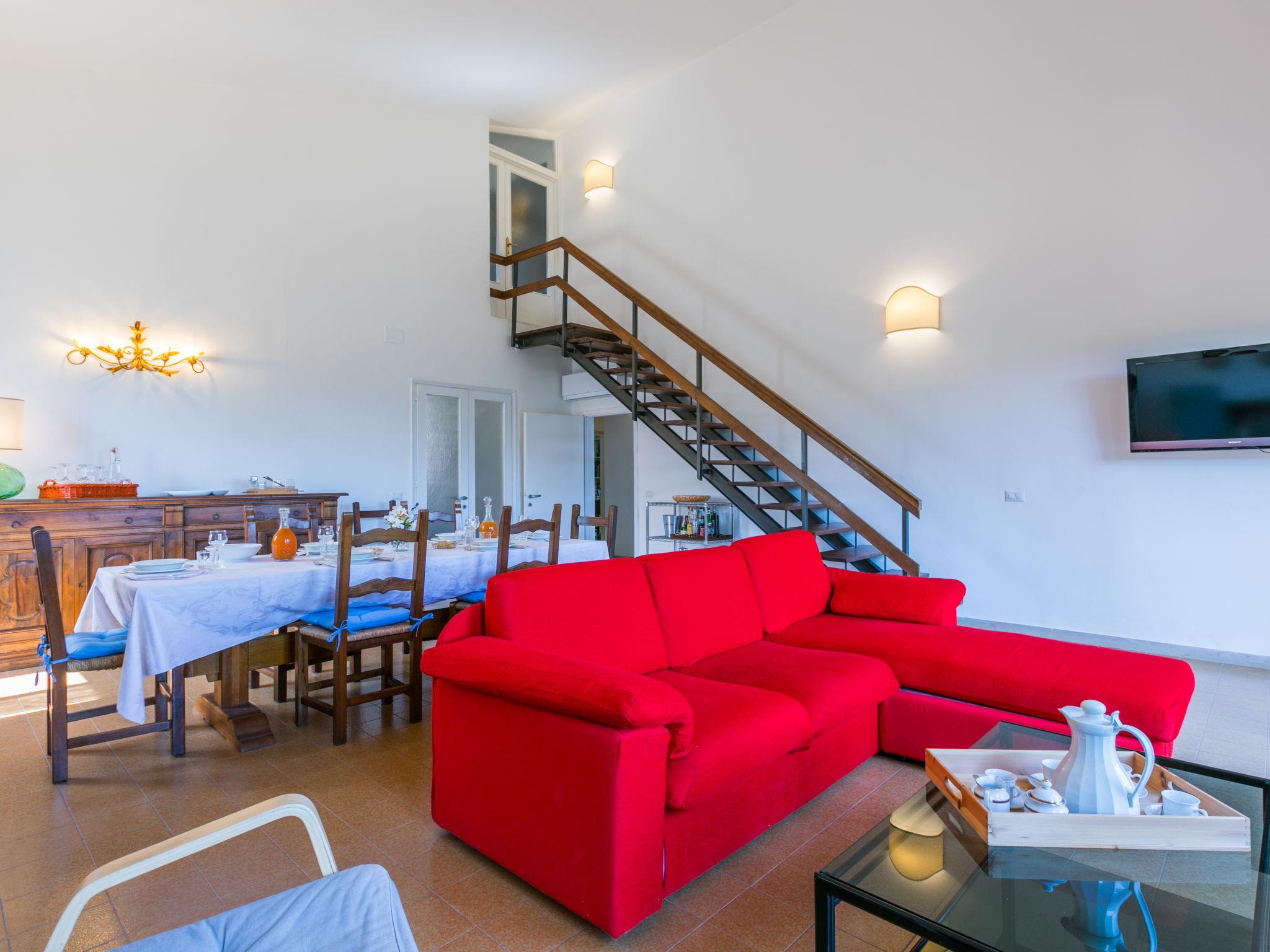 "Giorgina", 6-Zimmer-Haus 175 m2 auf 2 Stockwerken, im erhöhten Erdgeschoss. Komfortabel und gemütlich eingerichtet: Eingang. Studio mit Klimaanlage und Warmluftheizung. 1 Doppelzimmer mit Klimaanlage und Warmluftheizung. 1 Zimmer mit 2 Betten, Klimaanlage und Warmluftheizung. Grosses Wohn-/Esszimmer mit Klimaanlage und Warmluftheizung. Küche (Geschirrspüler, 4 Induktionskochplatten, Toaster, Wasserkocher, Mikrowelle, Tiefkühler, elektrische Kaffeemaschine). 2 Duschen/Bidet/WC. Obergeschoss: 1 Doppelzimmer mit Klimaanlage und Warmluftheizung. 1 Zimmer mit 2 Betten, Klimaanlage und Warmluftheizung. Dusche/Bidet/WC. Terrassenmöbel, Gartengrill. Panoramasicht auf die Landschaft. Zur Verfügung: Waschmaschine, Wäschetrockner, Kinderhochstuhl, Babybett bis 2 Jahre, Haartrockner. Internet (WLAN, gratis). Geeignet für Familien. IT048049C293N5EL44