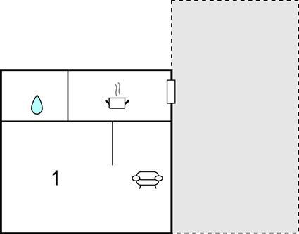 Die Wohnung besteht aus einer Küche, Badezimmer, ein Zimmer mit Esstisch, Doppelbett und Etagenbett.
