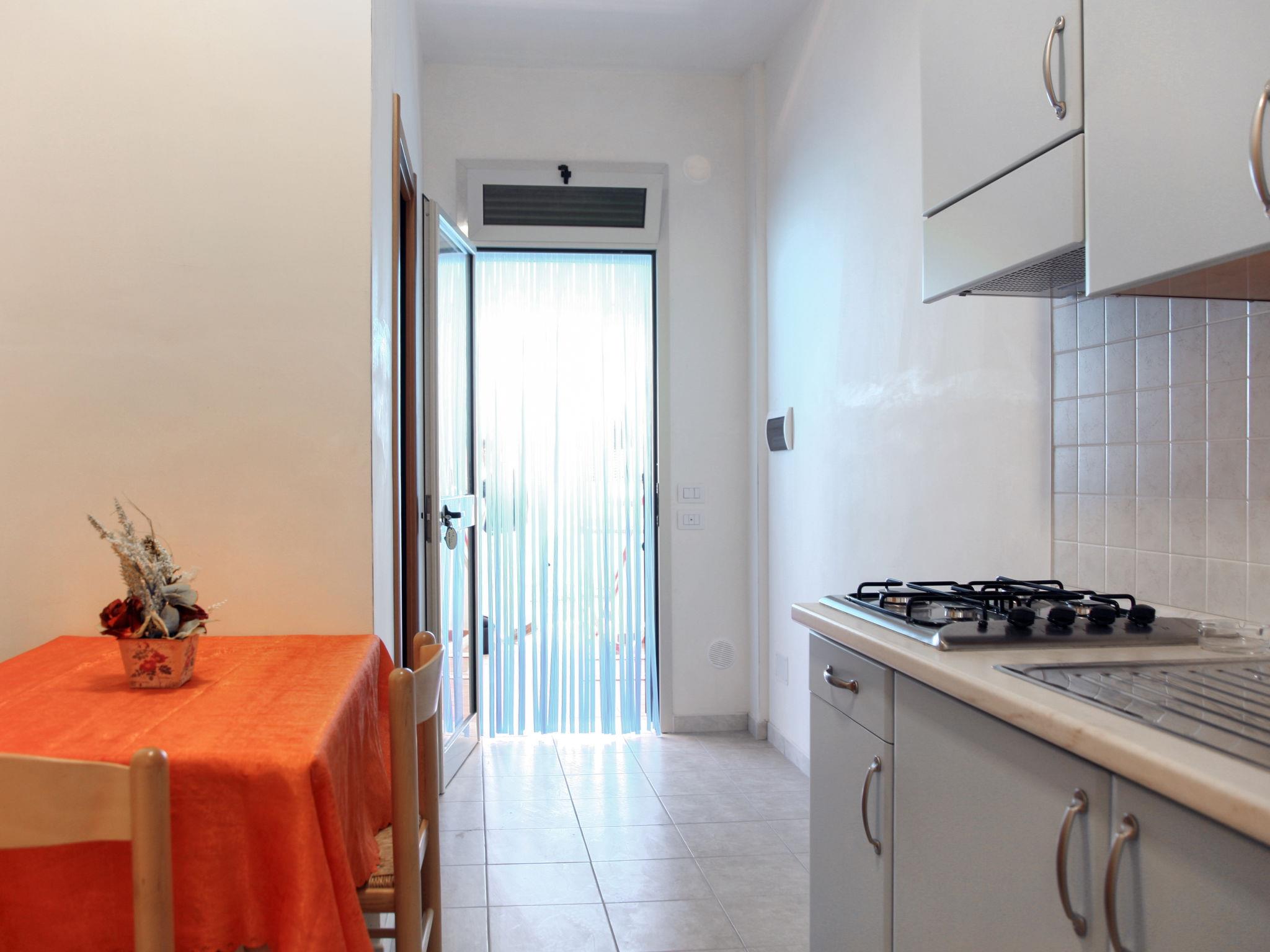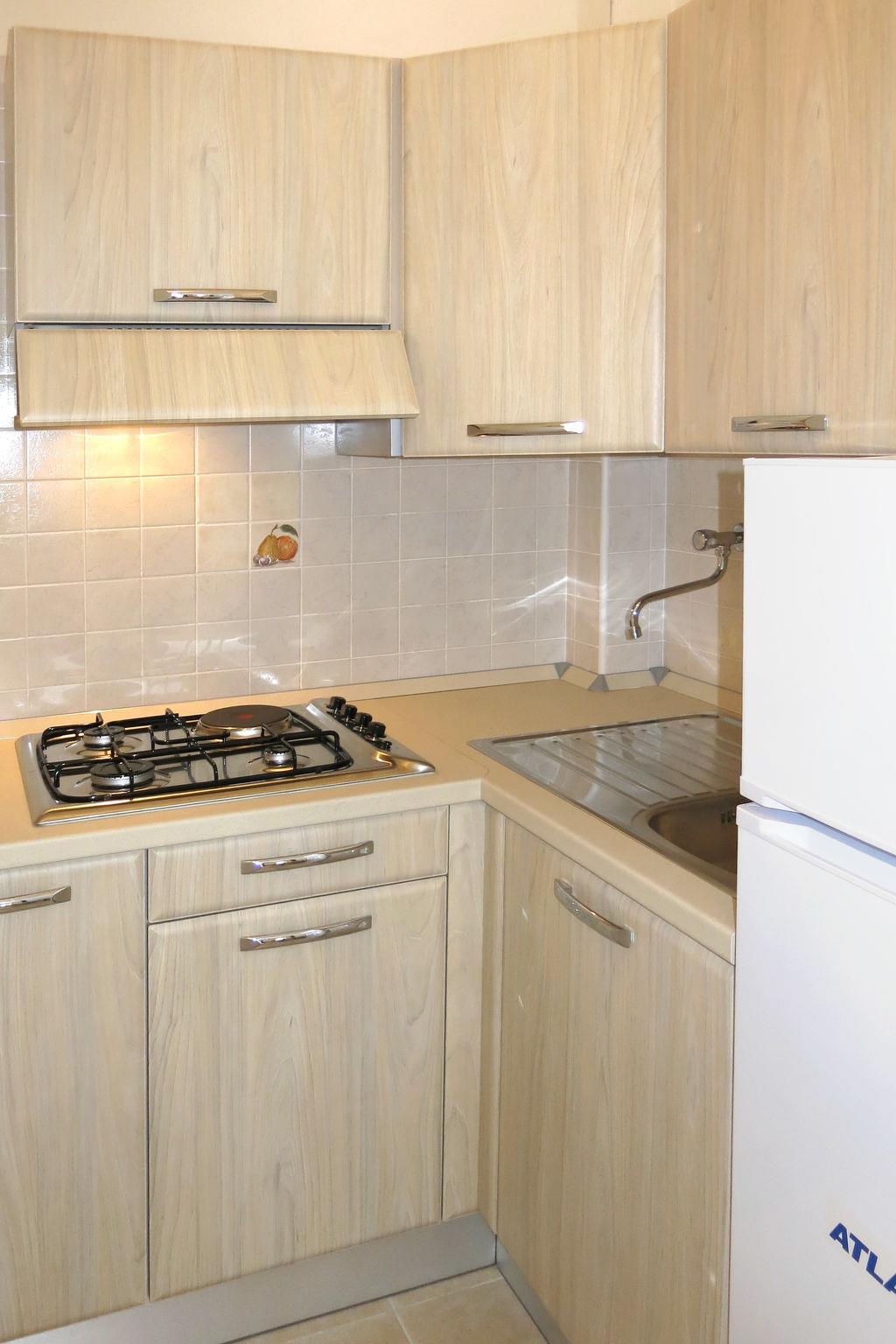 1-Zimmer-Reihenhaus 25 m2, im erhöhten Erdgeschoss. Zweckmässig eingerichtet: Studio mit 1 Doppelbett, Esstisch und TV. Ausgang zur Terrasse. Kochnische (2 Flammen). Dusche/Bidet/WC. Heizung (extra), Klimaanlage (extra). Terrasse überdacht. Terrassenmöbel. Parkplatz (1 Auto). Bitte beachten: Maximal 1 kleines Haustier/Hund erlaubt. Eigener Eingang. WLAN-Verbindung nur auf der Terrasse/Balkon verfügbar (kostenlos). IT071060B200022608