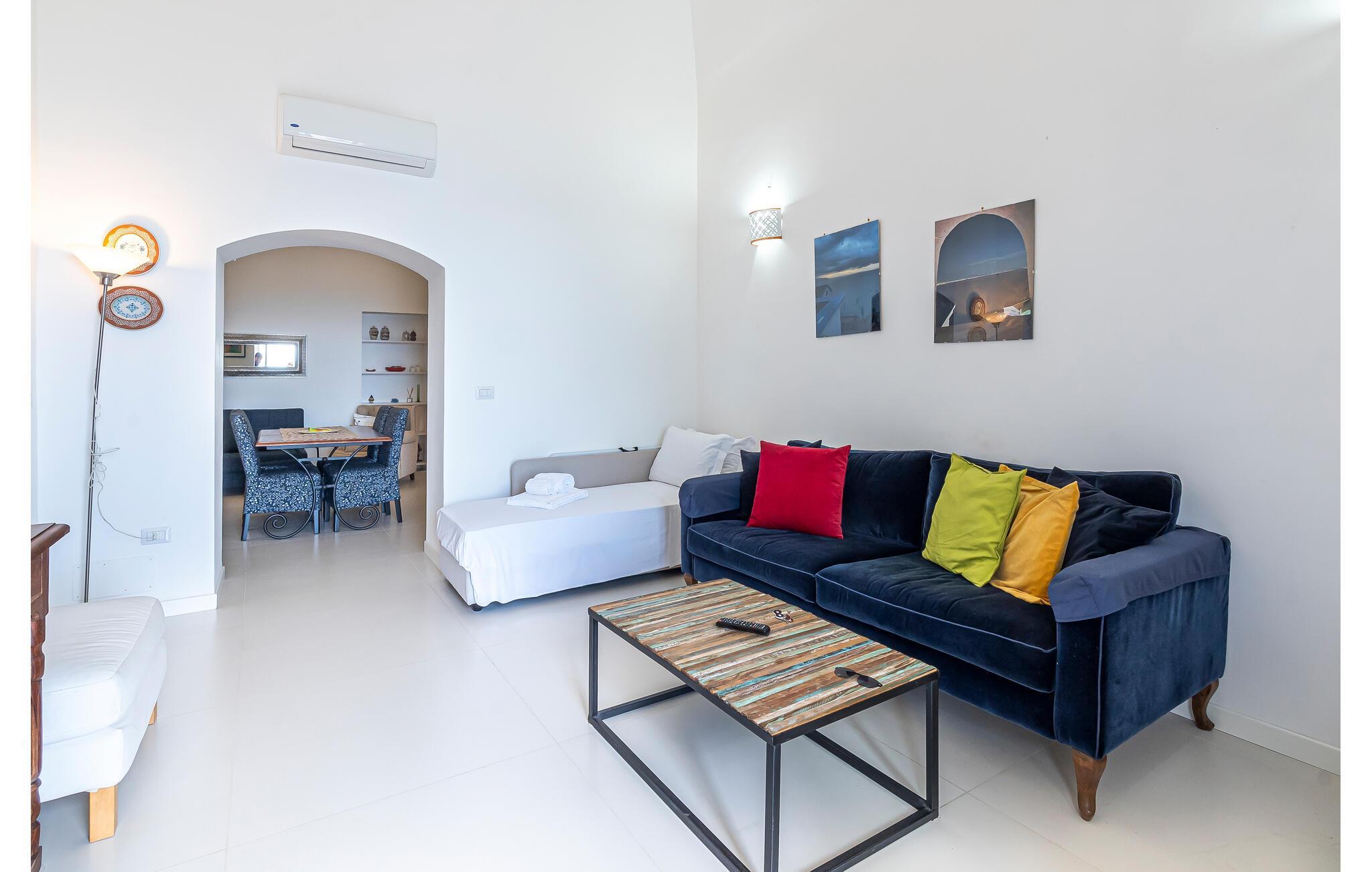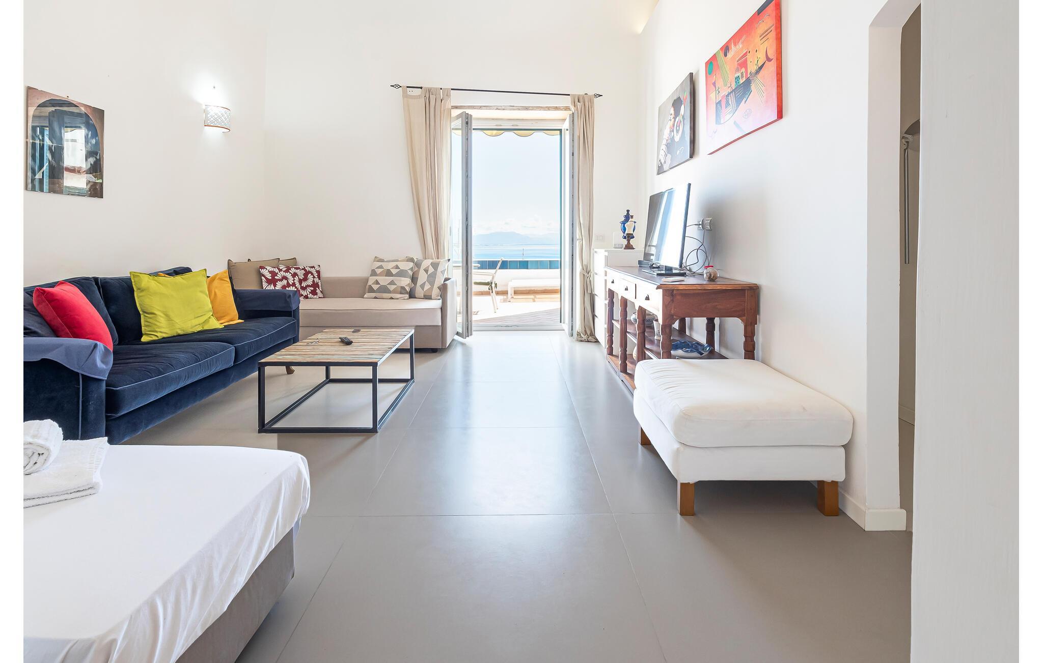 Treten Sie aus dem Wohnbereich auf die Terrasse, lassen Sie den Blick weit über das blaue Meer schweifen, genießen Sie ausgiebig die Sonne und beenden Sie einen herrlichen Tag mit einem leckeren Abendessen im Freien.