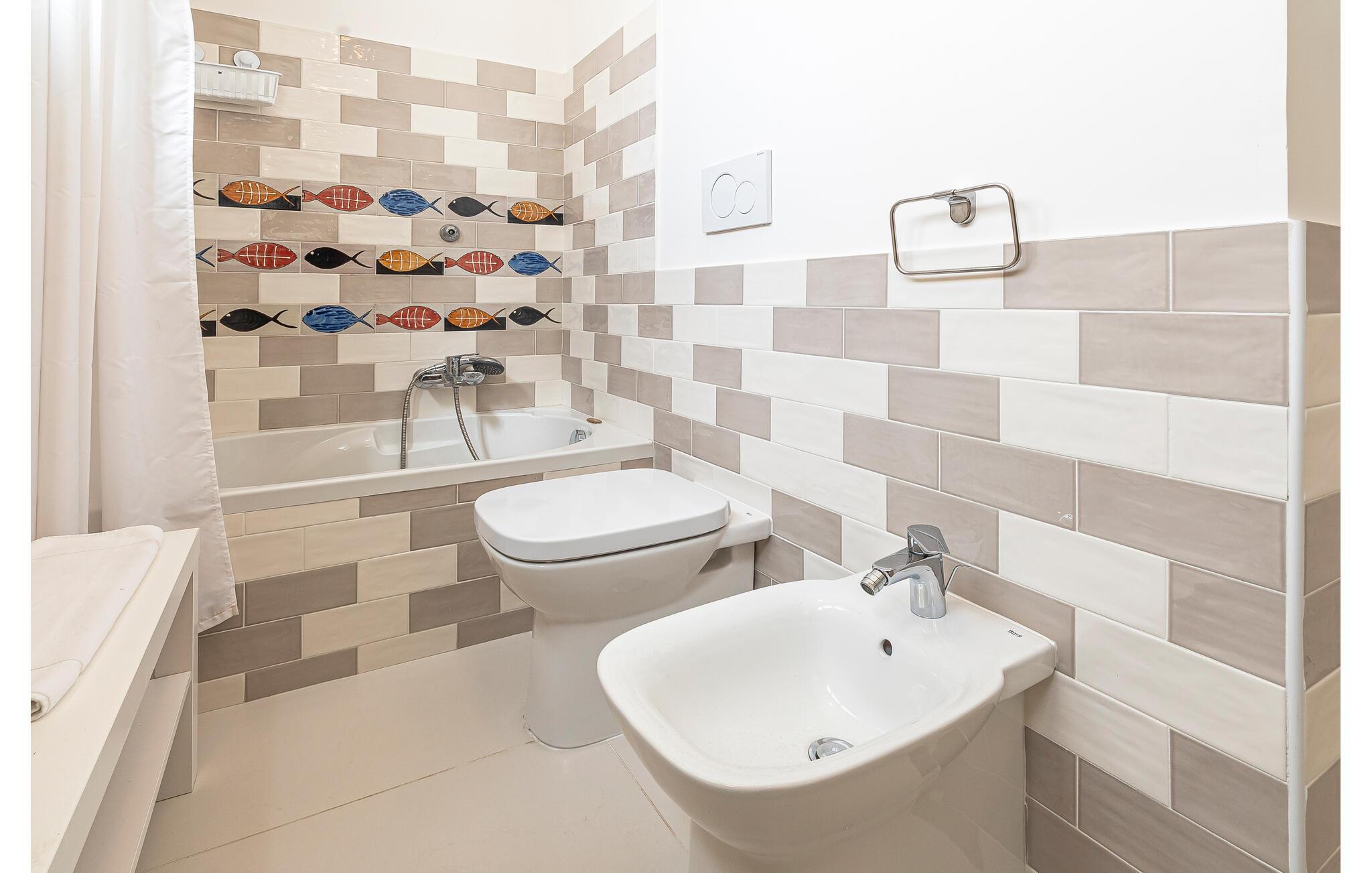 Badezimmer 6m2 (nr. 1) - WC. Warmes und kaltes Wasser. Badewanne