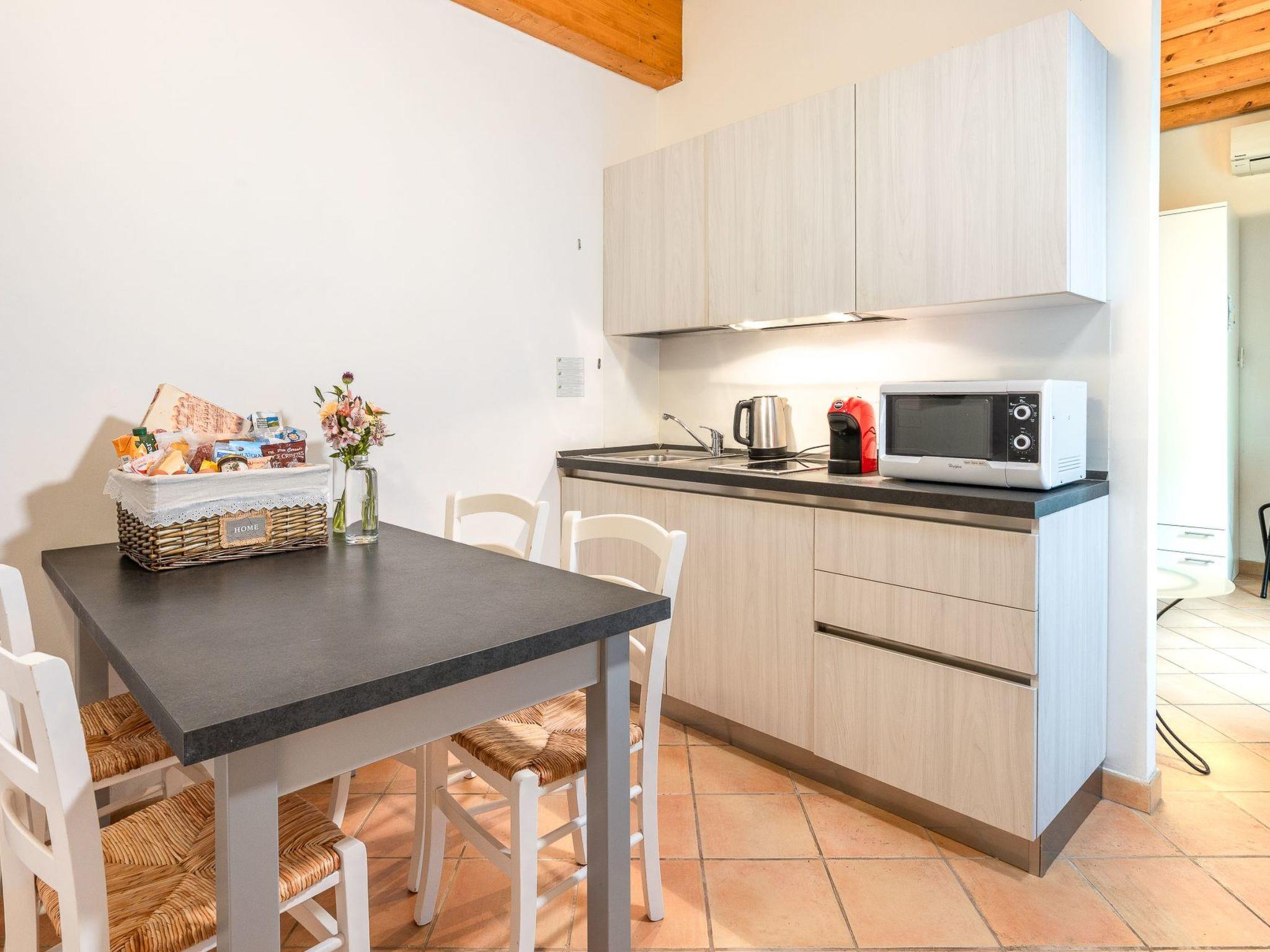 Im Innern der Wohnung ist dank der Klimaanlage, die zu jeder Tageszeit für Abkühlung sorgt, in jedem Winkel des Hauses Komfort garantiert. Für entspannende Momente steht eine moderne Küche mit Induktionsherd und Kapselkaffeemaschine zur Verfügung, in der man ein leckeres Frühstück oder einen Snack zubereiten kann. Darüber hinaus verfügt der Bauernhof über praktische Lösungen für Ihren Aufenthalt, wie z. B. eine Waschmaschine zur gemeinschaftlichen Nutzung, die eine praktische Verwaltung des Alltags während Ihres Urlaubs gewährleistet.