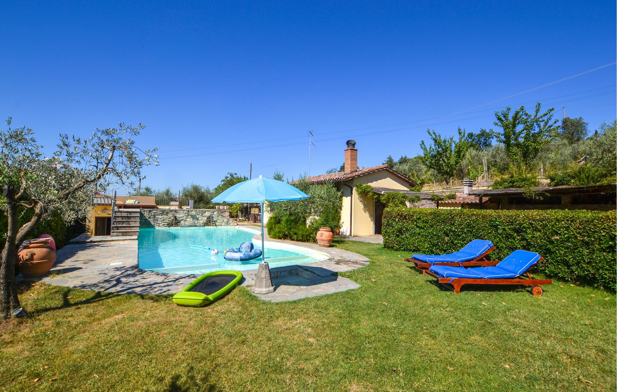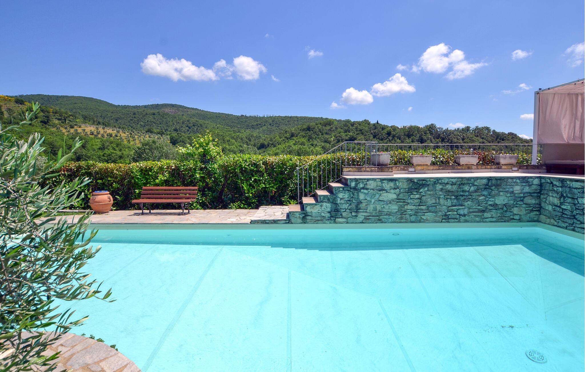 Wenn Sie sich in Ihrem Italien-Urlaub gerne erholen und auch viele schöne Ausflüge machen möchten, ist diese Ferienwohnung eine Empfehlung wert. Ihre Wohnung in Arezzo in der östlichen Toskana liegt eingebettet in eine grüne Hügellandschaft und bietet einen wundervollen Blick auf die umliegende Natur. Morgens fängt Ihr Tag erfrischend mit einem Bad im Pool an. Anschließend wartet das Frühstück in Ihrer Ferienwohnung auf Sie. Die einladende Einrichtung der Wohnung lädt zum Verweilen und Entspannen ein. Ihre Küche steht zum Zubereiten kulinarischer Leckereien bereit.