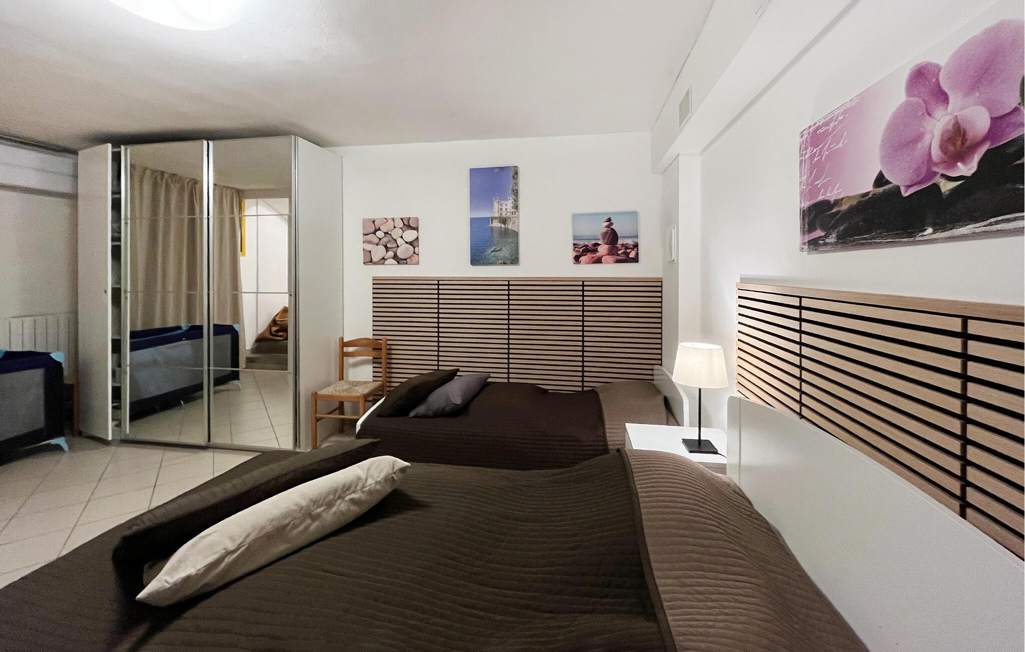 Schlafzimmer (nr. 3) - 1 Schlafmöglichkeit. (Einzelbett(en)). 2 Schlafmöglichkeiten. (Doppelbett(en)).