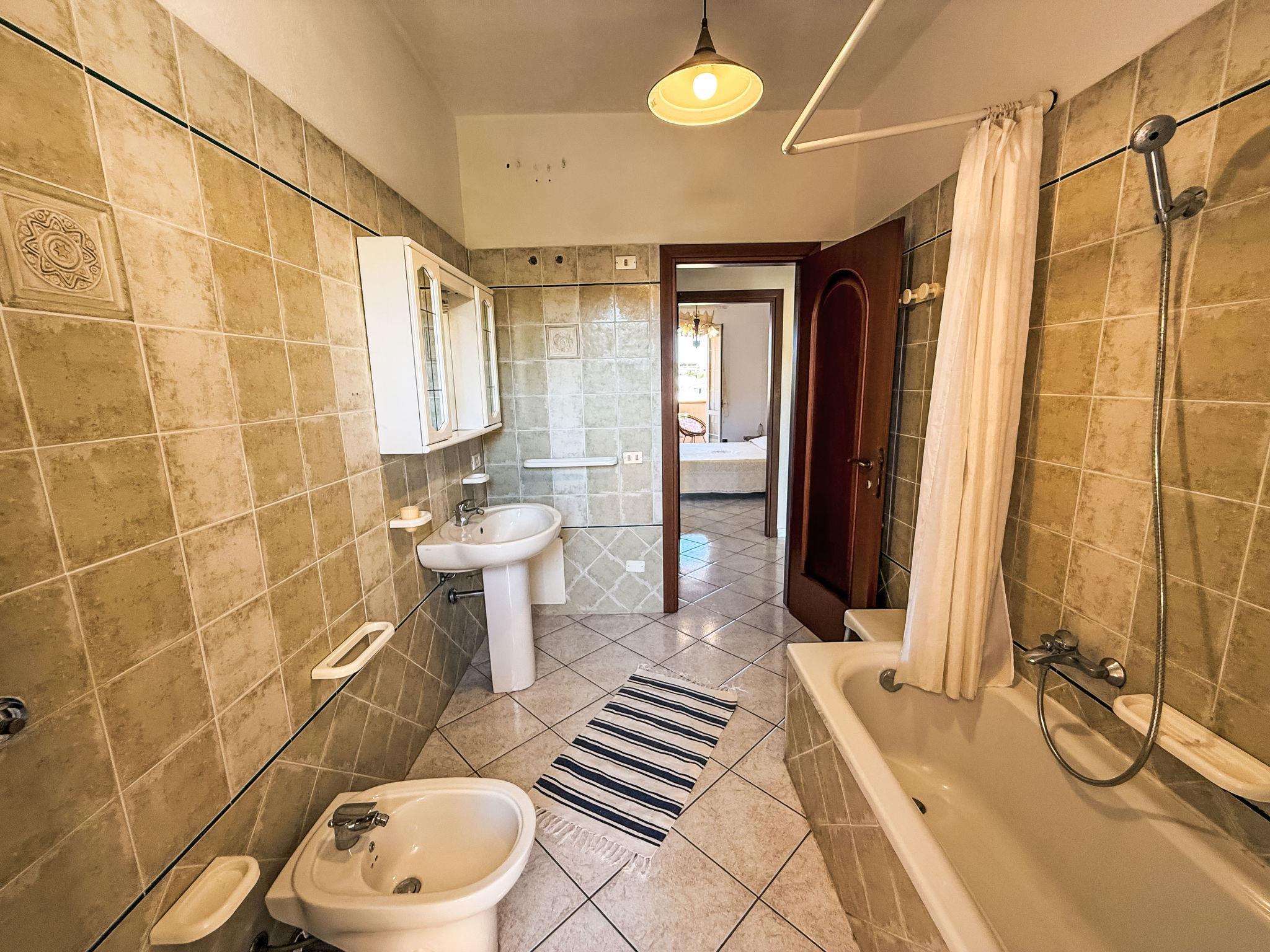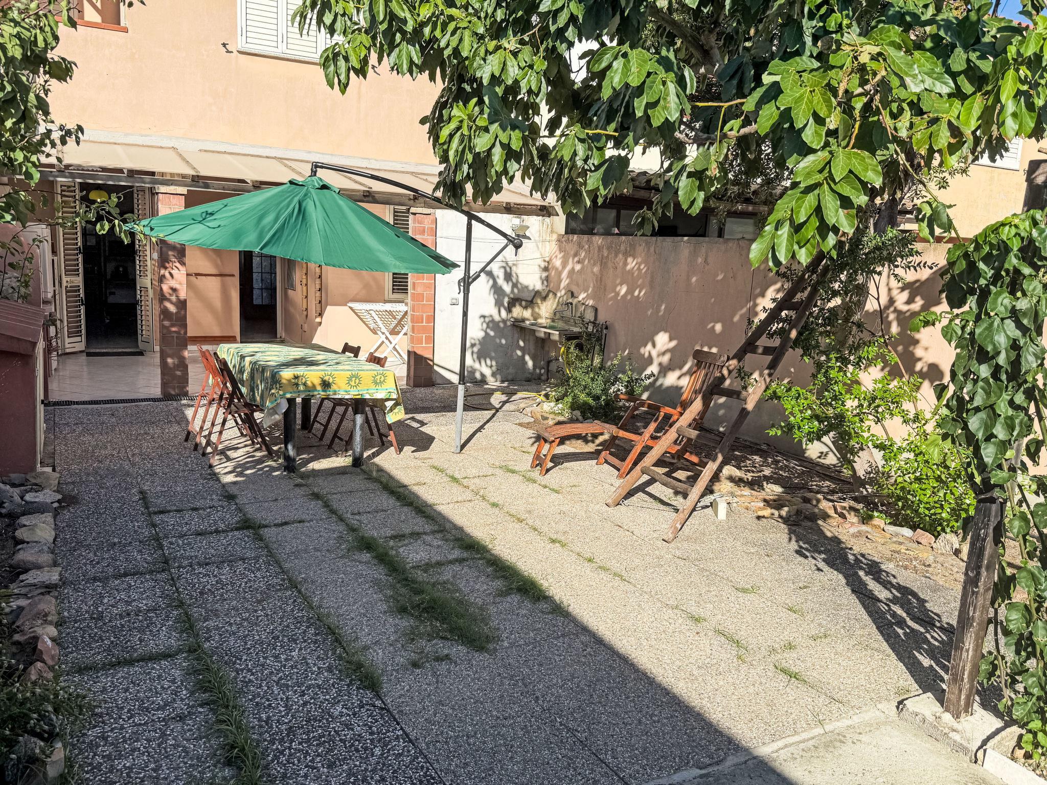 "Is Argiolas", 5-Zimmer-Reihenhaus 140 m2 auf 2 Stockwerken. Komfortabel und gemütlich eingerichtet: Wohn-/Esszimmer mit Esstisch, TV und Klimaanlage. Ausgang zum Gartensitzplatz. Küche (Backofen, Geschirrspüler, 4 Induktionskochplatten, Toaster, Wasserkocher, Mikrowelle, elektrische Kaffeemaschine). Dusche/Bidet/WC. Heizung nicht in allen Räumen. Obergeschoss: 1 Doppelzimmer mit TV und Klimaanlage. 1 Zimmer mit 2 Betten. 1 Doppelzimmer mit TV. Bad/Bidet/WC. Klimaanlage. Heizung nicht in allen Räumen. Grosser Balkon 6 m2, kleiner Balkon 2 m2. Gartengrill. Sicht auf die Ortschaft. Zur Verfügung: Waschmaschine, Bügeleisen, Kinderhochstuhl, Babybett (extra), Haartrockner. Parkplatz (2 Autos). Bitte beachten: Rauchmelder, Feuerlöscher. IT111105C2000S6701