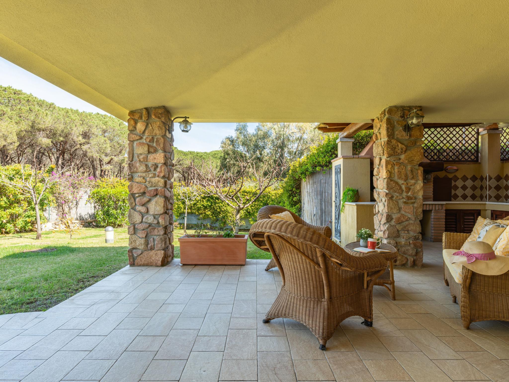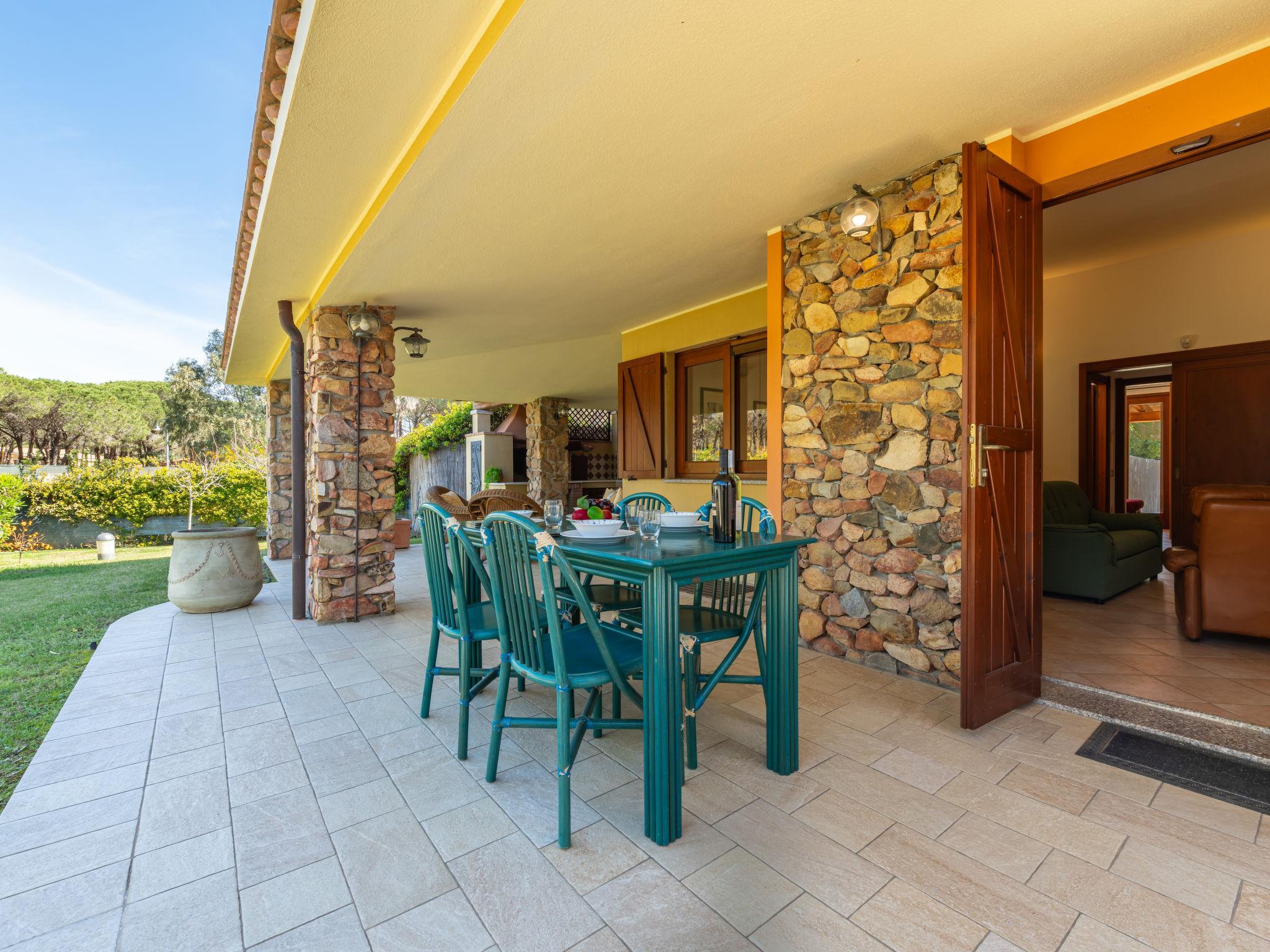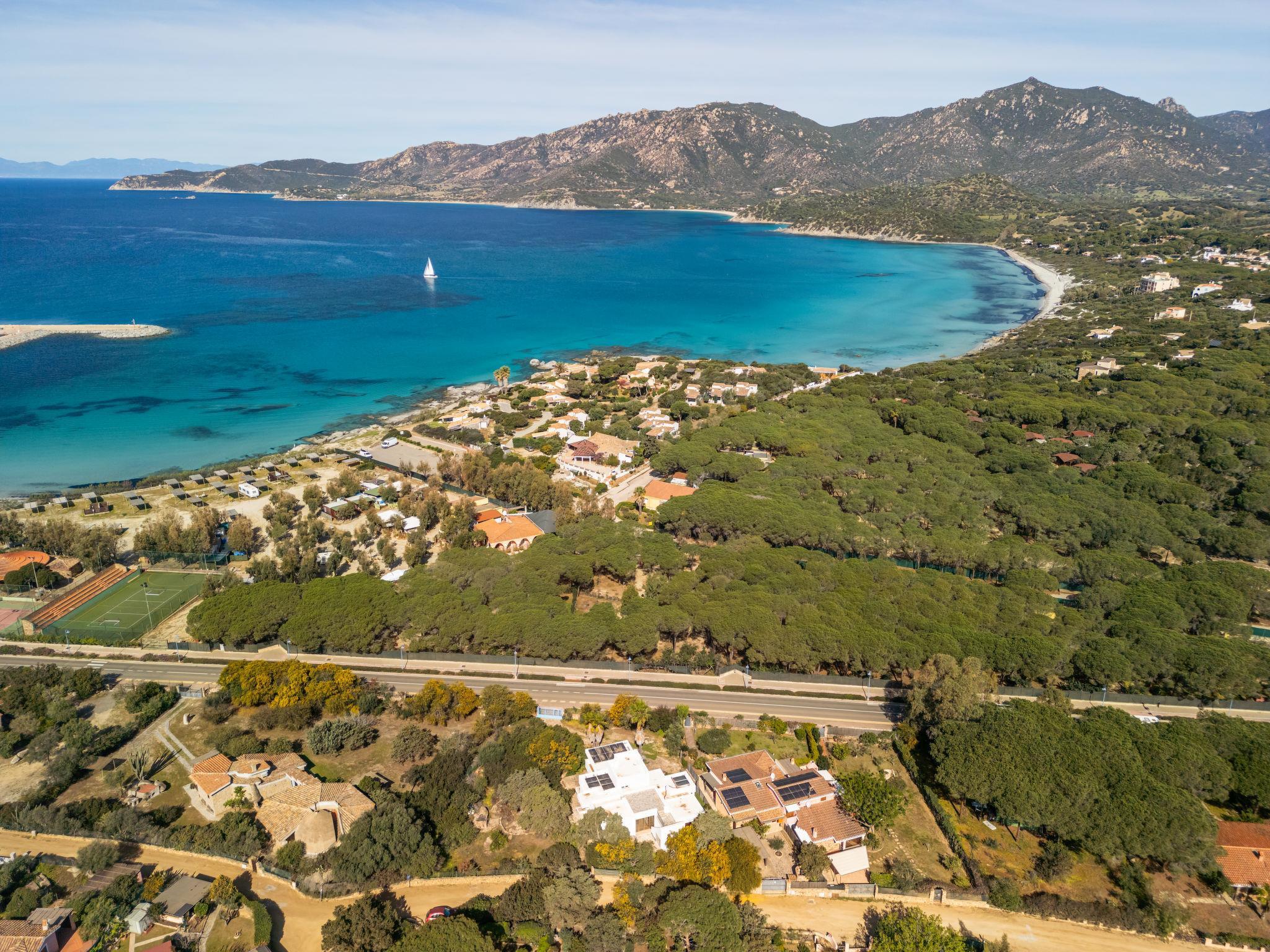 Schöne Villa "Domus Ema", umgeben von Bäumen. Am Ortsrand, 1 km vom Zentrum von Villasimius, ruhige, sonnige Lage, 200 m vom Meer, 200 m vom Strand, im Grünen. Zur Mitbenutzung: schöner Garten mit Blumen und Bäumen. Zur Alleinbenutzung: Aussendusche, Terrasse, Grillhaus. Zufahrt (300 m Naturweg). Parkplatz beim Haus. Einkaufsgeschäft 200 m, Supermarkt, Restaurant, Bar, Bushaltestelle "via Roma La Lanterna" 2 km, Bahnstation "Cagliari" 60 km, Fähre "Cagliari" 60 km, Sandstrand "Spiaggia Del Riso" 200 m. Sporthafen 1 km, Jacht-Hafen 1 km, Golfplatz (18 Loch) 1 km. Nahe gelegene Sehenswürdigkeiten: Cagliari 55 km, Costa Rei 15 km. Bitte beachten: Fahrzeug empfohlen. Tiere in der Umgebung.