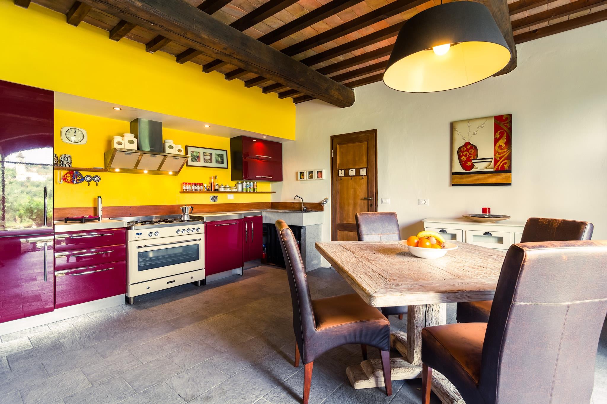 Eingebettet in die Hügel von Vinci bietet diese haustierfreundliche Villa einen ruhigen Rückzugsort nur 5 km vom Geburtsort Leonardo da Vincis entfernt. Sie ist ideal für Familien oder Gruppen und ein idealer Ausgangspunkt, um das Museo Leonardiano, das Elternhaus des Künstlers in Anchiano, sowie die Weinberge und Olivenhaine zu erkunden, die sein Genie inspirierten. Tagesausflüge nach Florenz, Montecatini Terme und Pistoia bieten reiche kulturelle Erlebnisse und den Charme der Renaissance. Die Villa verfügt über ein geräumiges Wohnzimmer mit Kamin, Sat-TV und einem Doppelschlafsofa sowie eine große Küche mit modernen Geräten. Mit vier Schlafzimmern und drei Badezimmern im Haupthaus sowie einem Gästehaus mit eigener Küche, Schlafzimmer und Badezimmer bietet das Haus bequem Platz für mehrere Gäste. Zur Ausstattung gehören Klimaanlage, Waschmaschine, private Terrasse und ein 12 x 4 m großer Pool (geöffnet von Juni bis Oktober). Gäste können Tischtennis, Tischfußball, Fahrräder und einen Grillplatz für Spaß im Freien nutzen. Umgeben von sanften toskanischen Hügeln bietet die Gegend nur 5 km entfernt hervorragende Restaurants. Genießen Sie lokale Spezialitäten im La Burra di Vinci, im Il Ristoro del Museo oder im Agriturismo Il Piastrino, die alle für ihre herzliche Gastfreundschaft und regionale Küche bekannt sind. Ob Sie durch die Weinberge radeln oder am Pool entspannen – diese Villa verspricht einen unvergesslichen italienischen Urlaub.