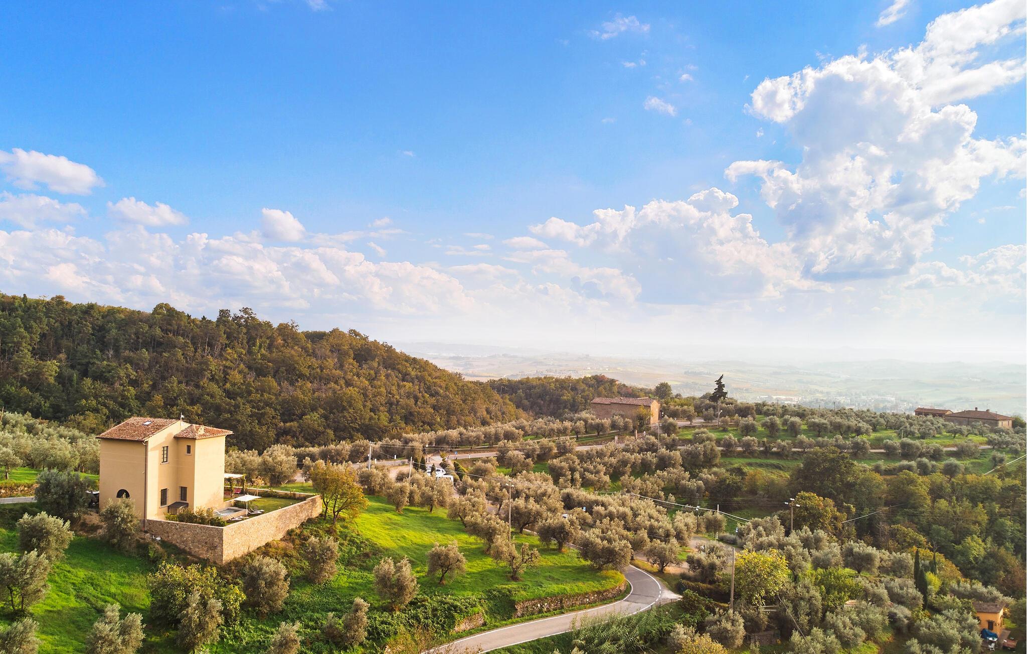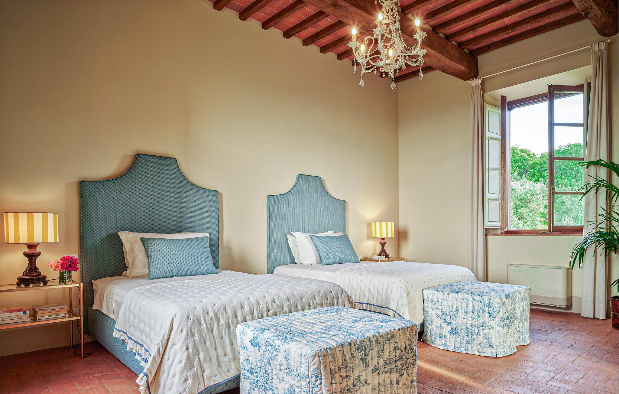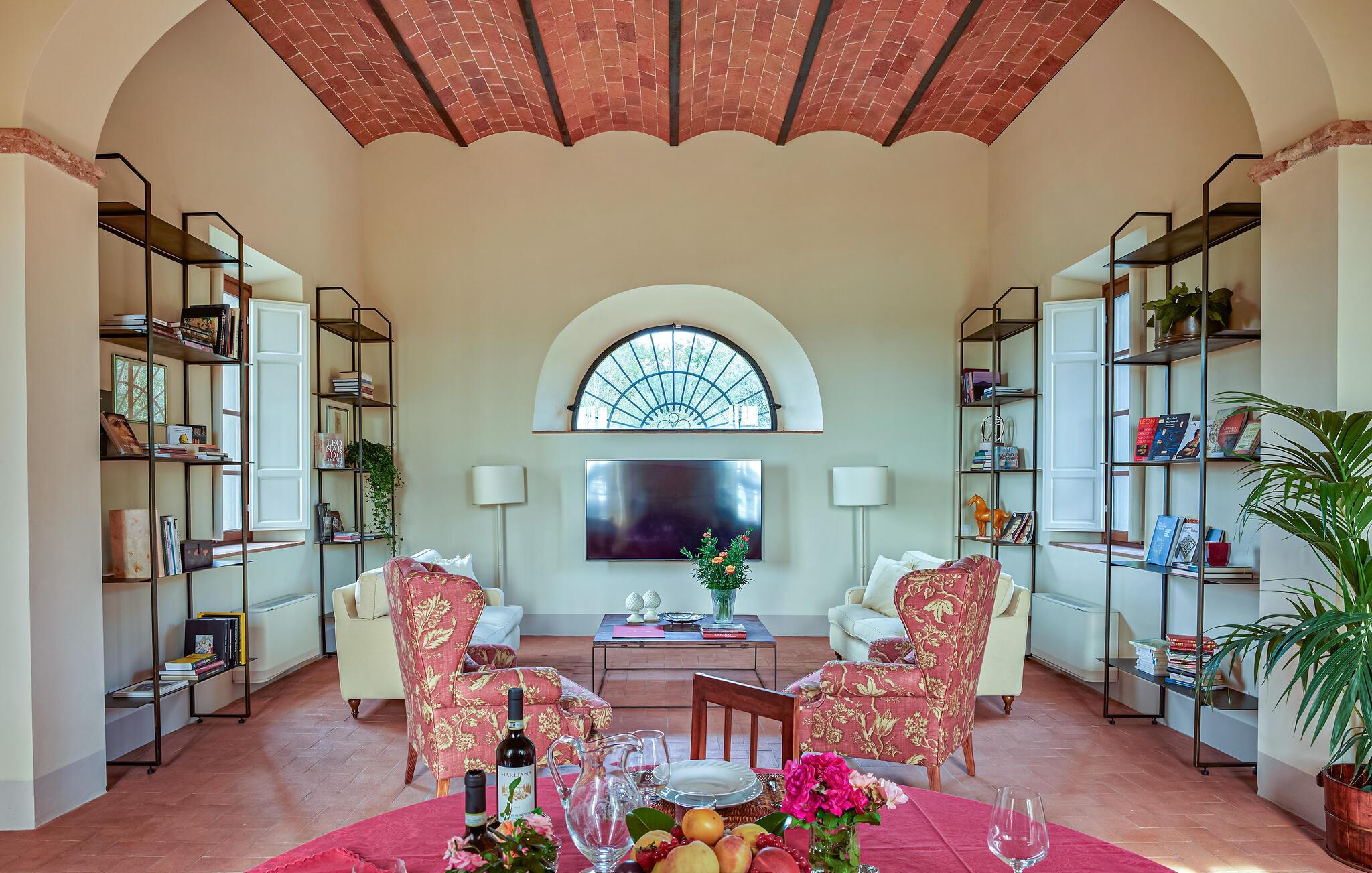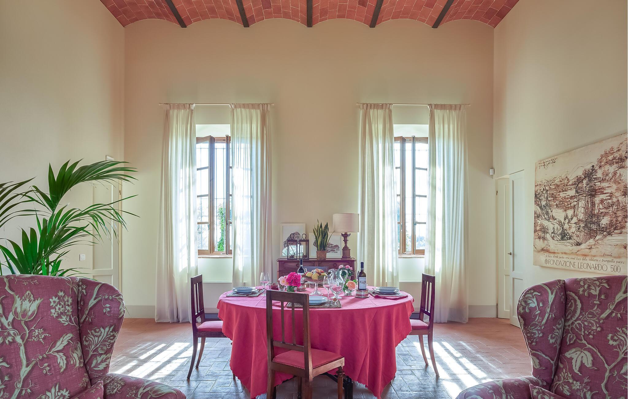 Dieses stilvolle Anwesen vereint toskanischen Charme mit modernem Komfort. Hohe Decken, große Fenster und eine geschmackvolle Einrichtung mit antiken Möbeln schaffen ein harmonisches Ambiente. Bereiten Sie in der offenen Küche italienische Spezialitäten zu und nehmen Sie im prachtvollen Essbereich Platz. Schmökern Sie in der hauseigenen Bibliothek nach einem interessanten Buch und machen Sie es sich in einem der bequemen Lesesessel gemütlich.