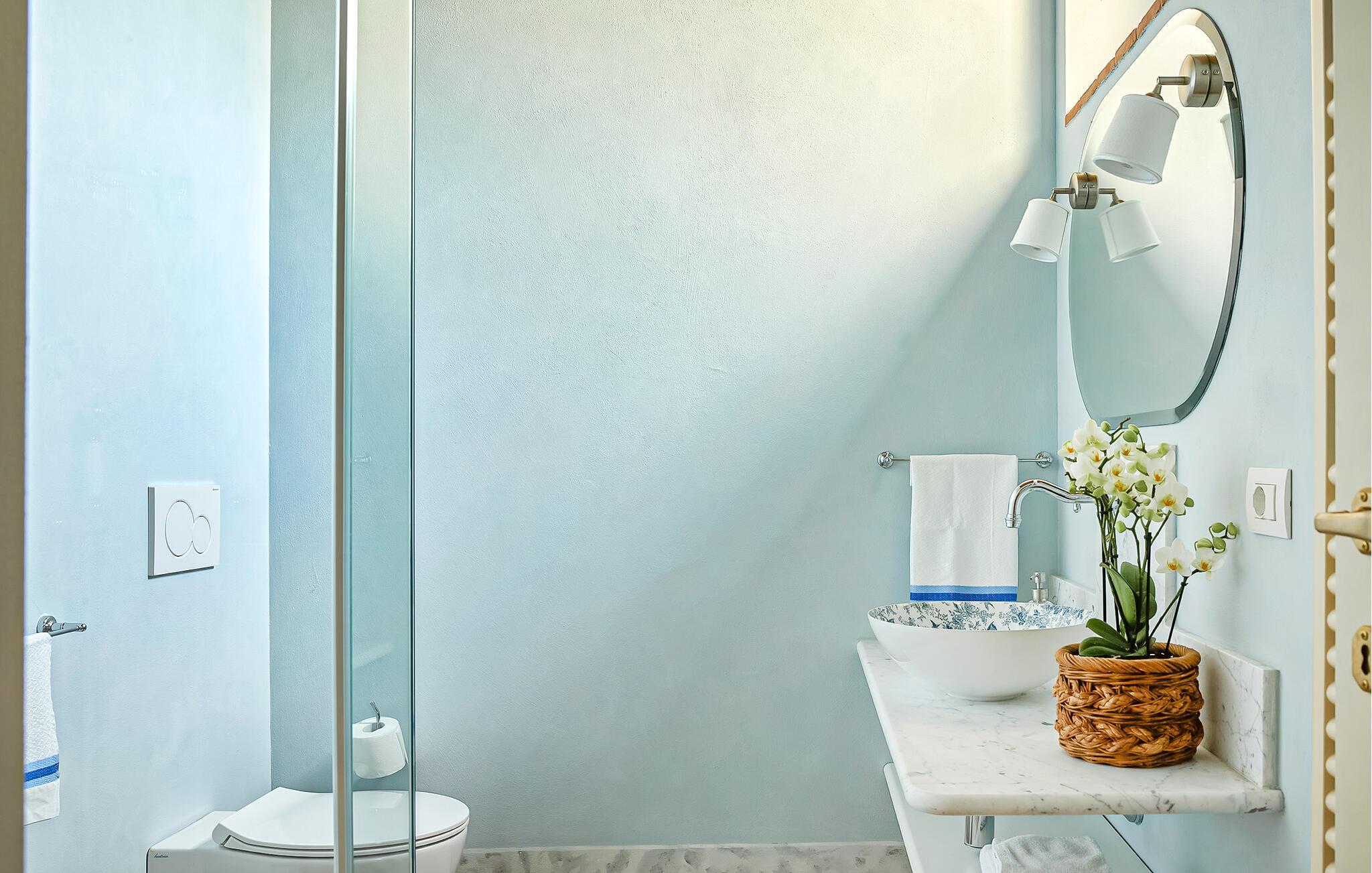 Badezimmer (nr. 1) - WC. Warmes und kaltes Wasser. Dusche