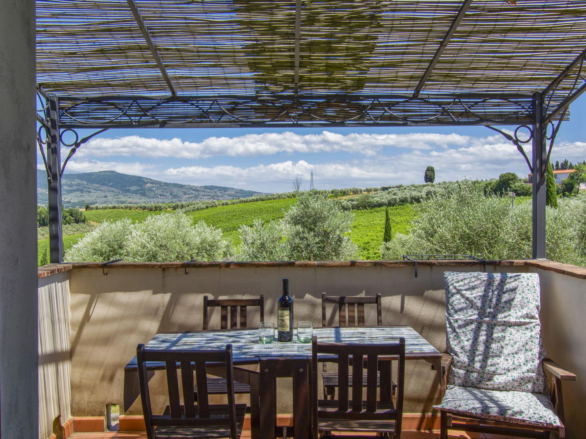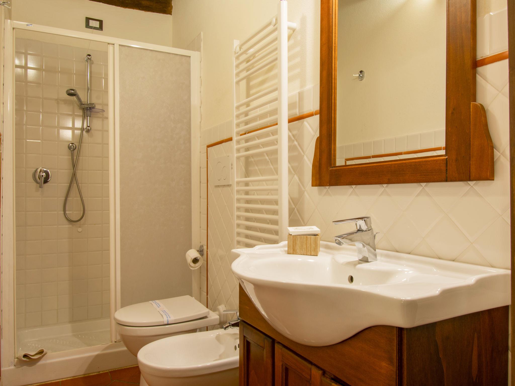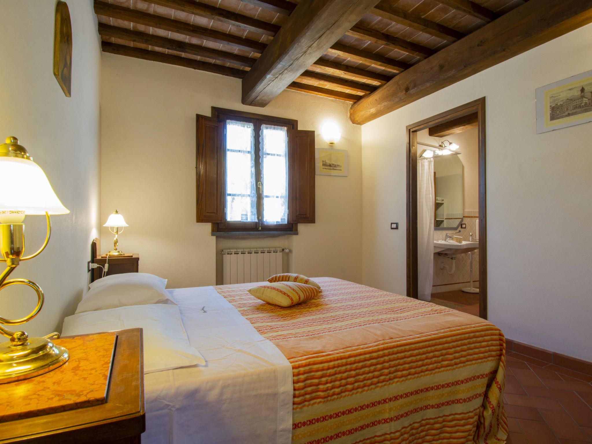 6-Zimmer-Haus 150 m2 auf 2 Stockwerken, im Erdgeschoss. Renoviert, geschmackvoll eingerichtet: 1 Doppelzimmer mit Dusche/WC. 1 Zimmer mit 1 franz. Bett (1 x 120 cm), Dusche/WC. Wohnküche (4 Kochplatten, Backofen, Geschirrspüler, elektrische Kaffeemaschine) mit Esstisch, 1 Diwanbett und Sat-TV. Ausgang zum Gartensitzplatz. Heizung, Klimaanlage (extra). Obergeschoss: (Aussentreppe) Wohn-/Esszimmer mit Sat-TV. Ausgang zum Balkon. 1 Doppelzimmer mit Dusche/WC. 1 Zimmer mit 2 Betten und Dusche/WC. (4 Kochplatten, Backofen, Geschirrspüler, elektrische Kaffeemaschine) mit Esstisch. Natursteinboden. Balkon, Terrasse, Gartensitzplatz, Garten. Terrassenmöbel, Liegestühle. Herrliche Panoramasicht auf das Schwimmbad und die Landschaft. Zur Verfügung: Kinderhochstuhl, Babybett bis 2 Jahre. Maximal 1 Haustier/Hund erlaubt. Zweibettzimmer/Bad im Erdgeschoß ist behindertenfreundlich ausgestattet. Die erste Etage ist nur ueber die Aussentreppe erreichbar. IT048011B538BVZT5N