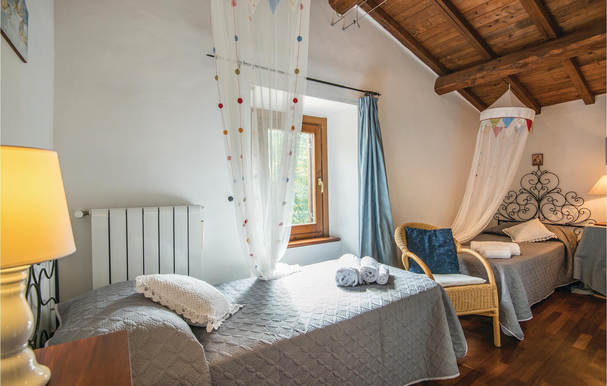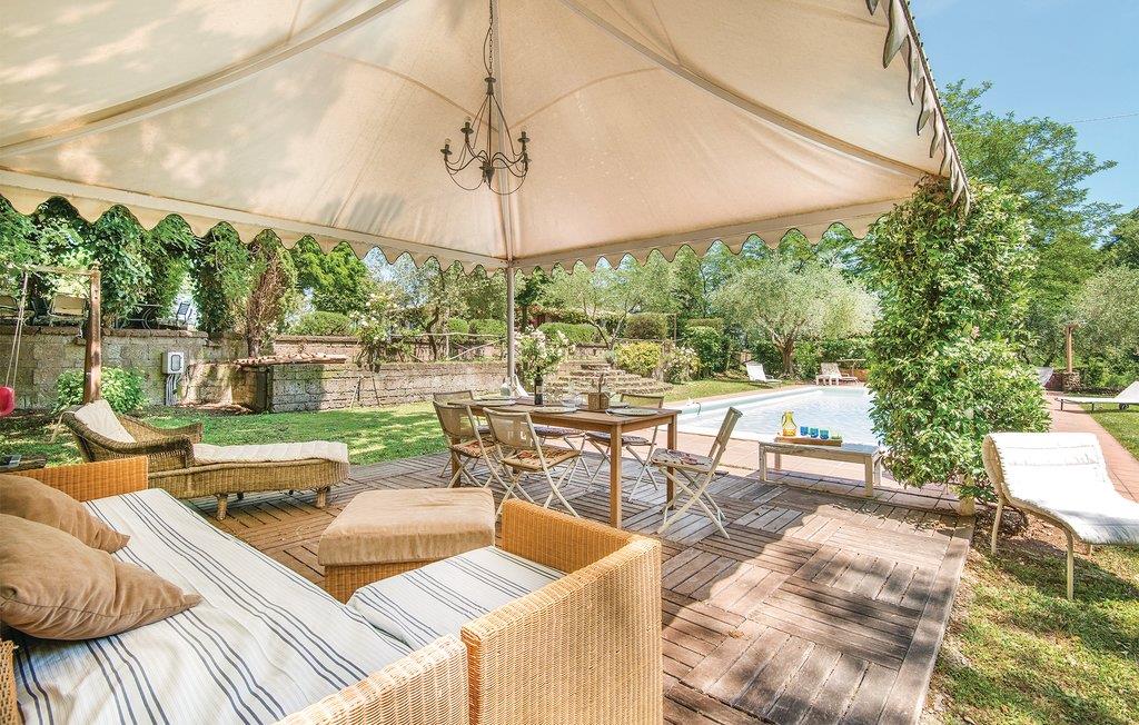 Dieses gepflegte und geschmackvoll eingerichtete Landhaus entstand dank der sorgfältigen Restaurierung einer Jesuiteneinsiedelei. Das Ferienhaus liegt im Grünen 7 km von Viterbo entfernt und verfügt über eine dominierende Lage mit Blick über das darunterliegende Tal. Das Anwesen ist ideal, um die Ruhe und die landschaftliche Vielfalt der schönen Region Tuscia zu genießen. Eine je nach Saison blumengeschmückte Veranda lädt zum Speisen im Freien ein, während der Whirlpool vor der Villa entspannte Momente verspricht. Darüber hinaus machen der mit Pavillon ausgestattete Pool in Panoramalage und der großzügige Garten (3000 m²) mit Liegewiese aus diesem Anwesen ein idyllisches Feriendomizil. Hunde sind willkommen, beachten Sie aber, dass das Feriendomizil nicht eingezäunt ist. Der letzte Kilometer der Zufahrtsstraße ist eine Schotterstraße, die für Sportwagen oder Busse ungeeignet ist. Entfernungen: Vitorchiano 3 km, Viterbo mit den "Terme dei Papi“ 7 km, Tuscania 22 km und die etruskischen Orte Tarquinia und Cerveteri 48 km. Im Umkreis von 22 km befinden sich die Seen Bolsena, Vico und Bracciano.