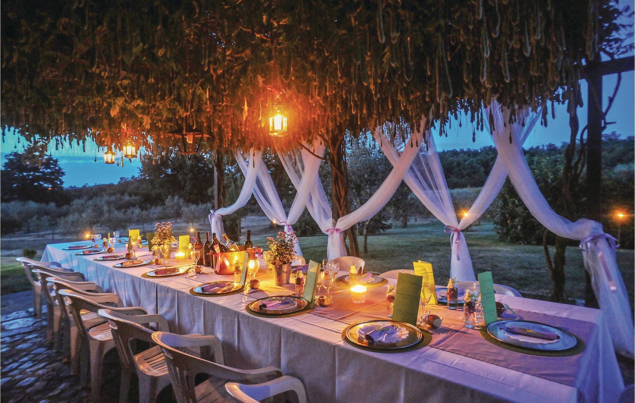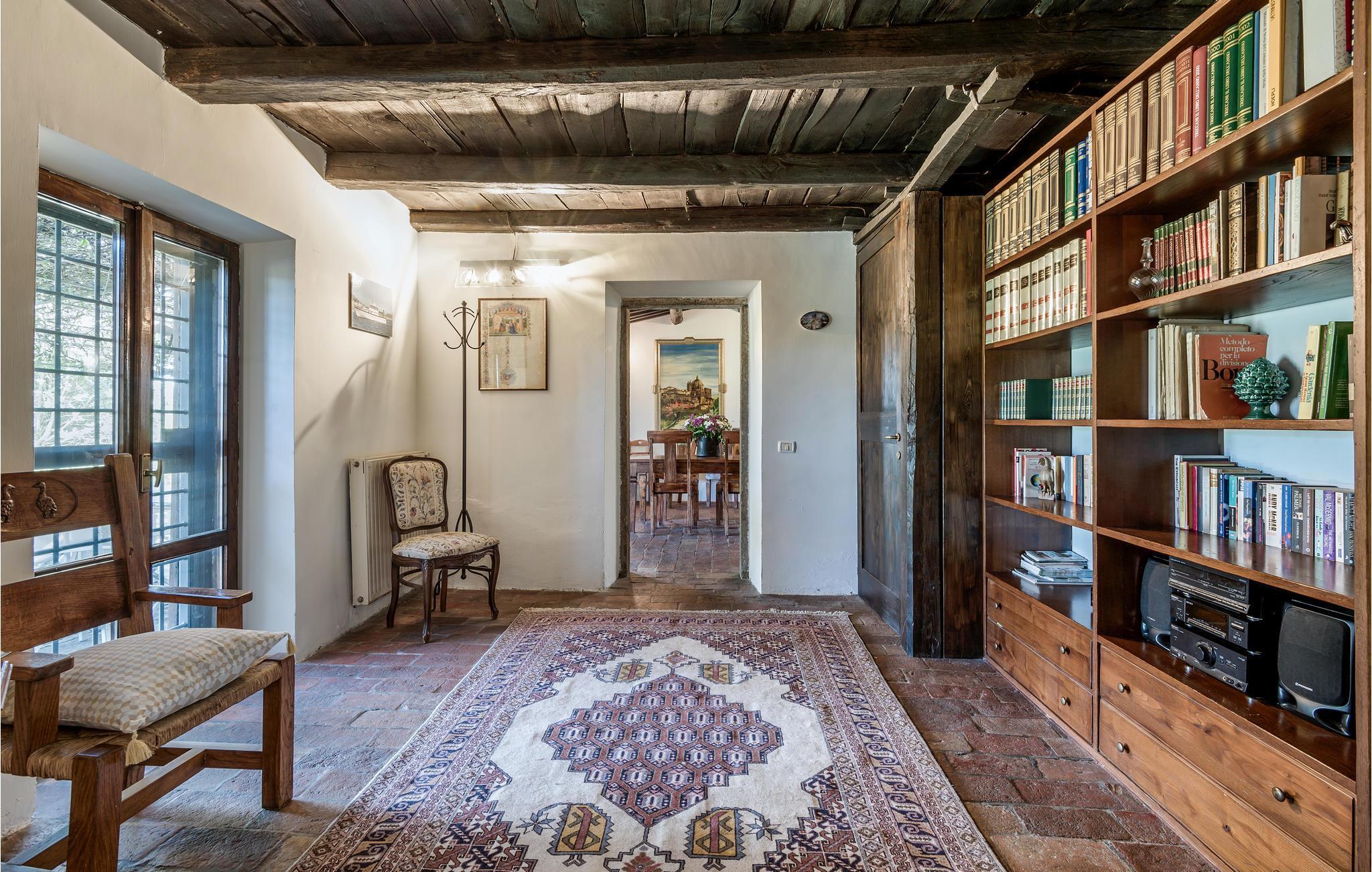 Ihr Feriendomizil liegt auf einem Hügel, umgeben von Rasenflächen, einem Obstgarten und Olivenhain. Sein Garten ist komplett eingezäunt und der schöne Pool verfügt über ein separates Kinderbecken (4x4 m, max. Tiefe 1,20 m). Auf Wunsch kann man eine etruskische Grabstätte besichtigen. Im Haus finden Sie ein Wohnzimmer mit Klavier, eine Bibliothek mit Zugang zum Garten, ein Esszimmer mit Zugang zum Garten (Laube mit Steintisch und Schilfdach); Laube mit großem Tisch und Barbecue auf der Rückseite des Hauses, ideal für Mahlzeiten im Freien. Im ersten Stock besteht eine Suite aus zwei miteinander verbundenen Zimmern, eines mit einem Doppelbett, das zweite mit einem Dreibettzimmer.