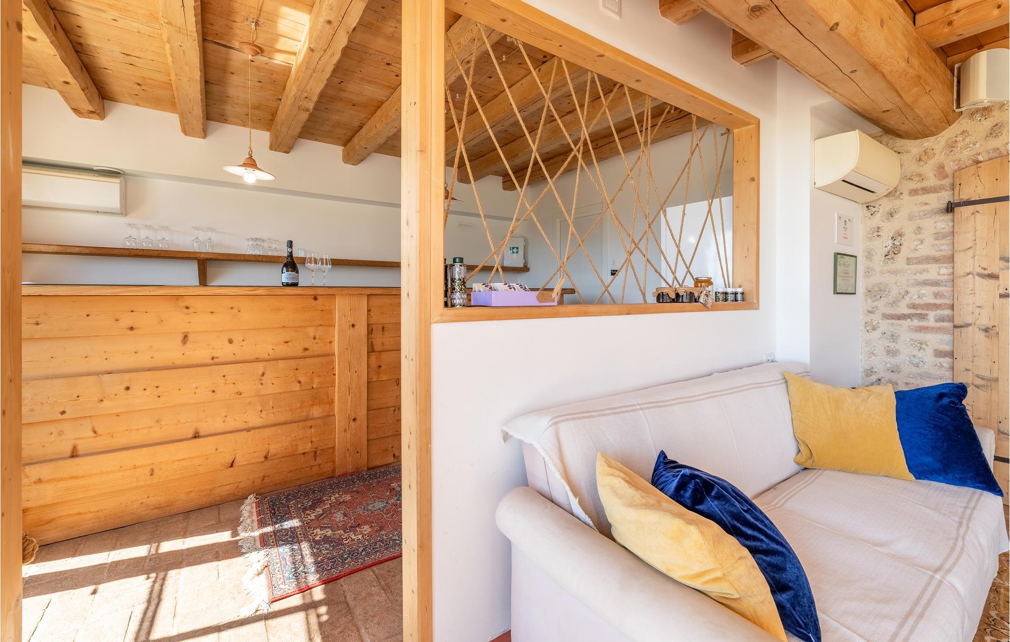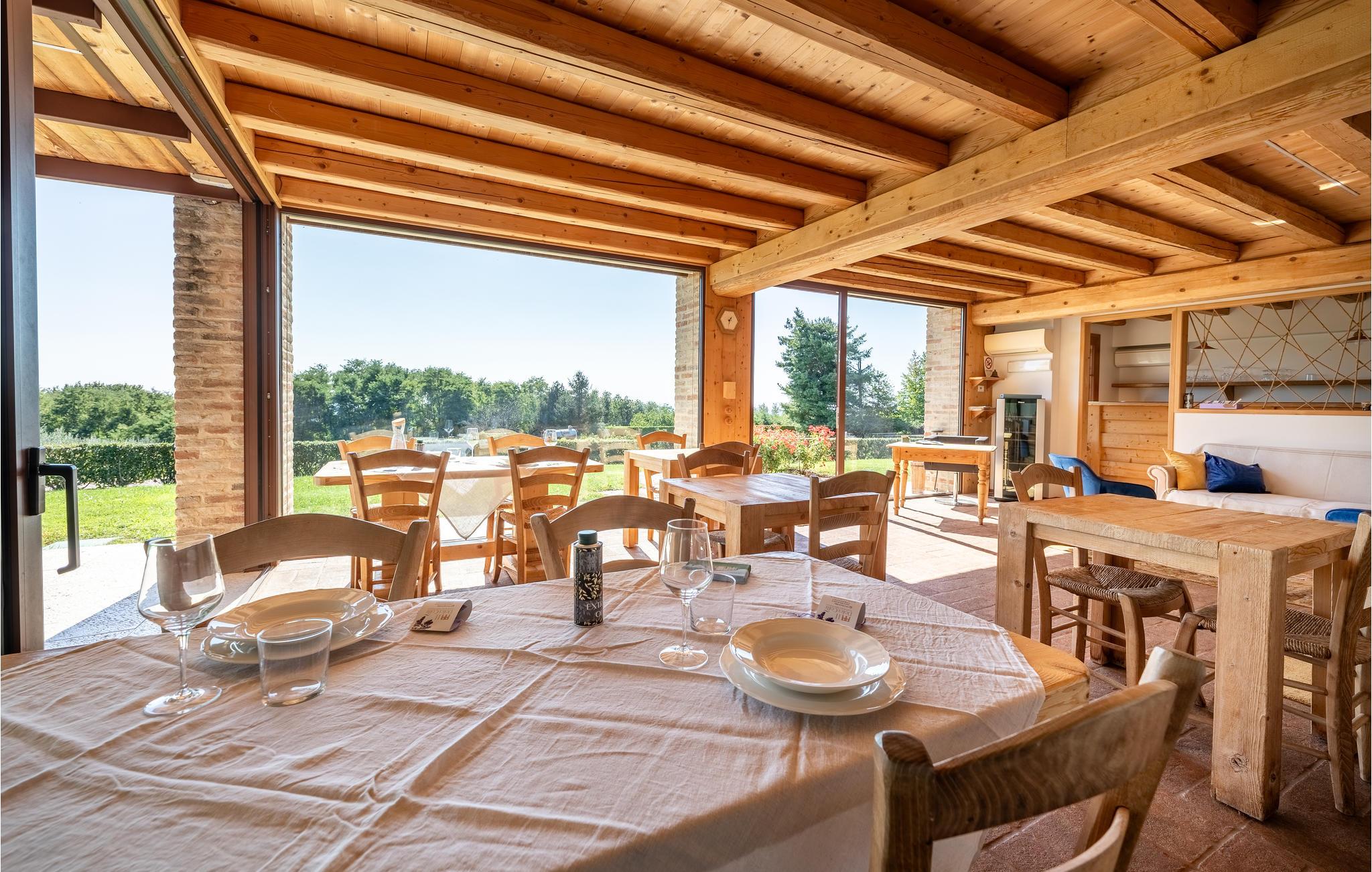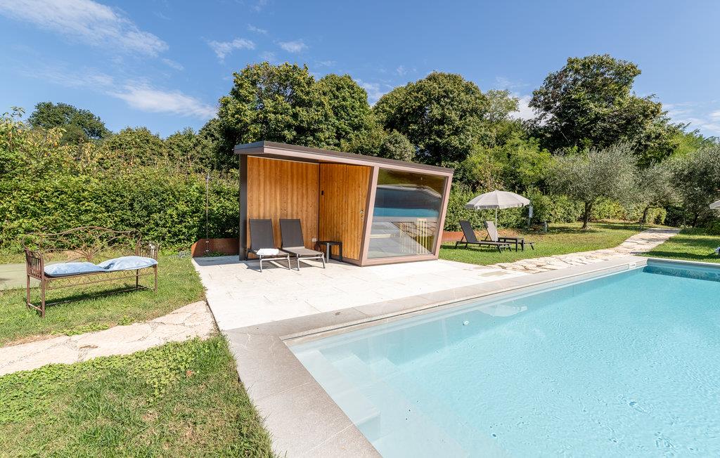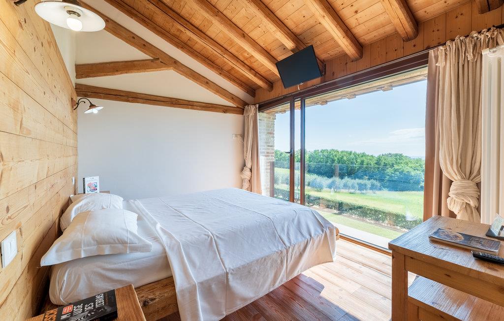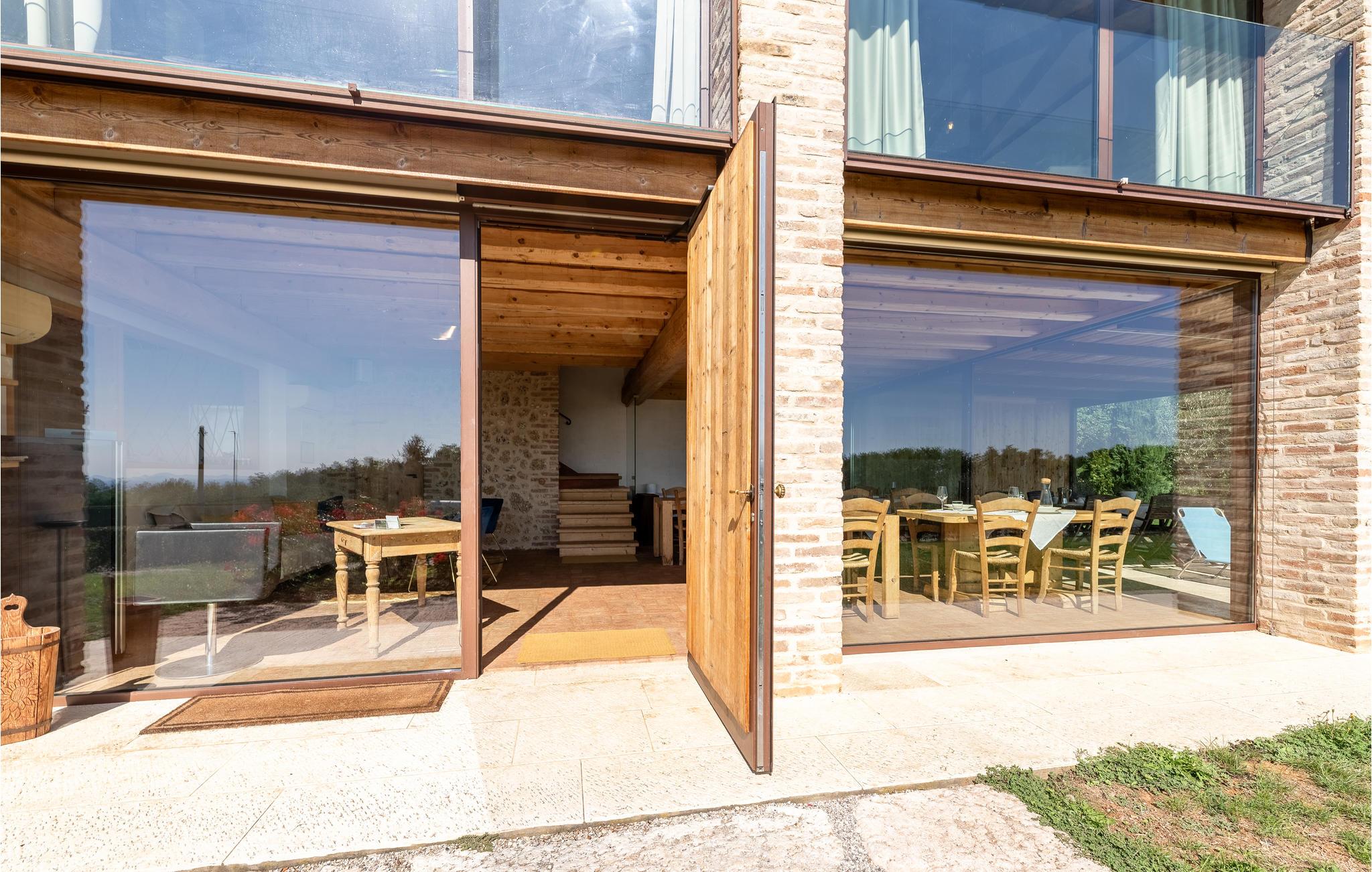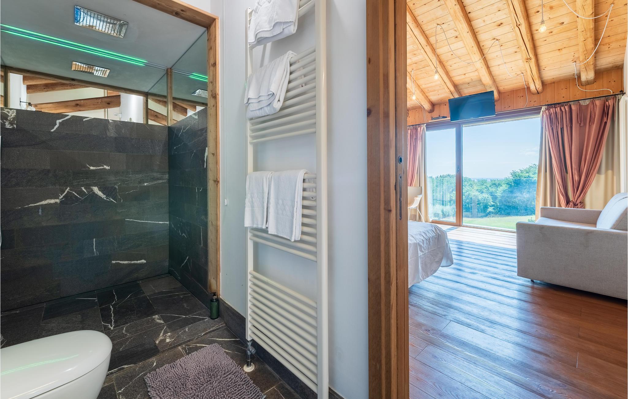 Verbringen Sie einen unvergesslichen Urlaub in diesem exklusiven Ferienhaus in den malerischen Hügeln von Montello, nur unweit von Montebelluna entfernt. Umgeben von Olivenhainen, Weinbergen und grünen Wäldern genießen Sie hier absolute Privatsphäre und eine atemberaubende Aussicht. Die Villa erstreckt sich über zwei Etagen und bietet modernen Komfort kombiniert mit natürlichen Materialien wie Holz und Stein. Der helle Wohnbereich im Erdgeschoss mit großen Panoramafenstern lädt zum Verweilen ein.