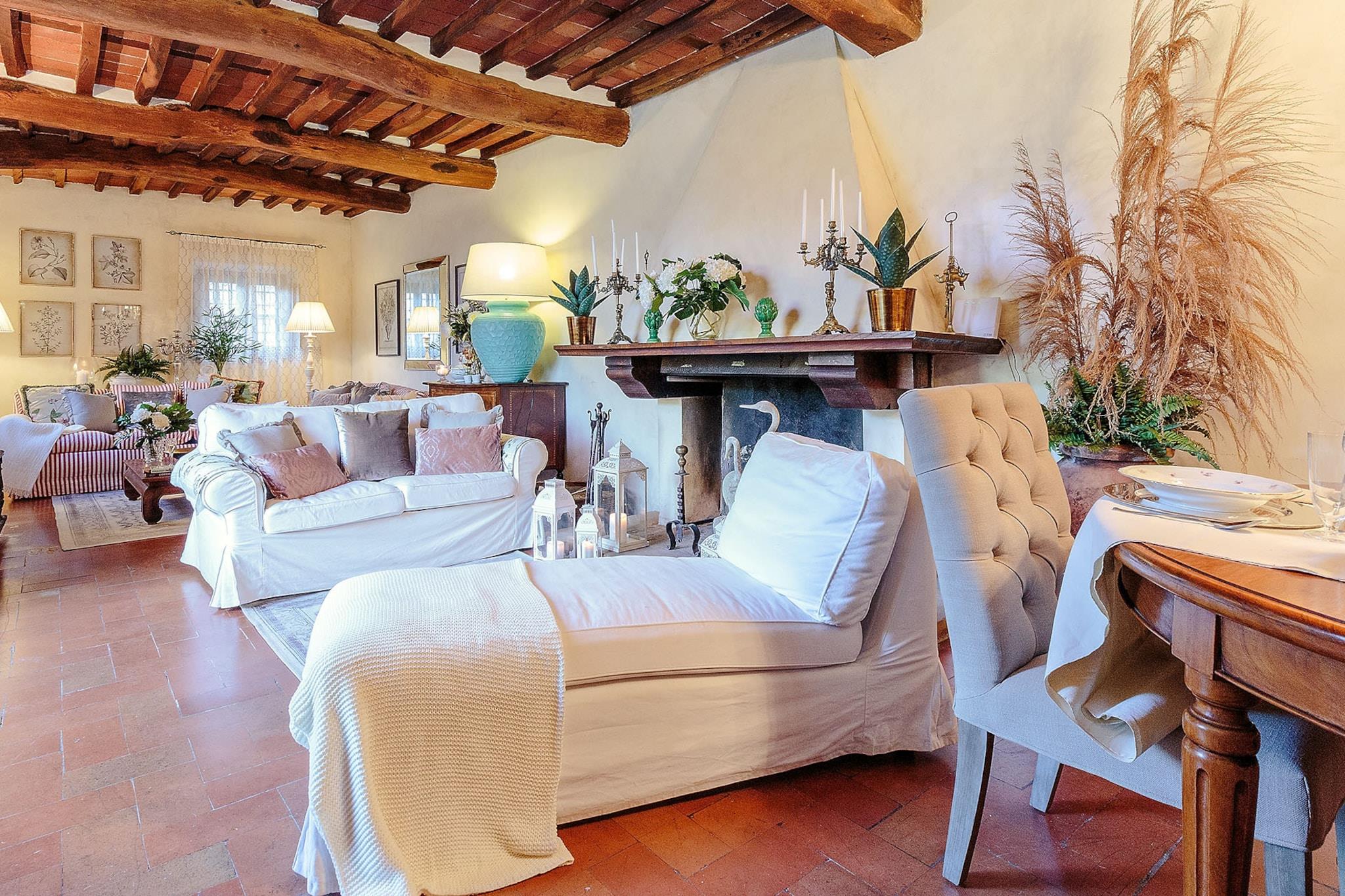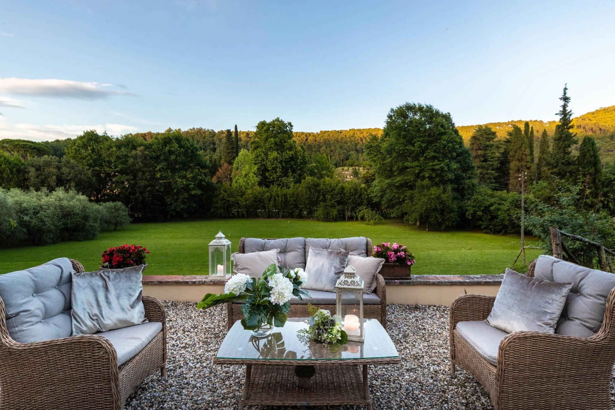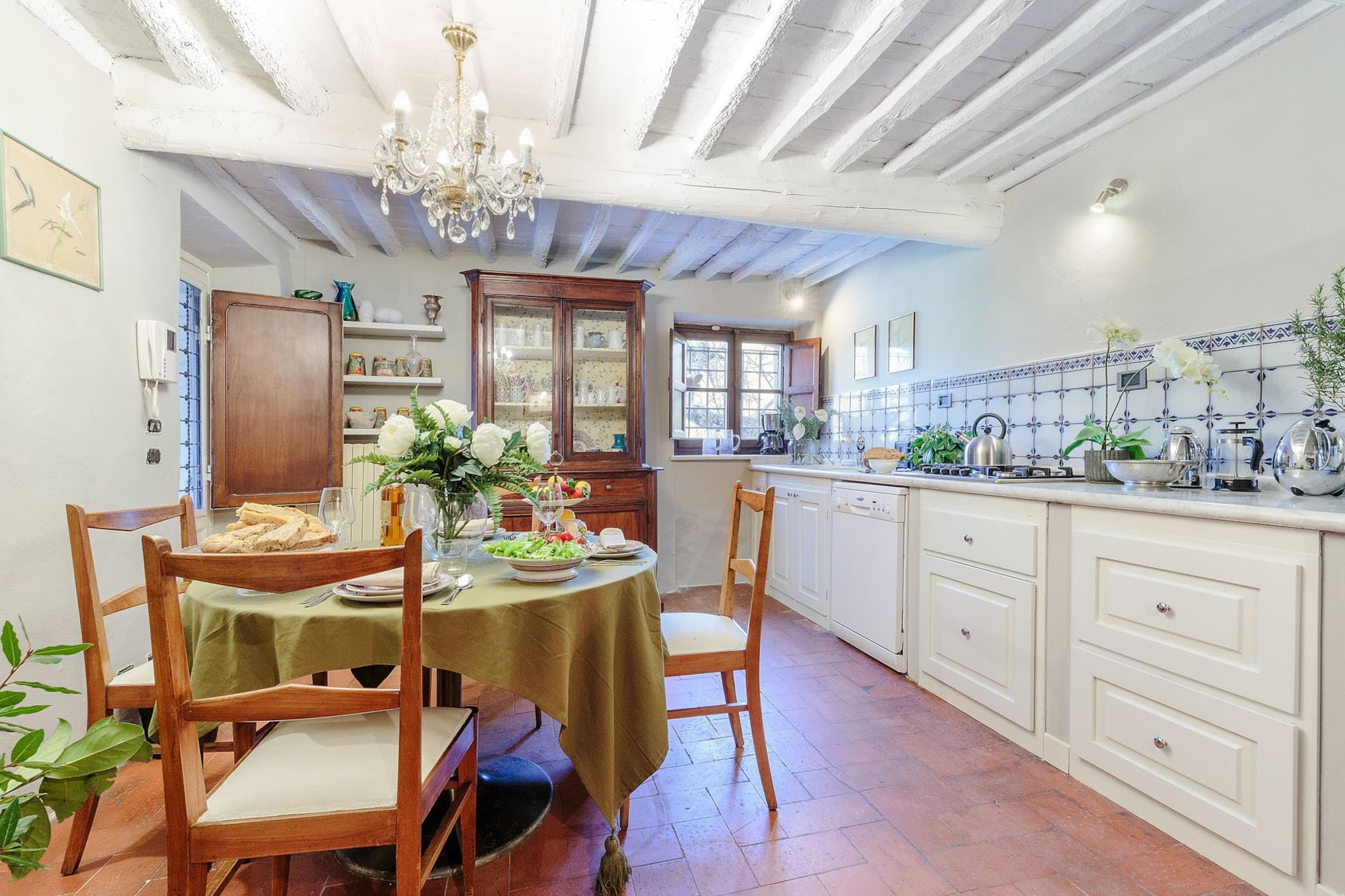 Diese Villa bietet atemberaubende Außenwohnbereiche und ein elegantes Interieur und ist somit das ideale Urlaubsziel in den malerischen Hügeln der Toskana, nur fünf Autominuten von Luccas Stadtzentrum entfernt. Gäste können in üppigen Gärten entspannen, die malerische Region Colline Lucchesi erkunden und lokale Weine und Käsesorten in den nahegelegenen Geschäften probieren. Das kürzlich sorgfältig restaurierte historische Haus besticht durch sein elegantes Dekor und vier Schlafzimmer für bis zu acht Gäste. Umgeben von weitläufigen Gärten voller Rosmarin, Wildblumen und Gemüse lädt das Anwesen zum Entspannen und Genießen der duftenden toskanischen Sonne ein. Genießen Sie gemütliche Nachmittage auf der Terrasse oder unter der Pergola und servieren Sie bei Einbruch der Dunkelheit Aperitifs in einem der Essbereiche im Freien, während der Grill heizt. Im Inneren bewahrt die Villa ihre Wärme und ihren Charakter mit traditionellen Elementen wie Cotto-Böden, Balkendecken und Steinkaminen, ergänzt durch modernen Komfort wie WLAN und eine Dockstation. Die durchdachte Raumaufteilung umfasst Ein großes Wohnzimmer im Erdgeschoss mit Zugang zum Garten, ein Badezimmer mit Dusche und eine voll ausgestattete Küche mit modernen Geräten. Im ersten Stock befinden sich ein zusätzlicher Sitzbereich sowie vier Doppelzimmer und ein Badezimmer. Diese bezaubernde Region bietet zahlreiche Möglichkeiten zur Erkundung, egal ob Sie in Montecarlo lokalen Wein genießen oder mit dem Zug nach Florenz fahren. Pisa ist nur 15 Minuten entfernt und in der Nähe gibt es zahlreiche Restaurants, darunter rustikale Trattorien und das luxuriöse Spa Bagni di Pisa, das nur zehn Minuten entfernt ist. Diese Villa verspricht einen unvergesslichen Aufenthalt in der Toskana. Hinweis: Kurtaxe ist vor Ort zu entrichten.