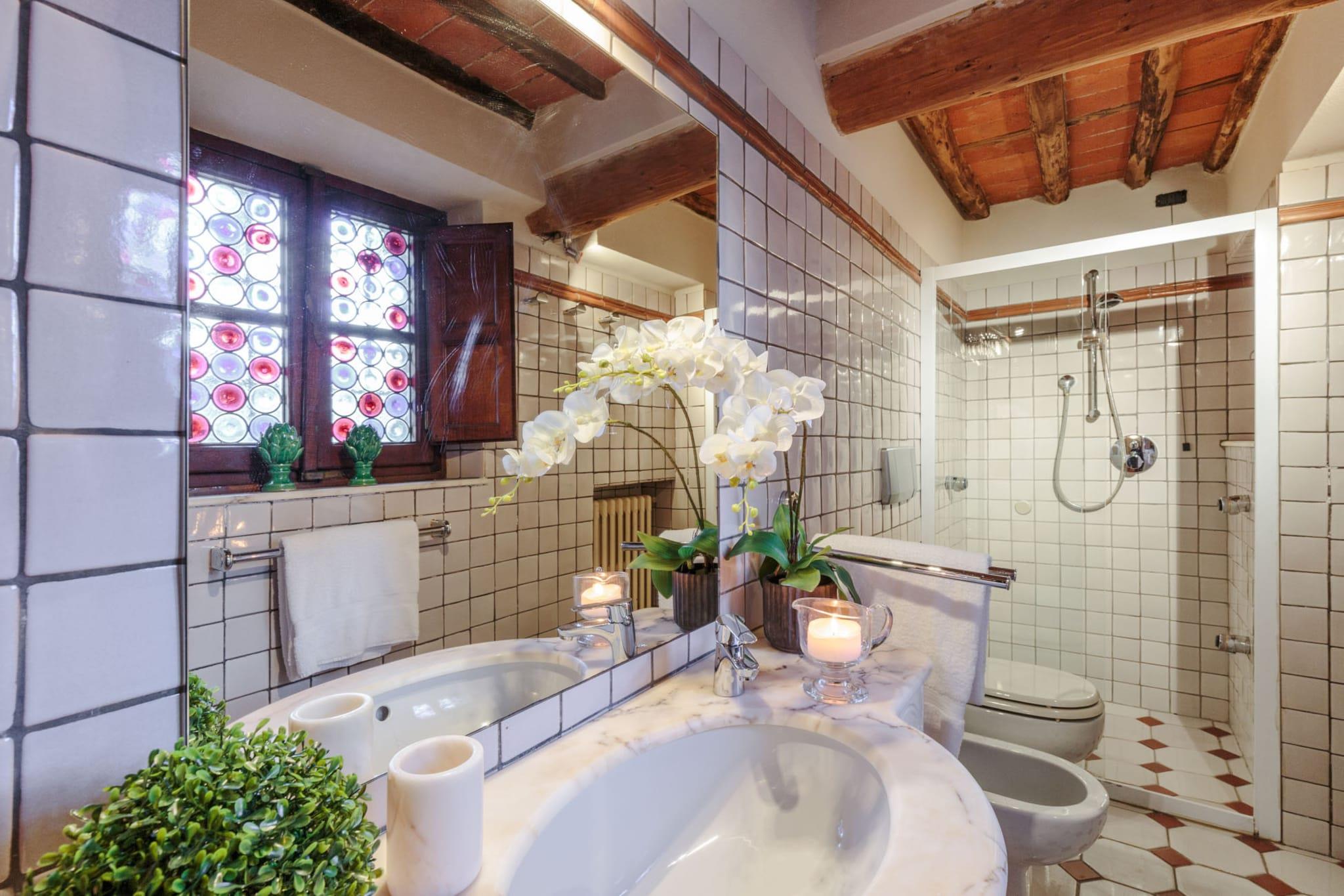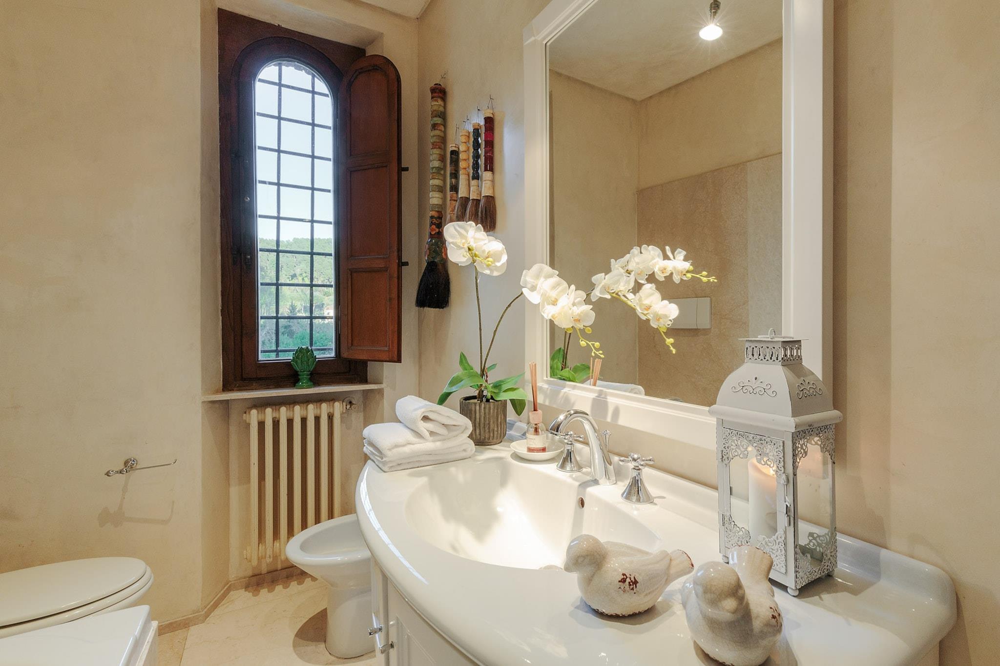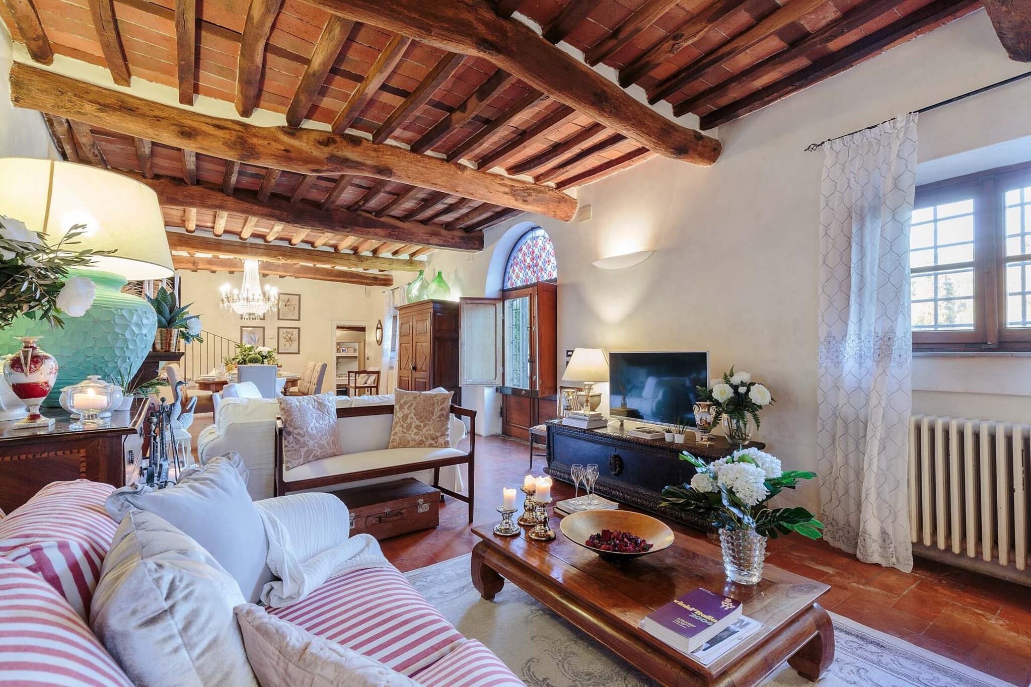 Diese Villa bietet atemberaubende Außenwohnbereiche und ein elegantes Interieur und ist somit das ideale Urlaubsziel in den malerischen Hügeln der Toskana, nur fünf Autominuten von Luccas Stadtzentrum entfernt. Gäste können in üppigen Gärten entspannen, die malerische Region Colline Lucchesi erkunden und lokale Weine und Käsesorten in den nahegelegenen Geschäften probieren. Das kürzlich sorgfältig restaurierte historische Haus besticht durch sein elegantes Dekor und vier Schlafzimmer für bis zu acht Gäste. Umgeben von weitläufigen Gärten voller Rosmarin, Wildblumen und Gemüse lädt das Anwesen zum Entspannen und Genießen der duftenden toskanischen Sonne ein. Genießen Sie gemütliche Nachmittage auf der Terrasse oder unter der Pergola und servieren Sie bei Einbruch der Dunkelheit Aperitifs in einem der Essbereiche im Freien, während der Grill heizt. Im Inneren bewahrt die Villa ihre Wärme und ihren Charakter mit traditionellen Elementen wie Cotto-Böden, Balkendecken und Steinkaminen, ergänzt durch modernen Komfort wie WLAN und eine Dockstation. Die durchdachte Raumaufteilung umfasst Ein großes Wohnzimmer im Erdgeschoss mit Zugang zum Garten, ein Badezimmer mit Dusche und eine voll ausgestattete Küche mit modernen Geräten. Im ersten Stock befinden sich ein zusätzlicher Sitzbereich sowie vier Doppelzimmer und ein Badezimmer. Diese bezaubernde Region bietet zahlreiche Möglichkeiten zur Erkundung, egal ob Sie in Montecarlo lokalen Wein genießen oder mit dem Zug nach Florenz fahren. Pisa ist nur 15 Minuten entfernt und in der Nähe gibt es zahlreiche Restaurants, darunter rustikale Trattorien und das luxuriöse Spa Bagni di Pisa, das nur zehn Minuten entfernt ist. Diese Villa verspricht einen unvergesslichen Aufenthalt in der Toskana. Hinweis: Kurtaxe ist vor Ort zu entrichten.