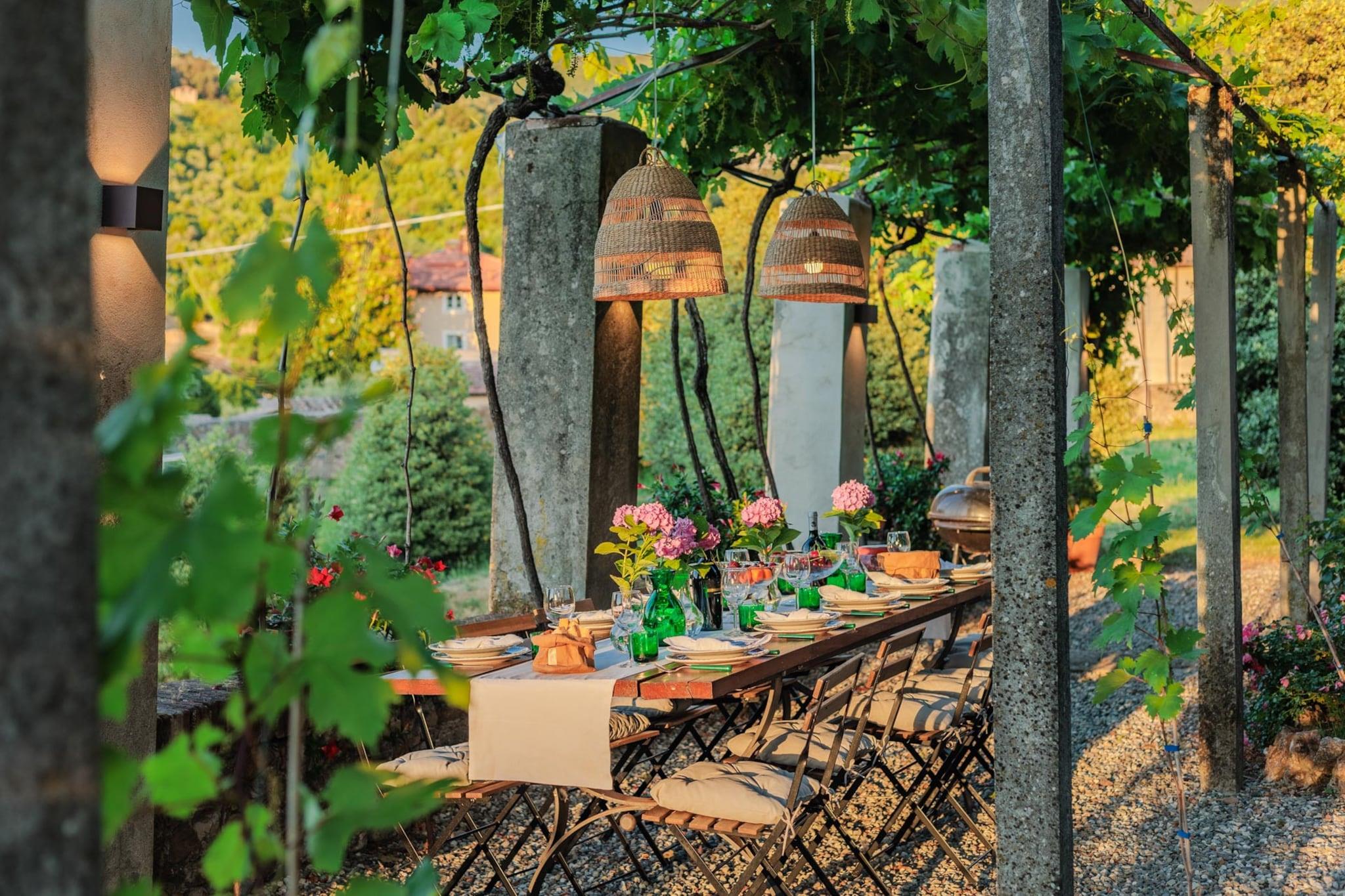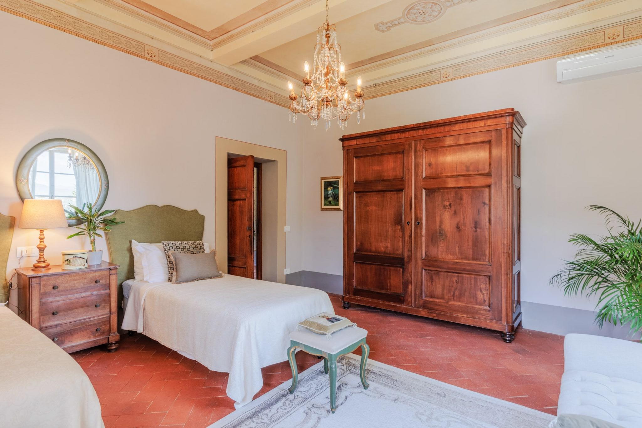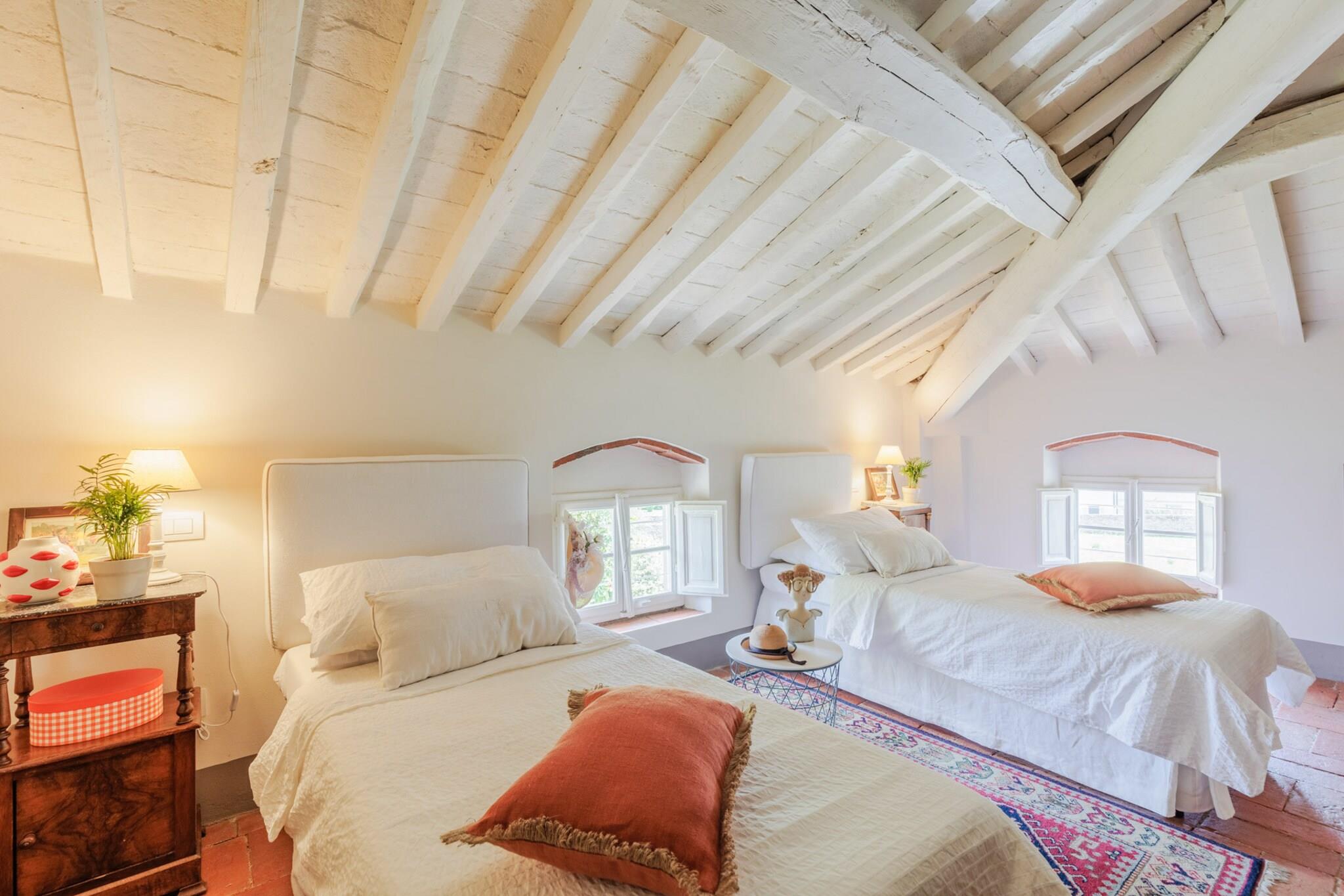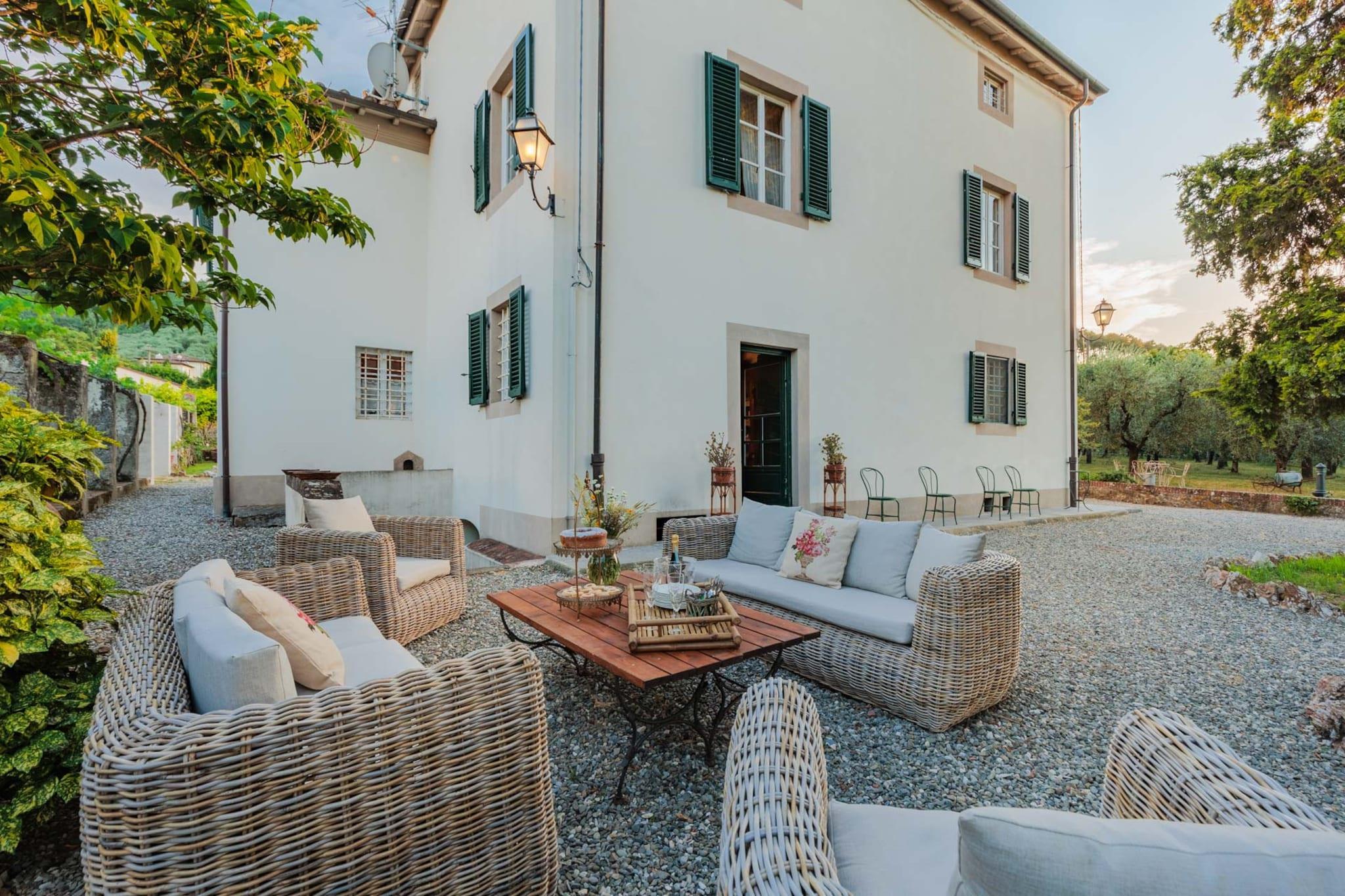 Wenn Ihr Traumurlaub in Italien von malerischen Weinbergen und Olivenhainen umgeben ist, ist dieses bezaubernde Refugium mit fünf Schlafzimmern inmitten der sanften Hügellandschaft vor Lucca im charmanten Dörfchen Vorno genau das Richtige für Sie. Mit spektakulärem Blick auf das Tal und einer erstklassigen Lage nur 5 km von der Altstadt Luccas entfernt bietet dieses Haus ein herrlich rustikales Ambiente, das Sie in die Schönheit der toskanischen Landschaft eintauchen lässt. Großzügige Außenbereiche laden nach einem Tag voller Besichtigungen oder gemütlichen Spaziergängen vorbei an alten Bauernhäusern aus Stein und historischen Kirchen zum Entspannen ein. Der großzügige italienische Garten bietet einen Sitzbereich mit herrlichem Blick auf die Landschaft sowie einen Essbereich mit Holzkohlegrill für unvergessliche Mahlzeiten im Freien. Genießen Sie unvergessliche Abendessen bei Sonnenuntergang mit atemberaubender Landschaft und köstlichen Gerichten mit Familie und Freunden. Entspannen Sie drinnen bei einem Glas Wein in der authentisch restaurierten Küche aus dem 16. Jahrhundert, die traditionellen Charme mit modernen Geräten verbindet. Jedes der fünf Schlafzimmer ist mit einer Klimaanlage ausgestattet, um selbst in den heißesten Sommermonaten einen angenehmen Schlaf zu garantieren. Lokale Annehmlichkeiten wie Lebensmittelmärkte, Supermärkte, Bars, Weingüter sowie Pizza- und Grillrestaurants sind nur 3 Autominuten entfernt. Lucca erreichen Sie in 9 Autominuten, während Sie die Altstadt von Pisa, den Flughafen und die wunderschöne toskanische Küste in 20–25 Autominuten erreichen. Florenz und der dortige Flughafen sind nur 45 Minuten entfernt, was diesen Ort zu einem idealen Ausgangspunkt macht, um die bezaubernde Toskana zu erkunden. Hinweis: Die Kurtaxe ist vor Ort zu entrichten.