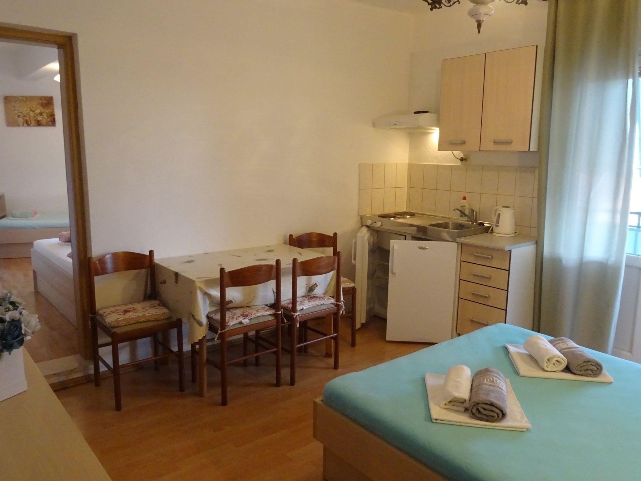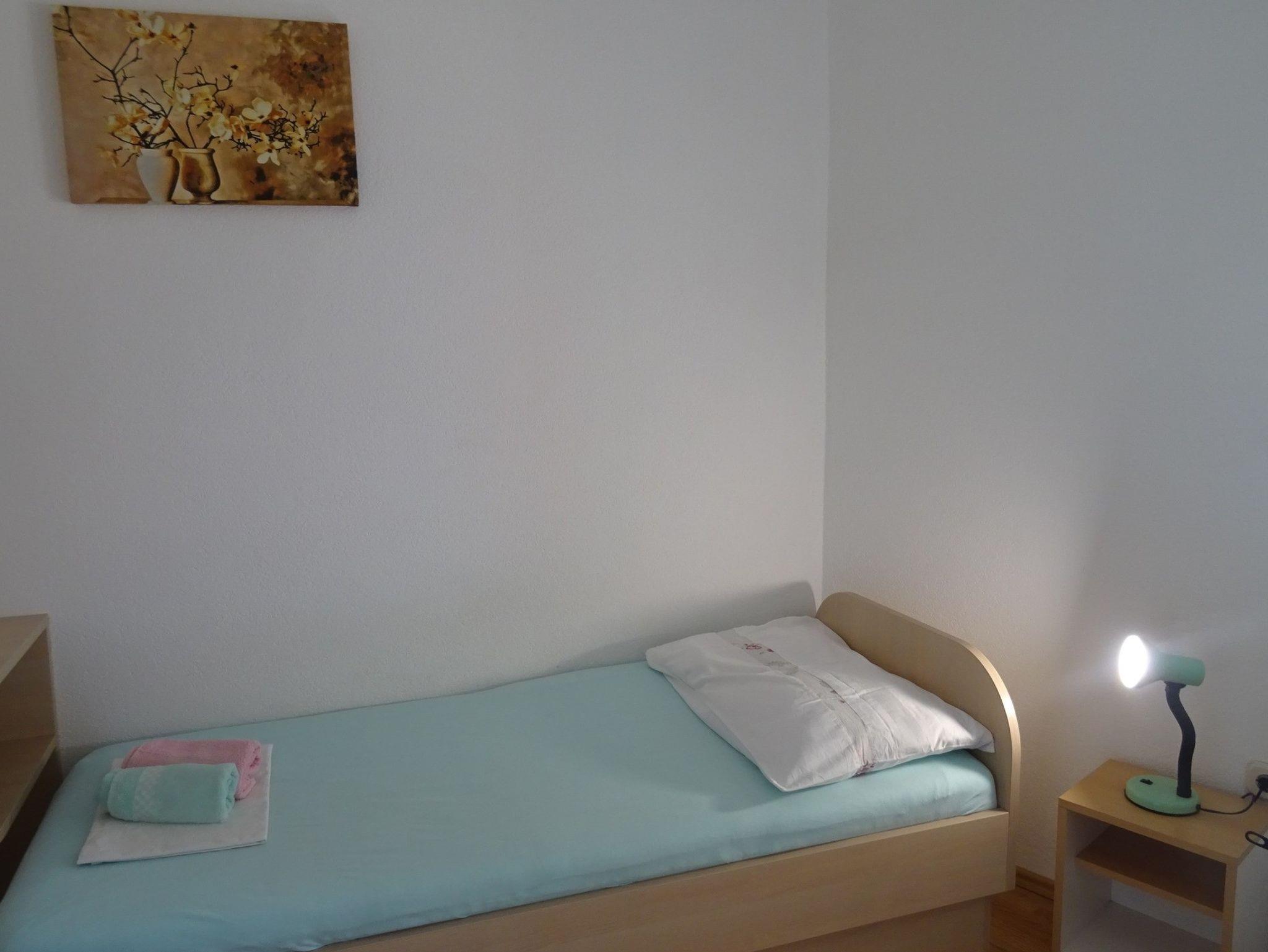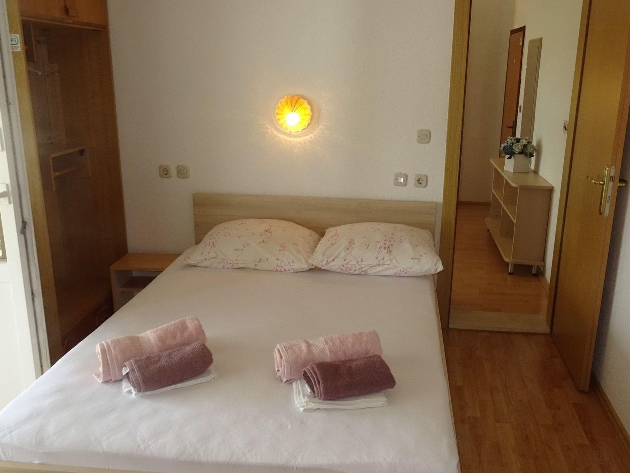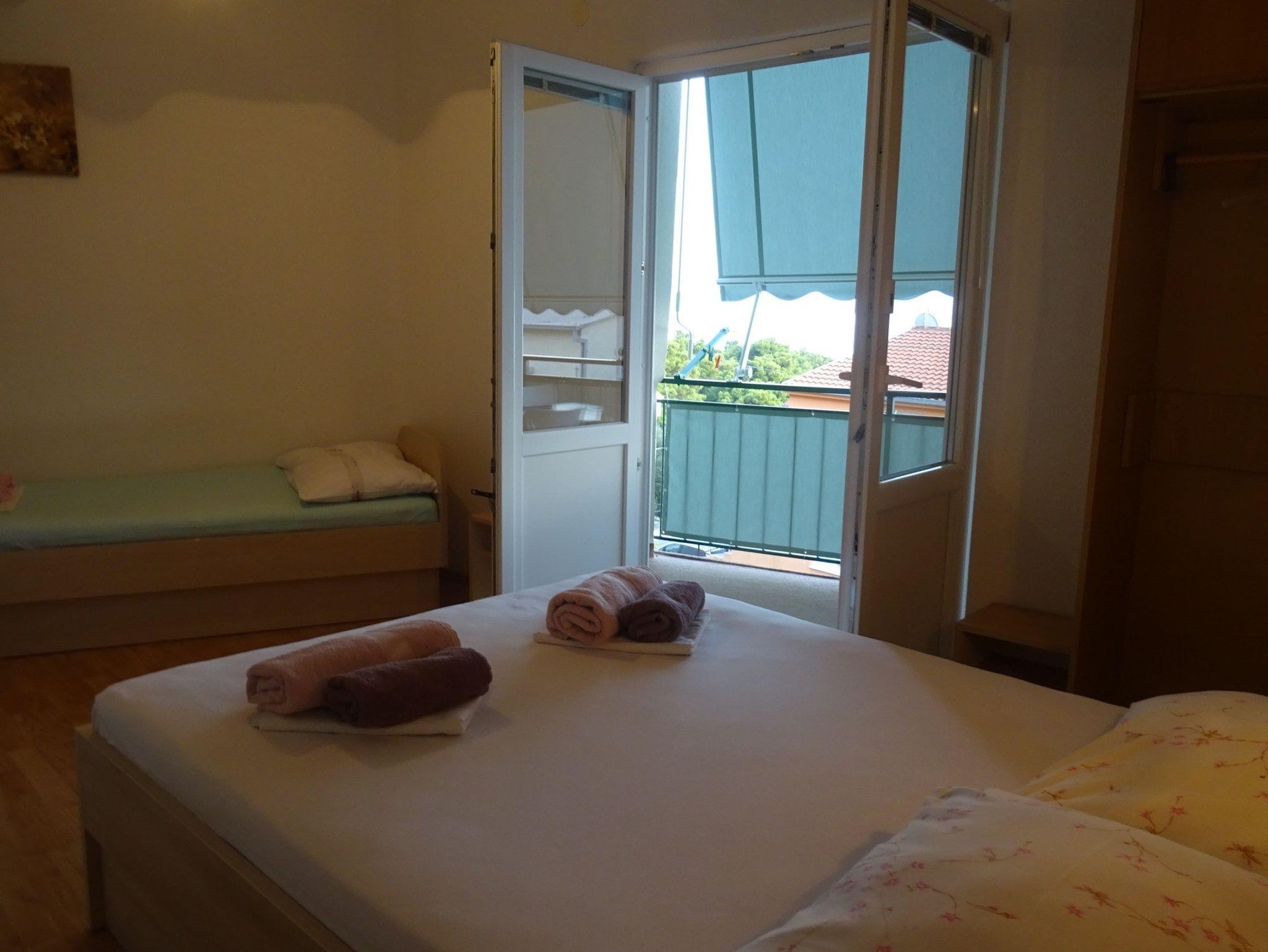 Ferienwohnung bietet Platz für 5 Gäste. Die Betten sind in Schlafzimmern, die es 1 gibt, und in Esszimmer, innerhalb einer Gesamtfläche von 41m2, angeordnet. Die Gäste haben einen eigenen Balkon zur Verfügung, auf der sie in warmen Sommernächten genießen können. Das Apartment bietet Meerblick. Es ist erlaubt, Speisen auf dem Gemeinschafts-Grill vorzubereiten. IM PREIS INBEGRIFFEN: Kurtaxe, Endreinigung, Klimatisierung, Parkplatz, Internet, Wäschewaschen, Bügeleisen, Bügelbrett, Föhn. Die Verfügbarkeit zusätzlicher Dienstleistungen in Ihrem reservierten Termin und die Preise derselben (falls nicht aufgeführt) müssen im Voraus überprüft werden. Zusätzliche Dienstleistungen die in der Zahlungsaufforderung nicht aufgeführt sind werden direkt beim Vermieter bezahlt, angenommen der Gast nutzt auch diese.