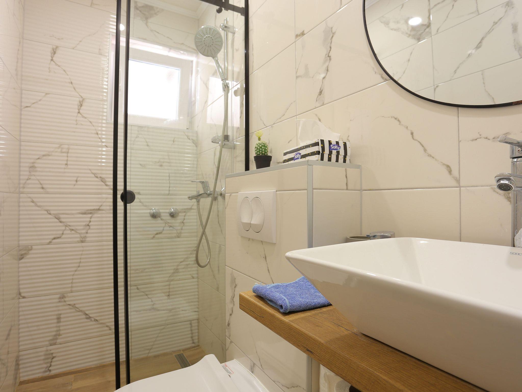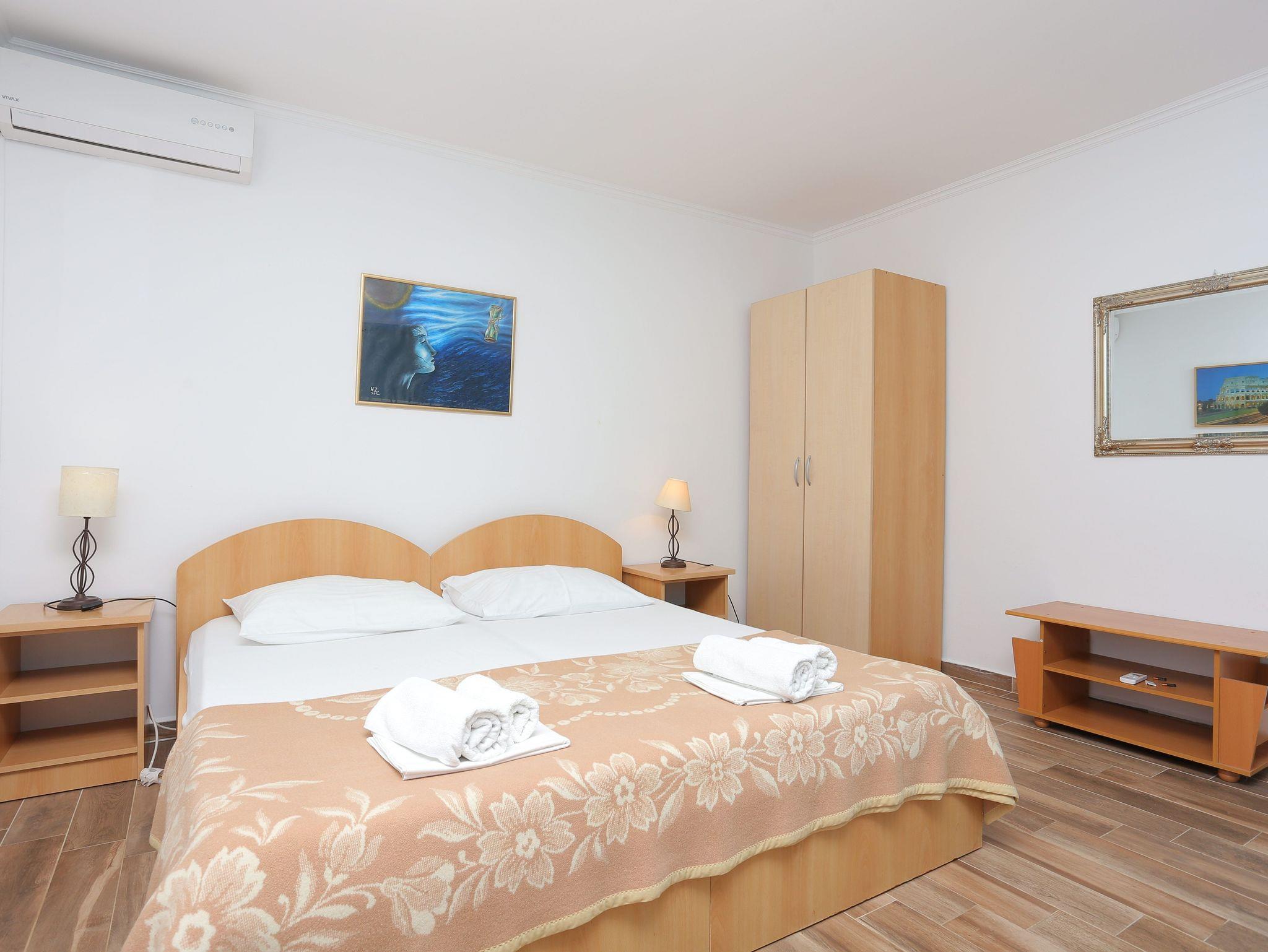 Ferienwohnung bietet Platz für 8 Gäste. Die Betten sind in Schlafzimmern, die es 2 gibt, innerhalb einer Gesamtfläche von 57m2, angeordnet. Die Gäste haben eine eigene Terrasse zur Verfügung, auf der sie in warmen Sommernächten genießen können. Für vollen Genuss und Entspannung gibt es einen privaten Grill für Gäste dieser Unterkunft. In der Unterkunftseinheit besteht die Möglichkeit des Mitbringens von Haustieren gegen Aufpreis. IM PREIS INBEGRIFFEN: Kurtaxe, Endreinigung, Klimatisierung, Parkplatz, Internet, Wäschewaschen, Kinderbett, Bügeleisen, Föhn, tragbarer Grill. VERBINDLICHE ZUSÄTZLICHE KOSTEN: Aufzahlung für Kurzaufenthalte (prozentualer Zuschlag pro Nächtigungsanzahl: 30% - 1, 20% - 2, 10% - 3). UNVERBINDLICHE ZUSÄTZLICHE KOSTEN: Haustiere (10,00 € pro Nacht). Die Verfügbarkeit zusätzlicher Dienstleistungen in Ihrem reservierten Termin und die Preise derselben (falls nicht aufgeführt) müssen im Voraus überprüft werden. Zusätzliche Dienstleistungen die in der Zahlungsaufforderung nicht aufgeführt sind werden direkt beim Vermieter bezahlt, angenommen der Gast nutzt auch diese.