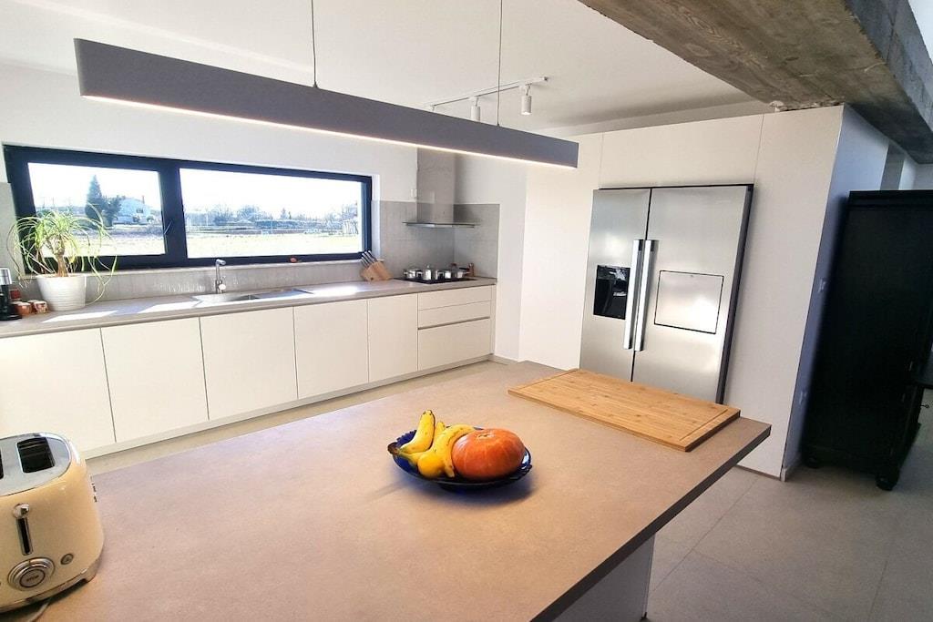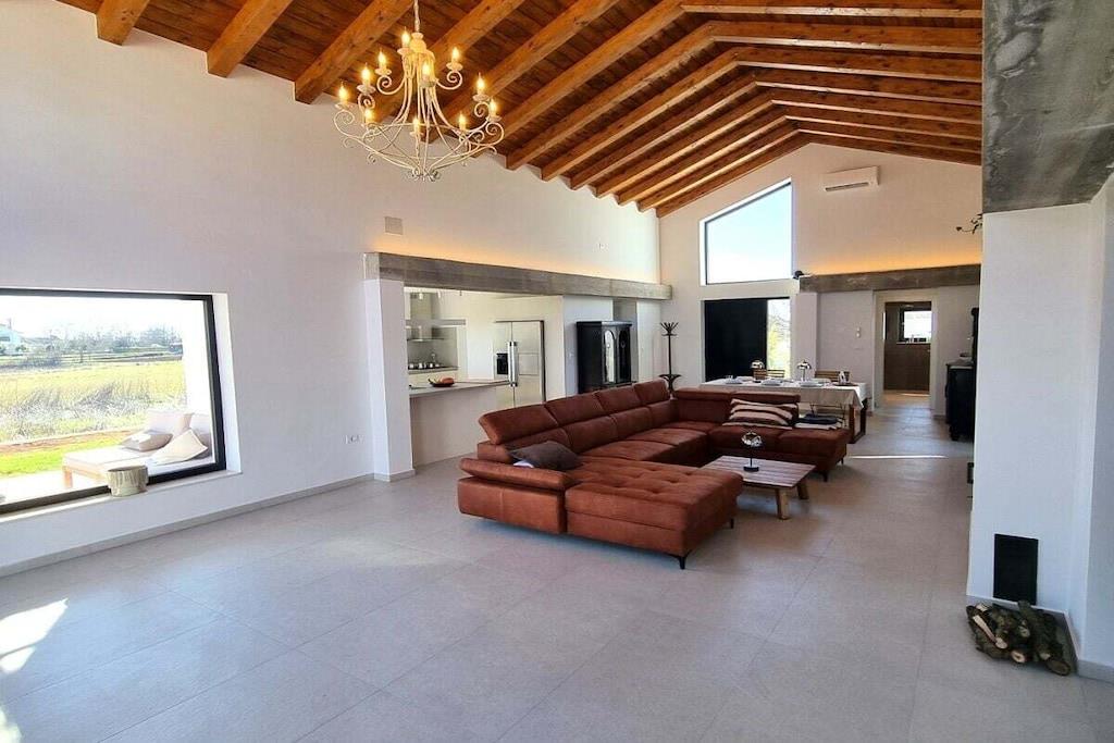 Die Villa Kinkeli, 138 m², ist eine Selbstversorgerunterkunft für 6 Personen mit einem großen, gepflegten Garten und einem offenen Swimmingpool, der ausschließlich den Gästen zur Verfügung steht. Ein 1.000 m² großer Garten steht Ihnen ebenfalls zur Verfügung. Die Villa befindet sich in der Nähe des Ortes Žminj, in einem bewohnten Dorf mit nur wenigen Häusern, und ist ideal für Familien mit Kindern oder Paare geeignet. Die Villa besteht aus einem Wohnzimmer und drei Schlafzimmern, zwei Badezimmern, einem separaten WC, einem Waschraum, einer Küche sowie einem Essbereich mit Yamaha-Klavier. Klimaanlage und Zentralheizung sind vorhanden. Die Terrasse ist 24 m² groß, bietet Sitzgelegenheiten für 6 Personen und verfügt über einen Grill.Weniger anzeigen