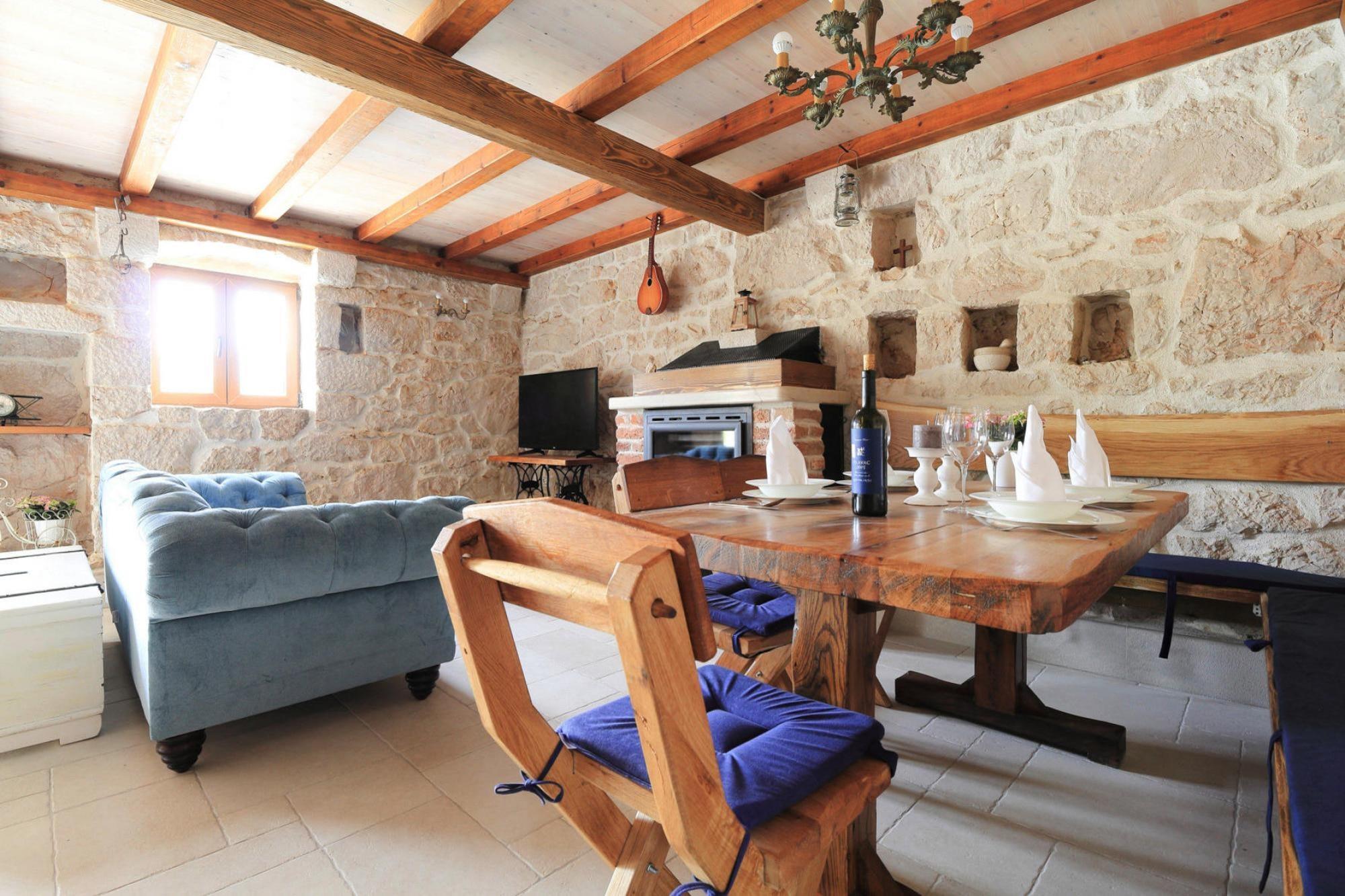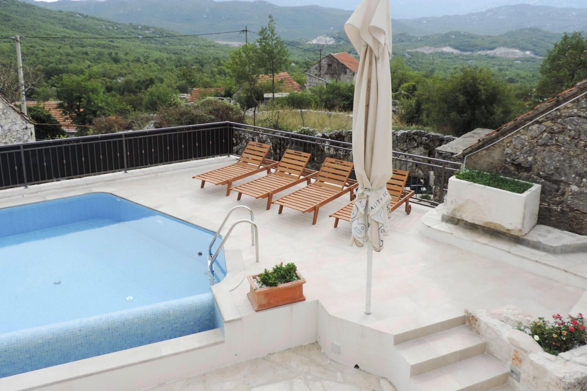 Jahrhundertaltes Steinhaus im rustikalen, gemütlichen Stil mit Kamin und privatem Außenpool. Das Ferienhaus befindet sich in einem traditionellen Dorf im Hinterland von Makarska, ca. 27 km von Makarska Stadt entfernt. Ihr Feriendomizil erstreckt sich auf 70 qm und verfügt über Annehmlichkeiten wie WLAN, Geschirrspüler und Waschmaschine. Vor dem Haus befindet sich ein Swimmingpool mit Liegestühlen, wo Sie den Blick auf das Naturreservat Biokovo und den herrlichen Sonnenuntergang genießen können. Zur Außenanlage gehört noch eine Terrasse mit Gartenmöbeln und ein Pavillon mit Sitzgelegenheit. Für die kleinen Gäste gibt es ein Trampolin und für die großen Gäste einen Weinkeller mit hauseigenen Weinen (gegen Gebühr) und ein kleines Grillhaus mit offenem Grill. Die türkisfarbene Riviera von Makarska und der imposante Berg Biokovo dahinter bilden eine der schönsten Urlaubskulissen, die man sich vorstellen kann. Makarska heißt jedoch nicht nur das gesamte Küstenland, sondern auch die größte Stadt hier. Die Gaststätten und Restaurants, Tavernen und Weinkeller sowie die zahlreichen Sport- und Kultur-Angebote als auch Veranstaltungen wie Fischerabende und Konzerte sorgen für abwechslungsreiche Urlaubstage. Leistungen inklusive : Verbrauchsabhängige Energiekosten, Bettwäsche, Handtücher, Endreinigung, Kurtaxe, WLAN, Anmeldegebühr. Aktivitäten in der Nähe : Das Biokovo Gebirge ragt mächtig und imposant über der Riviera empor und lockt sowohl Wanderer als auch Mountainbiker zu beeindruckenden Ausflügen in die Natur an. Wer noch mehr Nervenkitzel sucht, wird bei Omis am Fluss Cetina fündig. Bei Raftingtouren und Kanusafaris sind Ihnen feuchtfröhliche Eindrücke garantiert. Wenn Sie den Fluss und das Tal der Cetina aus der Luft erkunden möchten empfiehlt sich die spektakuläre Zipline Omis. Knapp über zwei Kilometer "Draht" sind über das Tal der Cetina gespannt. Entlang der Zipline können Sie atemberaubende Aussichten genießen, begleitet von einigen Adrenalinschüben bei der bis zu 65 km/h schnellen Rutschpartie. Selbstverständlich werden Ihnen noch viele weitere Möglichkeiten entlang der Riviera geboten. Neben verschiedenen Wassersportaktivitäten gibt es wunderschöne Wanderwege, verschiedene Klettermöglichkeiten und herrliche Radwanderwege auf denen Sie das Hinterland entdecken können. Wer sich für Kultur und Geschichte interessiert, sollte Tagesausflüge nach Dubrovnik und Split mit einplanen. Mobilität : Nicht geeignet für Personen mit eingeschränkter Mobilität. Belegung: mit max. 4 Erwachsenen und 1 Kind bis 14 Jahre.