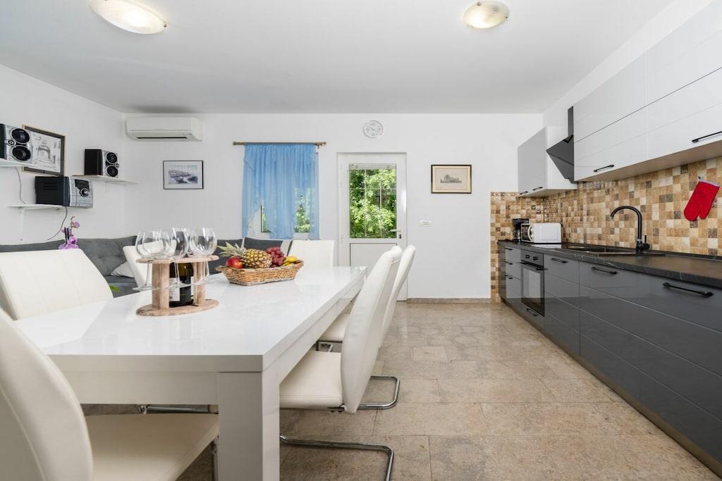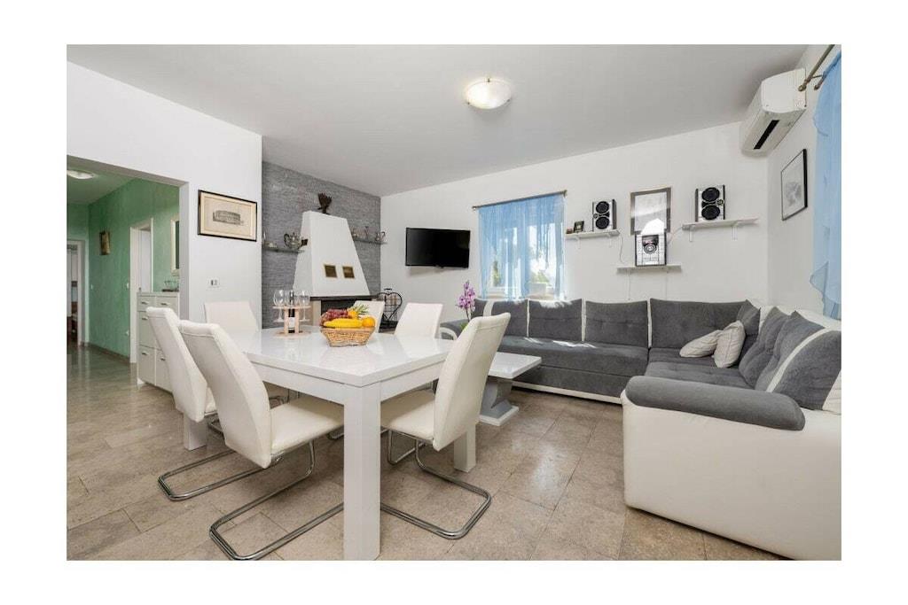 Die Villa besteht aus 4 möblierten und individuell eingerichteten Zimmern und viel Platz im Freien, sogar 9.400 m2, was sie zum idealen Urlaubsort für Naturliebhaber macht. . Zu den weiteren Einrichtungen der Villa St. Nikola gehören ein 9 x 5 m großer Außenpool und eine Außenküche. Besonders interessant ist das Esszimmer. Ein großer Kamin dominiert den Raum. Sie verfügen außerdem über Sat-TV und WLAN-Internetzugang. Das Besondere an dieser Unterkunft ist ihre wirklich fantastische Lage. Das Haus gehört zu einem riesigen Grundstück von 9.400 m2, vollständig erhaltener Natur, mit allen Arten von mediterraner Villa mit Pool für 8-10 Personen mit Whirlpool
