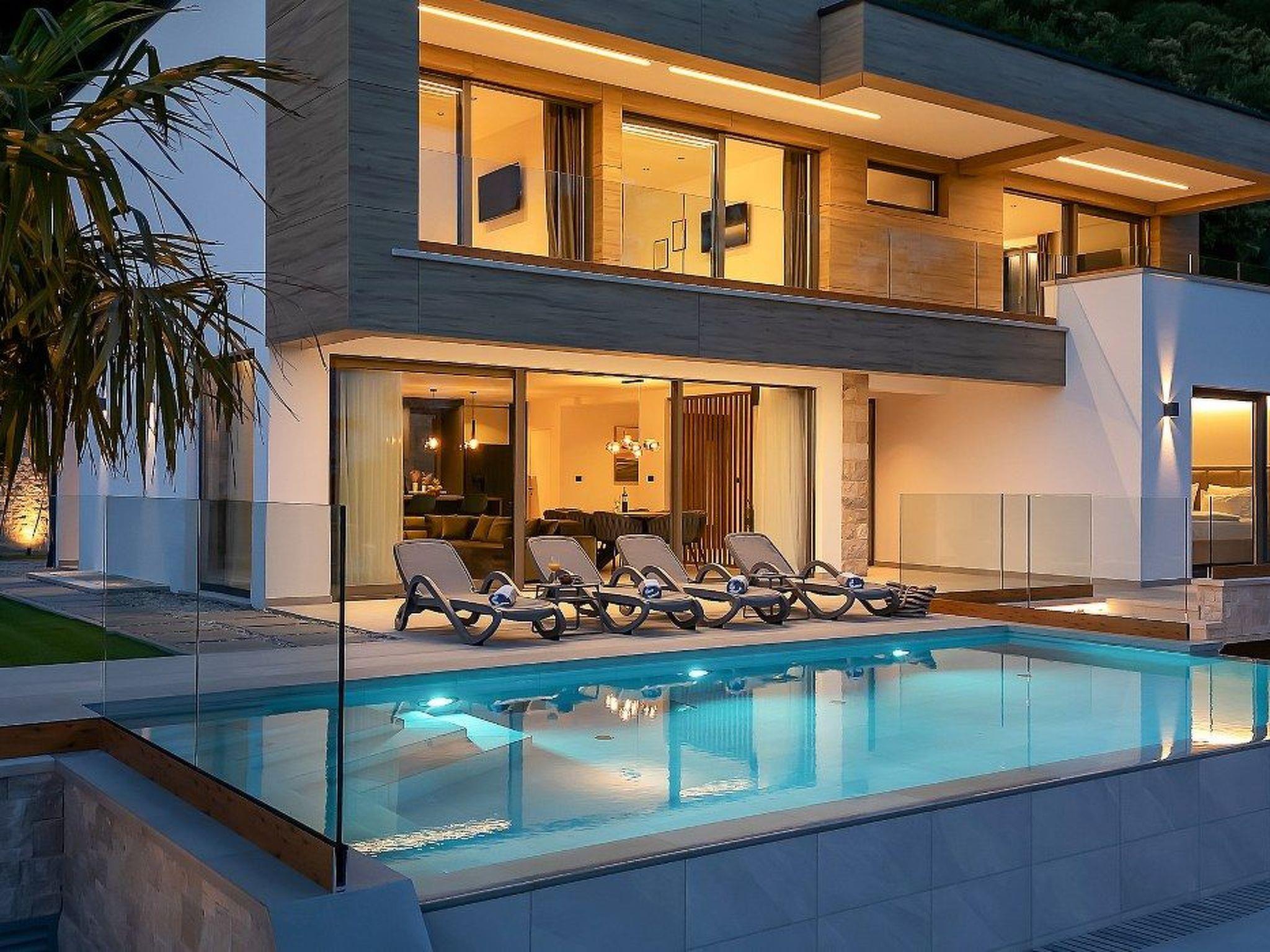 Der Außenbereich dieser charmanten Villa lädt zum Verweilen ein. Neben dem privaten Pool, der exklusiv Ihnen zur Verfügung steht, können Sie es sich auf der Terrasse bequem machen oder die Aussicht vom Balkon genießen. Hier finden Sie den idealen Spot, um sich zurückzulehnen und die ruhige Atmosphäre voll und ganz auszukosten.