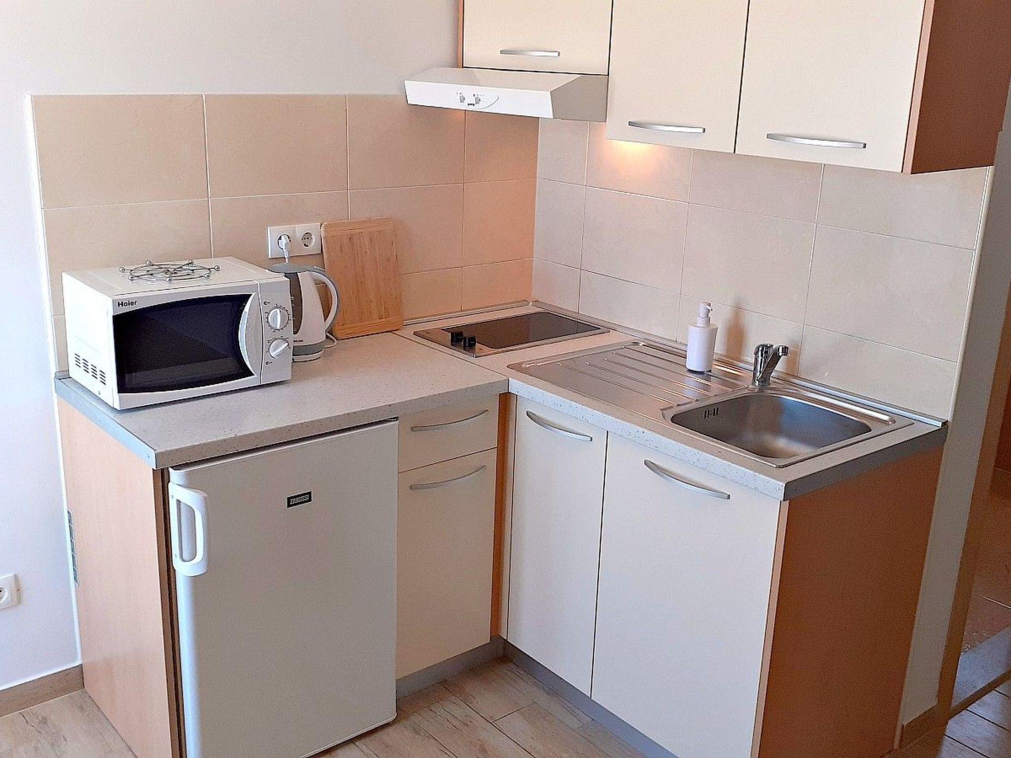 Zu Fuss erreicht man in drei bis vier Minuten Geschäfte und Restaurants sowie einen Spielplatz in 50 m. Baska Voda ist ein berühmter Urlaubsort am Fuße des Biokovo auf der Makarska Riviera in Mitteldalmatien. Baska Voda hat eine Fülle von Möglichkeiten für Ruhe und Erholung auf dem Land und am Meer, schöne Kies-und Sandstränden, zahlreiche Sportmöglichkeiten, Tauchschulen, Plätze für Nautiker in der erweiterten Hafen usw. Nebeb des Meeres und Sonne, Badefreuden und angenehmen Spazierwegen, historischen Denkmäler und einem Museum bietet Baska Voda attraktive Kultur-und Unterhaltungsveranstaltungen, verschiedene Sport-und Freizeiteinrichtungen (Tennis, Fußball, Handball, Tischtennis, Minigolf, Angeln, Wandern, etc.). Baska Voda ist der Startpunkt für viele organisierte Ausflüge zu den Inseln Brac, Hvar, Korcula und anderen beliebten Urlaubszielen Dubrovnik, Mostar, Split, Trogir, Sibenik, Plitvice Seen ...In den Abendstunden es gibt viele Unterhaltungsmöglichkeiten in Bars, auf Terrassen und Diskotheken. Regionale Spezialitäten werden von vielen Restaurants und Gaststätten angeboten.