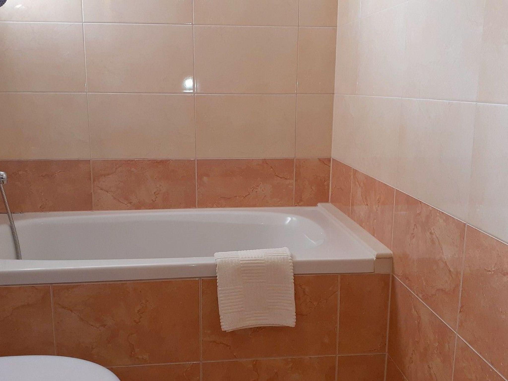 Diese schöne Ferienwohnung befindet sich auf der vierten Etage und bietet Platz für bis zu 4 Personen. Sie verfügt über ein Schlafzimmer mit einem Doppelbett In der Wohnküche steht noch ein Doppelbett sowie ein Esstisch mit Stühlen bereit. Die Küchenzeile ist gut ausgestattet mit allen erforderlichen Küchenutensilien. Das Badezimmer ist mit einer Badewanne und Toilette eingerichtet. Klimaanlage, Internet und ein Fernseher mit Sat.-TV sind verfügbar.