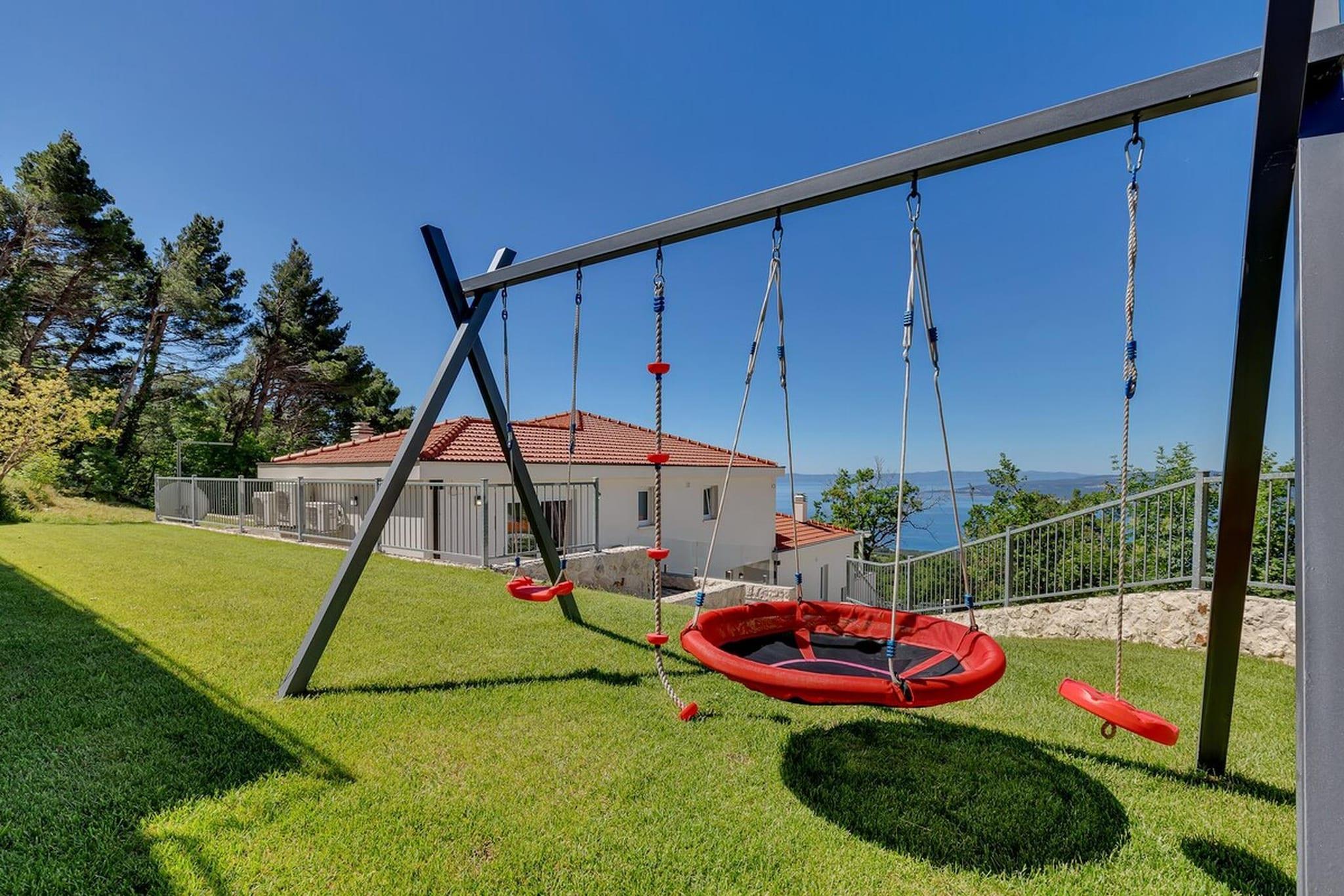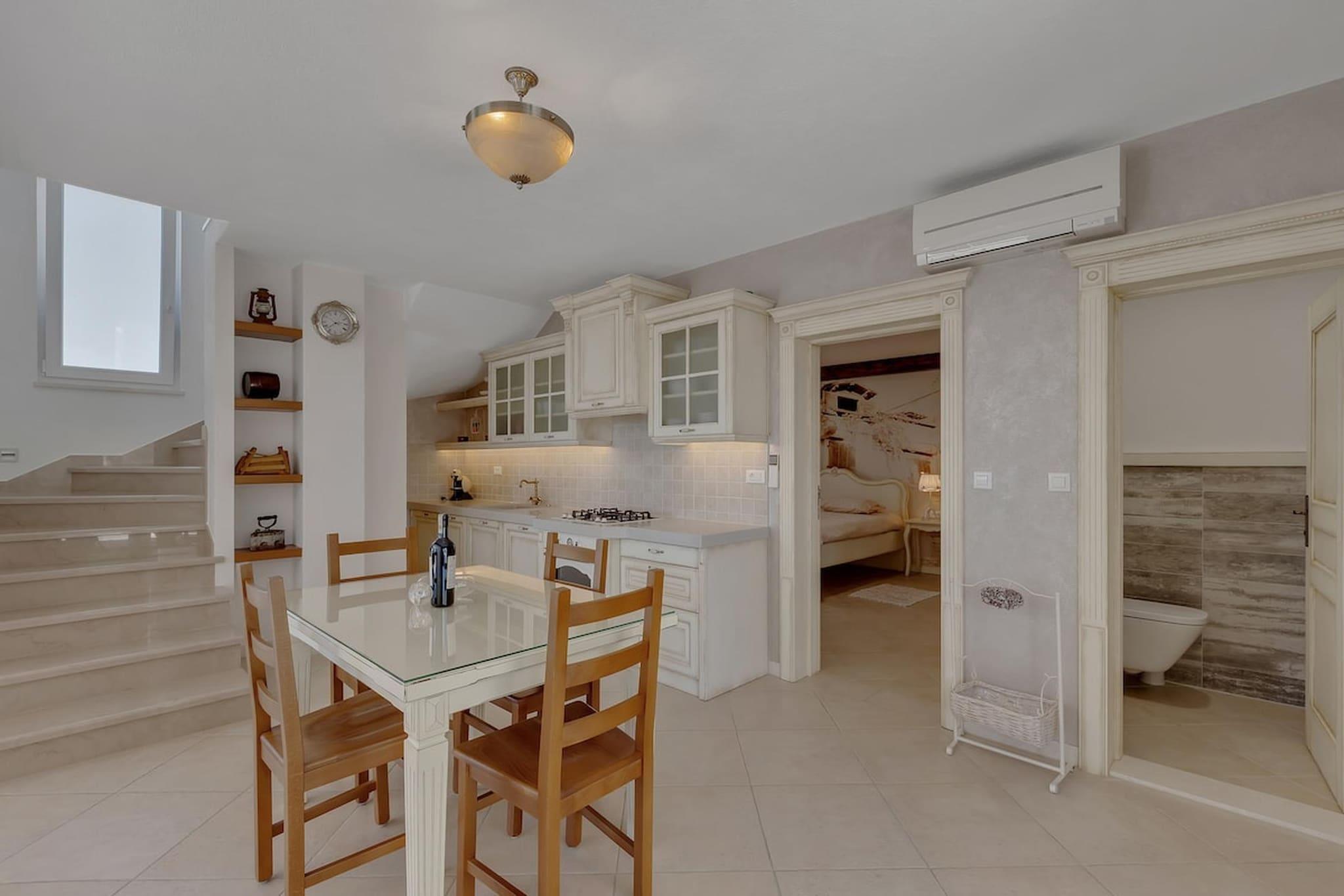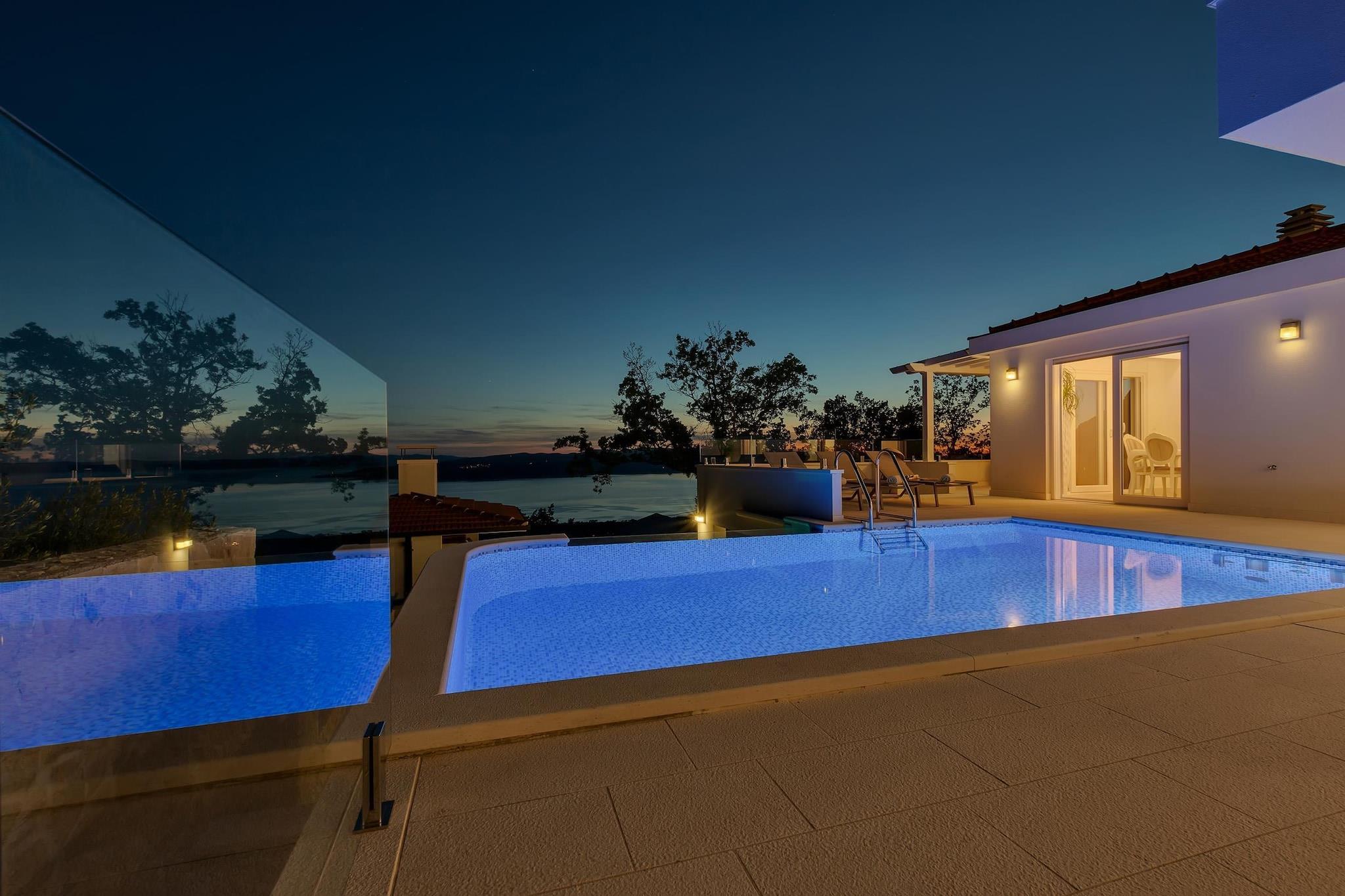 Wenn Festivalpläne bis nach Sonnenuntergang andauern und die Gruppenchats nie wirklich zur Ruhe kommen, bietet die Villa Prestige den perfekten Rahmen. Hoch über dem pulsierenden Küstenort Baška Voda gelegen, mit der Makarska Riviera in der Nähe und dem majestätischen Biokovo-Gebirge im Hintergrund, ist diese 450 m² große, dreistöckige Villa für 10 Gäste wie geschaffen für unvergessliche Momente, entspannte Treffen und gesellige Abende. Die untere Ebene dient als idealer Ausgangspunkt für die Vorbereitungen: ein rustikaler Essbereich im Tavernenstil, eine voll ausgestattete Küche, ein Gästezimmer mit Bad en suite, ein separates WC und direkter Zugang zum mediterranen Garten mit Grillplatz. Eine Etage höher öffnet sich das Herzstück der Villa: ein großzügiges Wohnzimmer mit ausreichend Sitzgelegenheiten, ein Esstisch, eine zweite voll ausgestattete Küche sowie ein beheizter Privatpool, Massagedüsen, eine Außendusche und Panoramablick aufs Meer. Ein Fitnessraum, eine Sauna und ein Spa-Badezimmer sorgen für die perfekte Balance zwischen sportlicher Betätigung und schneller Erholung. Die oberste Etage ist ausschließlich zum Entspannen und Abschalten reserviert. Vier Schlafzimmer mit Meerblick, alle mit eigenem Bad und Balkon oder Terrasse, bieten auch bei voller Belegung absolute Privatsphäre. Hydromassage-Badewannen, begehbare Duschen und Klimaanlage sorgen für einen angenehmen Start in den Tag nach langen Nächten. Restaurants und Bars sind fußläufig erreichbar, und auch das Nachtleben, die Strandclubs und die Festivalstimmung von Makarska und der gesamten Riviera sind schnell zu erreichen. Wenn die Gruppe Lust auf einen kompletten Stadtausflug hat, bietet Split Rooftop-Bars, Clubs und Fährfahrten zum Sonnenaufgang. Die Villa Prestige ist ideal für Gruppen, die sich eine luxuriöse Unterkunft mit Spa-Bereich, großzügigen Gemeinschaftsräumen, privaten Poolabenden und direktem Zugang zum Festivalgeschehen wünschen.