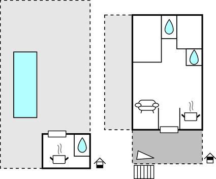 Es befindet sich im Erdgeschoss und besteht aus einer Küche mit Essbereich und Wohnzimmer, 2 Schlafzimmern und einem Badezimmer und WC.