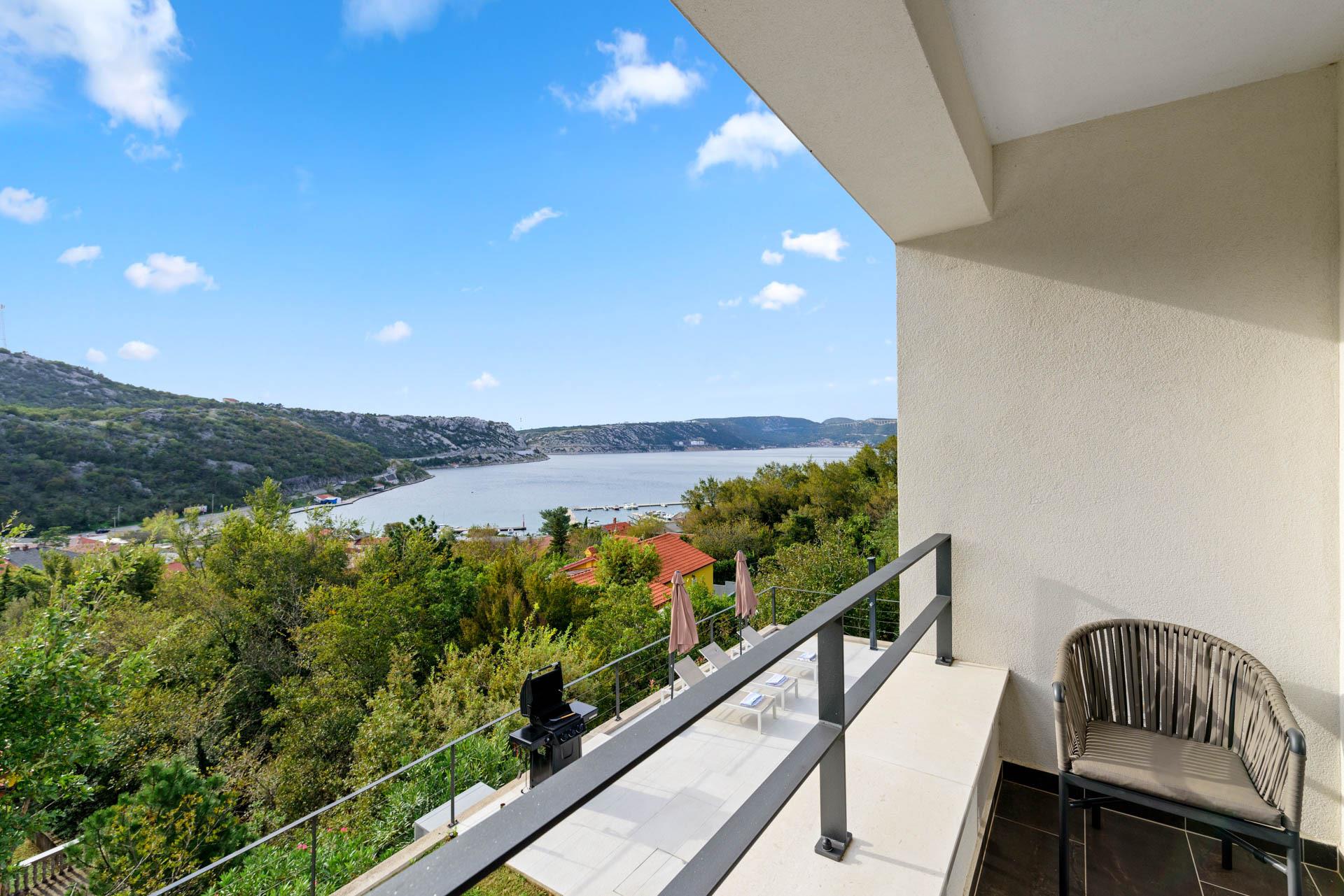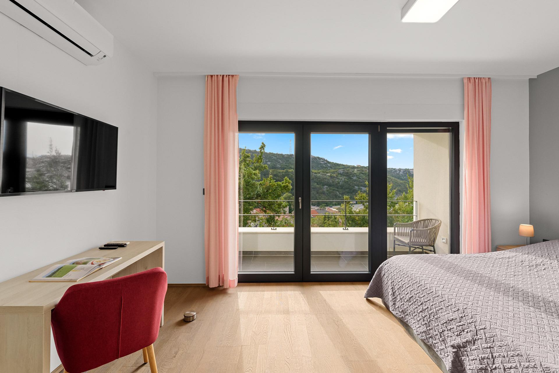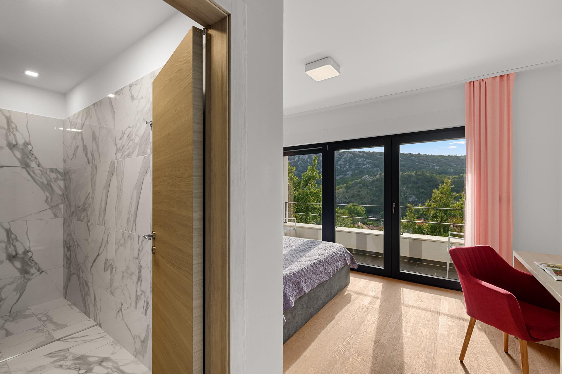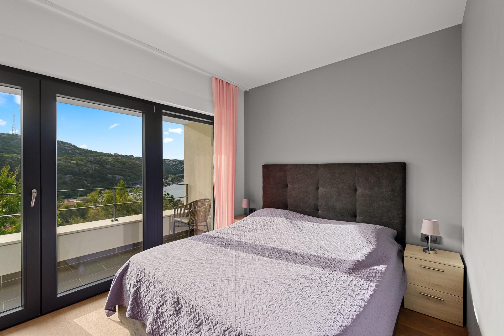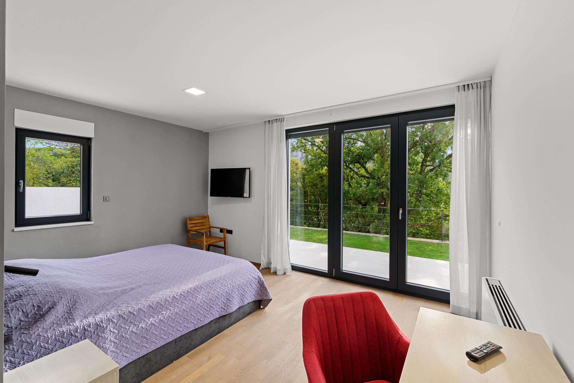 Im Zentrum der Villa liegt ein 34 m² großer Pool. Die Terrasse rundherum lädt zu sonnigen Tagen und geselligen Grillabenden ein. Kinder können auf dem Rasen Volleyball oder Badminton spielen, während Erwachsene den Blick auf die Bucht von Bakarac genießen.