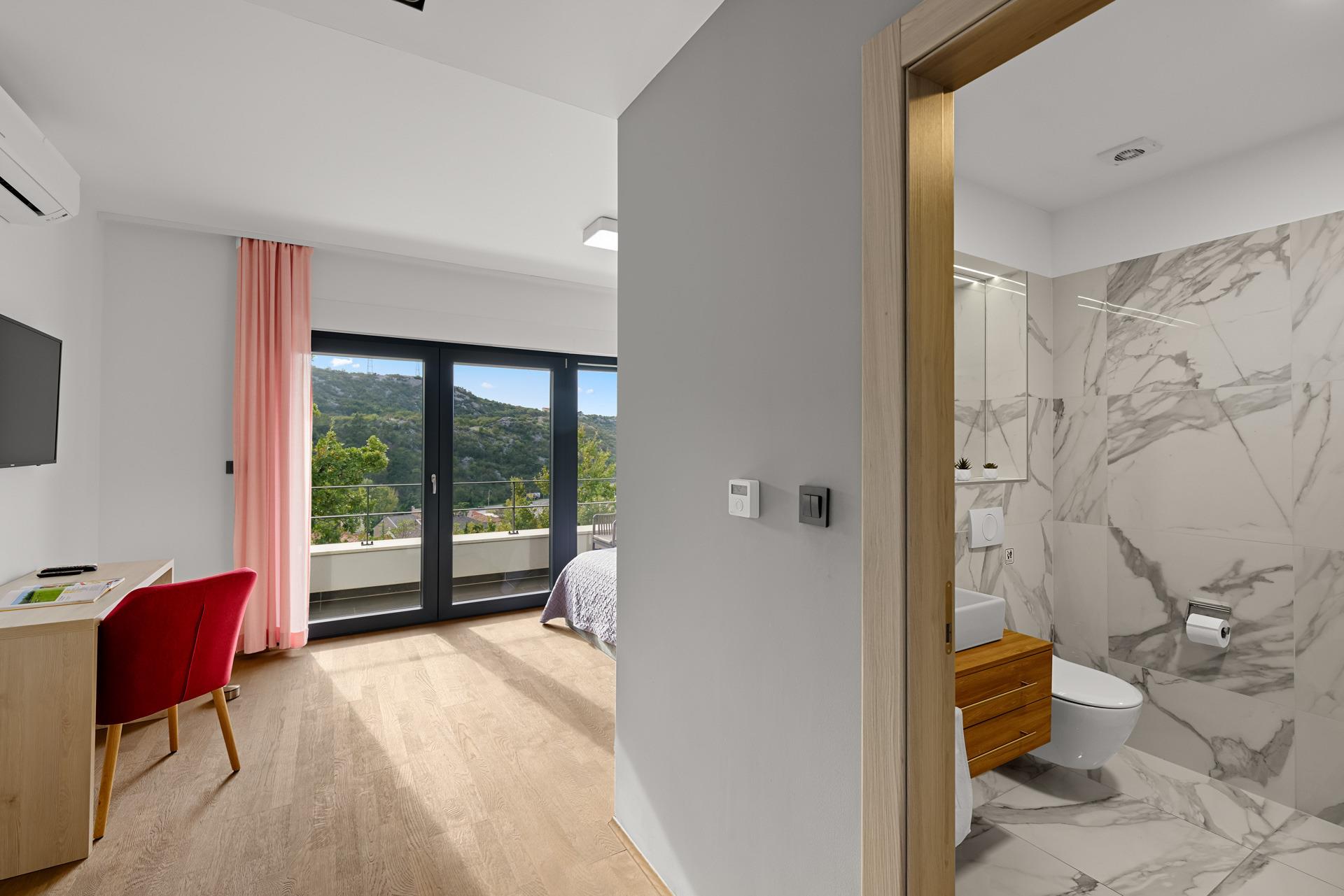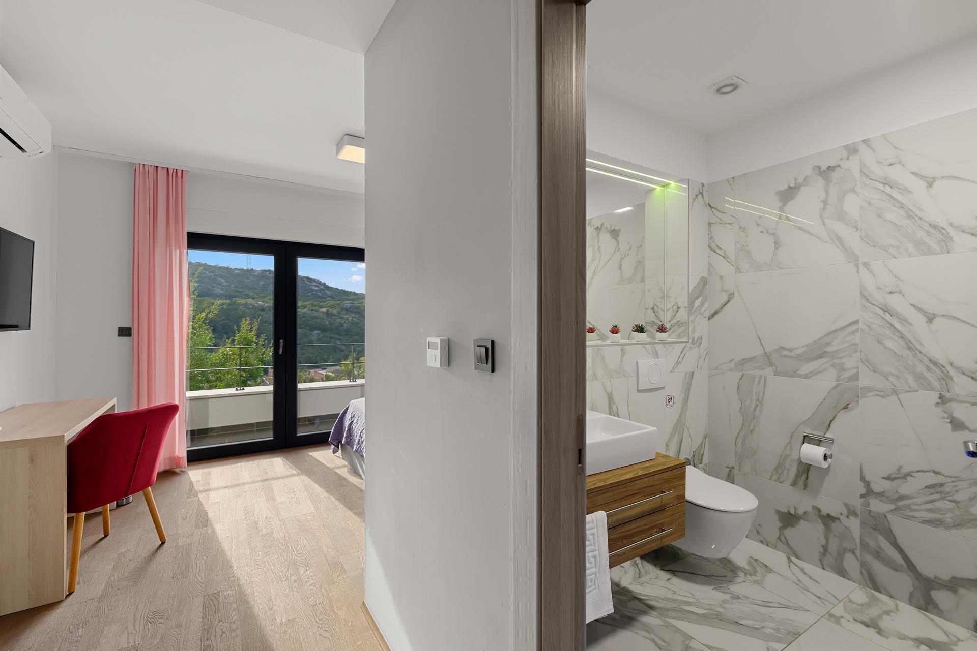 Sechs Schlafzimmer verfügen über ein eigenes Bad, Klimaanlage und Balkonzugang. Dadurch finden bis zu zwölf Gäste bequem Platz. Zudem sorgt die Fußbodenheizung in kühleren Monaten für wohlige Wärme. Dank durchdachter Details wird jeder Aufenthalt besonders angenehm.