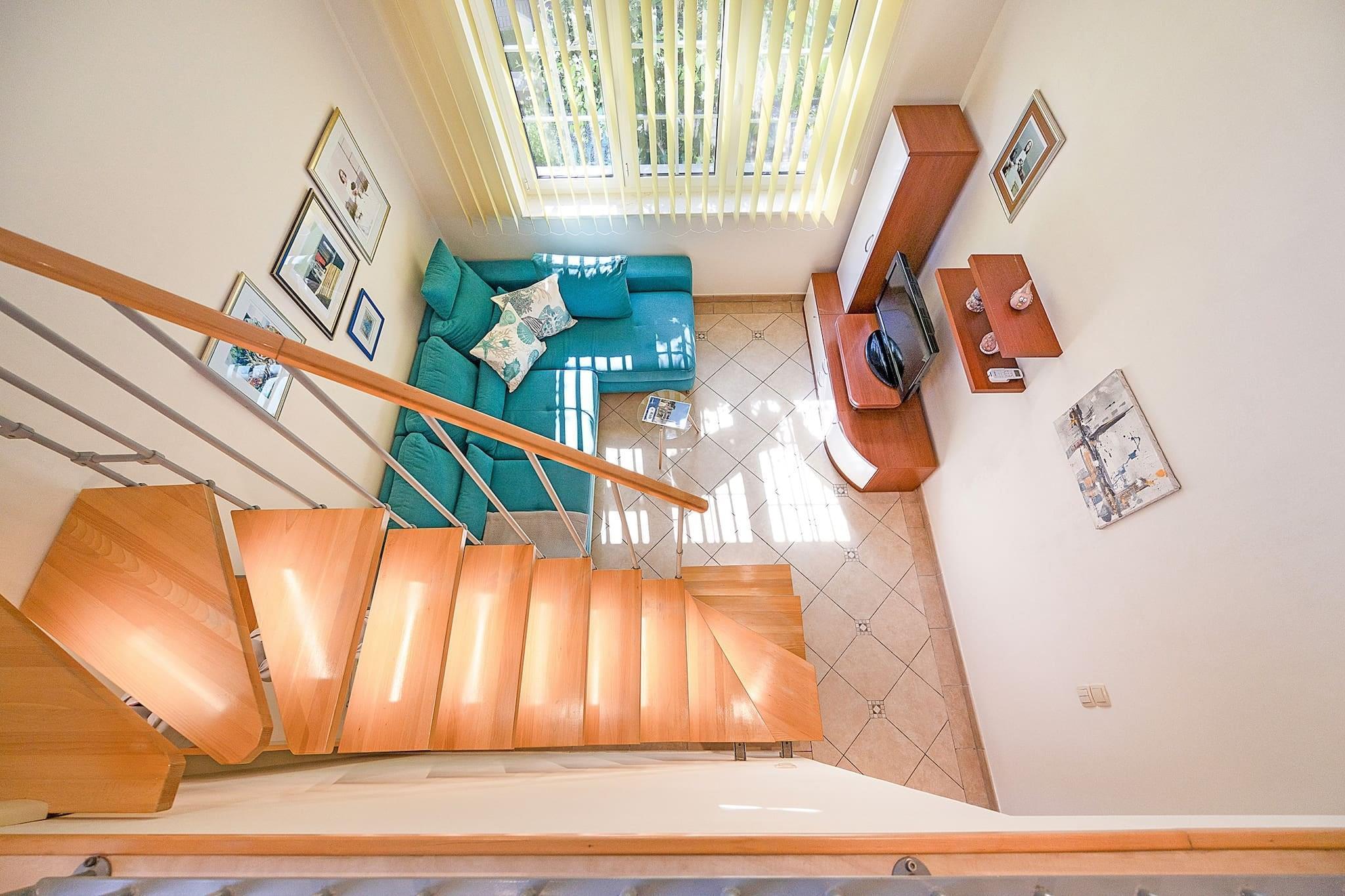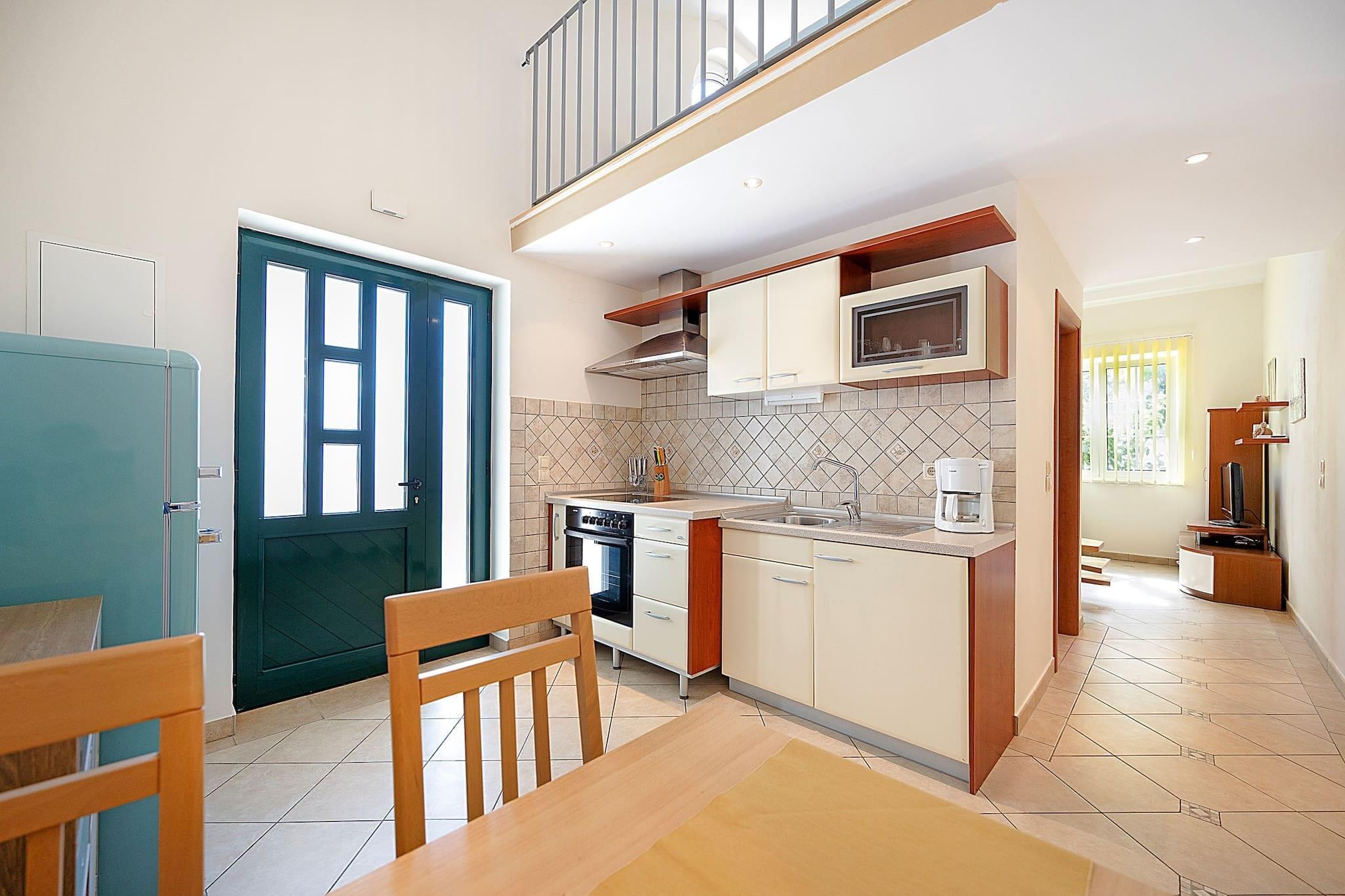 Dieses gemütliche Studio im Herzen von Banjol auf der Insel Rab bietet einen ruhigen Rückzugsort für zwei Personen. Der Schlafbereich befindet sich auf einer Galerie, und die voll ausgestattete Küche erleichtert die Zubereitung von Mahlzeiten. Ein Babybett ist auf Anfrage erhältlich. Gegen eine Endreinigungsgebühr fällt eine Gebühr an. Das Apartment verfügt über Klimaanlage, WLAN, Handtücher, Bettwäsche und eine Waschmaschine für zusätzlichen Komfort. Betreten Sie den üppigen Garten mit einem gemeinsamen Whirlpool und schattigen Loungebereichen – ideal zum Entspannen nach einem Strandtag. Gäste können auch im Freien mit einem Grillplatz speisen. Kostenlose Privatparkplätze stehen vor Ort zur Verfügung. Nur 250 Meter vom Sandstrand entfernt, ist das Apartment ideal gelegen, um die natürliche Schönheit und den historischen Charme von Rab zu erkunden. Besuchen Sie die alte Festung auf dem Hügel St. Damian, schlendern Sie durch die Altstadt von Rab oder genießen Sie frische Meeresfrüchte in lokalen Restaurants. Mit seiner ruhigen Lage und den durchdachten Annehmlichkeiten ist dieses Studio der perfekte Ausgangspunkt für einen erholsamen Inselurlaub.